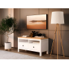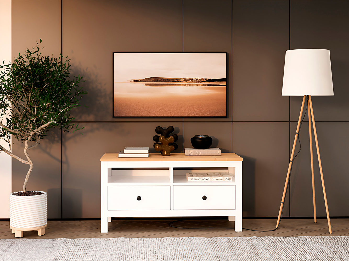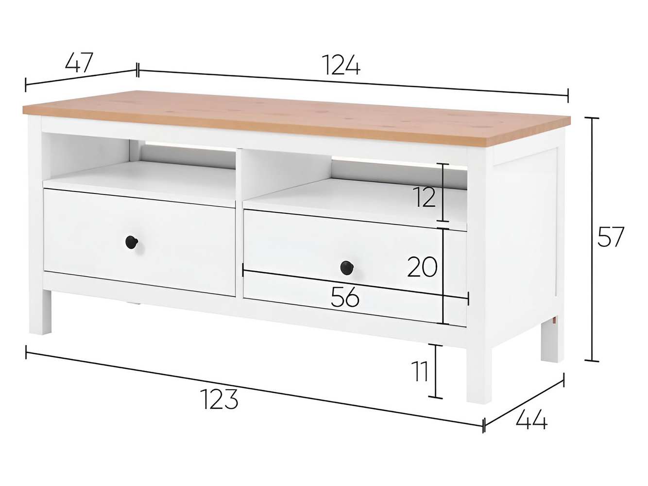ТВ-тумба Кымор выполнена в традиционном скандинавском дизайне. Открытые ниши и пара выдвижных ящиков обеспечат удобное хранение и помогут поддерживать порядок в гостиной. Благодаря высоким ножкам под тумбой легко проводить уборку. Мебель из массива дерева отличается уютной эстетикой, прочностью и долговечностью.
