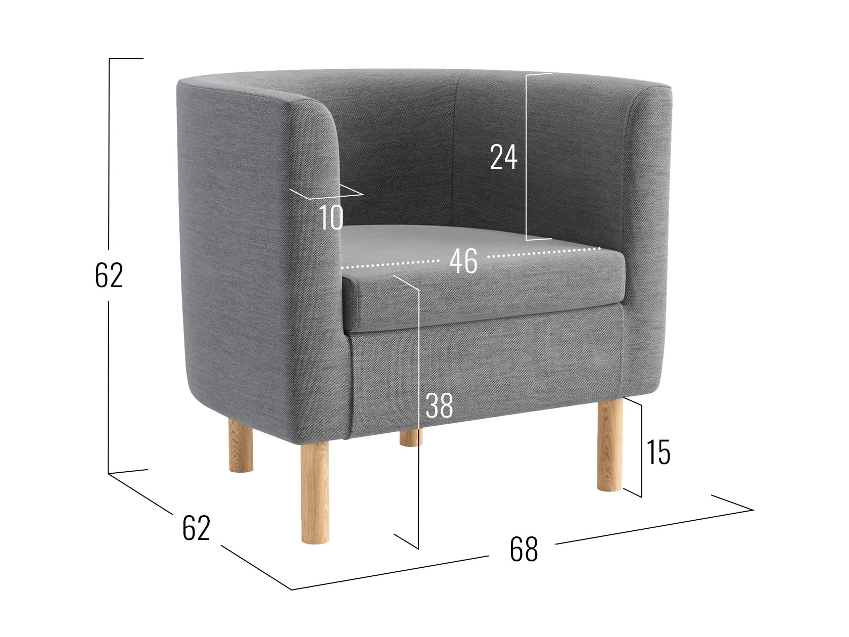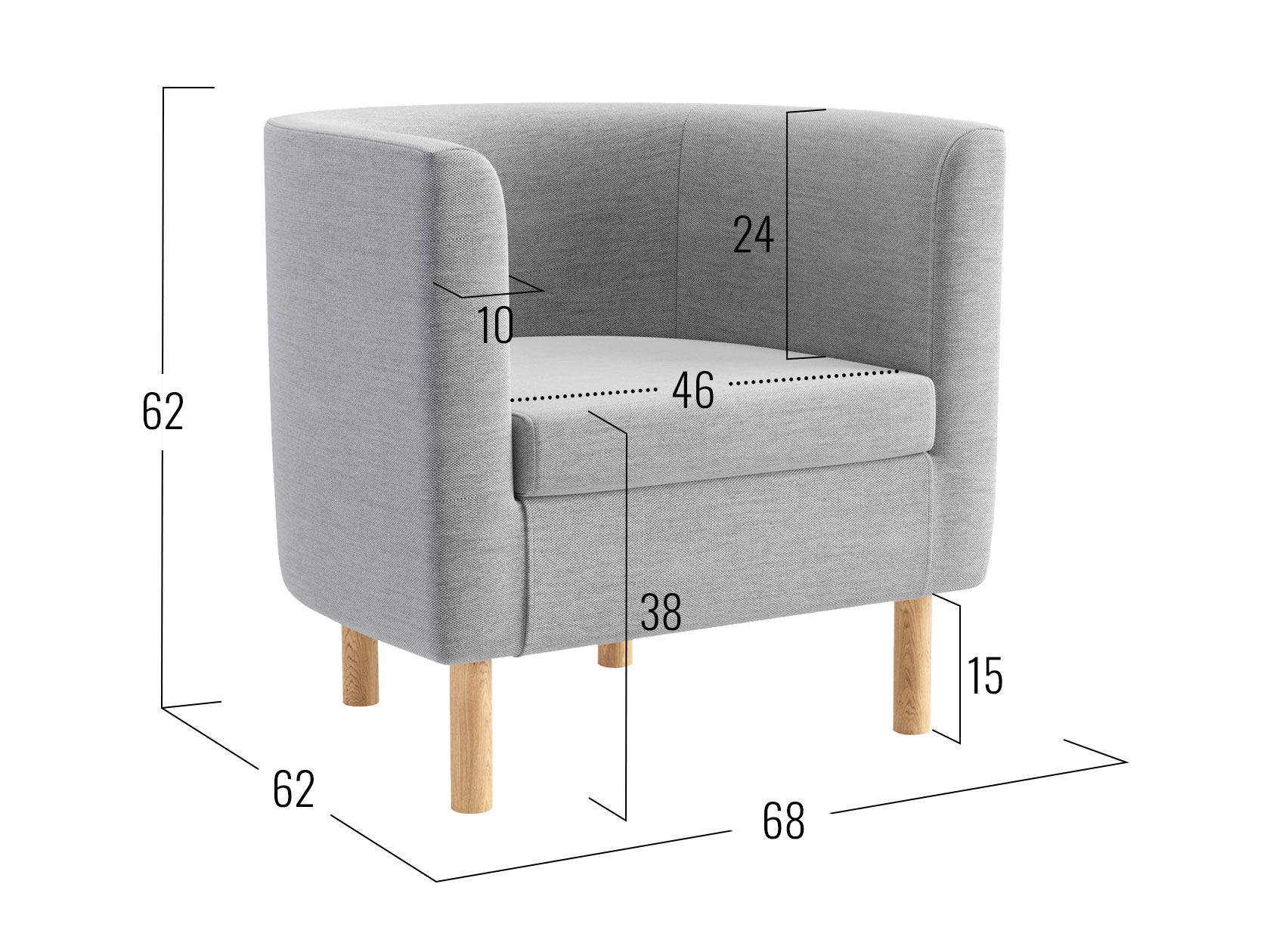 Компактное и стильное кресло Эпл Мини понравится ценителям гармонии в интерьере. Мягкие спинка и подлокотники образуют единую линию, подчеркивая лаконичный силуэт модели. Конусовидные ножки из массива придают креслу визуальную легкость. Опоры достаточно высокие, поэтому под ними свободно проезжает робот-пылесос. Комфортные глубина и ширина сиденья располагают к расслабленному отдыху.