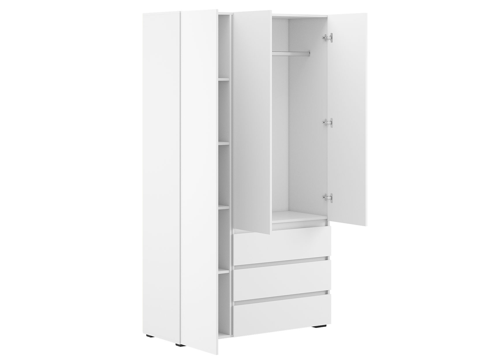 Прихожая Хелен со стеллажом — отличный способ компактно расположить и быстро находить нужные вещи. Распашной шкаф с отделением для штанги и удобными ящиками обеспечит место для одежды разной длины. Стеллаж с полками и выдвижными секциями поможет поддерживать порядок среди аксессуаров, сумок, шарфов и перчаток. Дизайн без лицевой фурнитуры подчеркивает строгость линий и позволяет открывать дверцы легким нажатием.