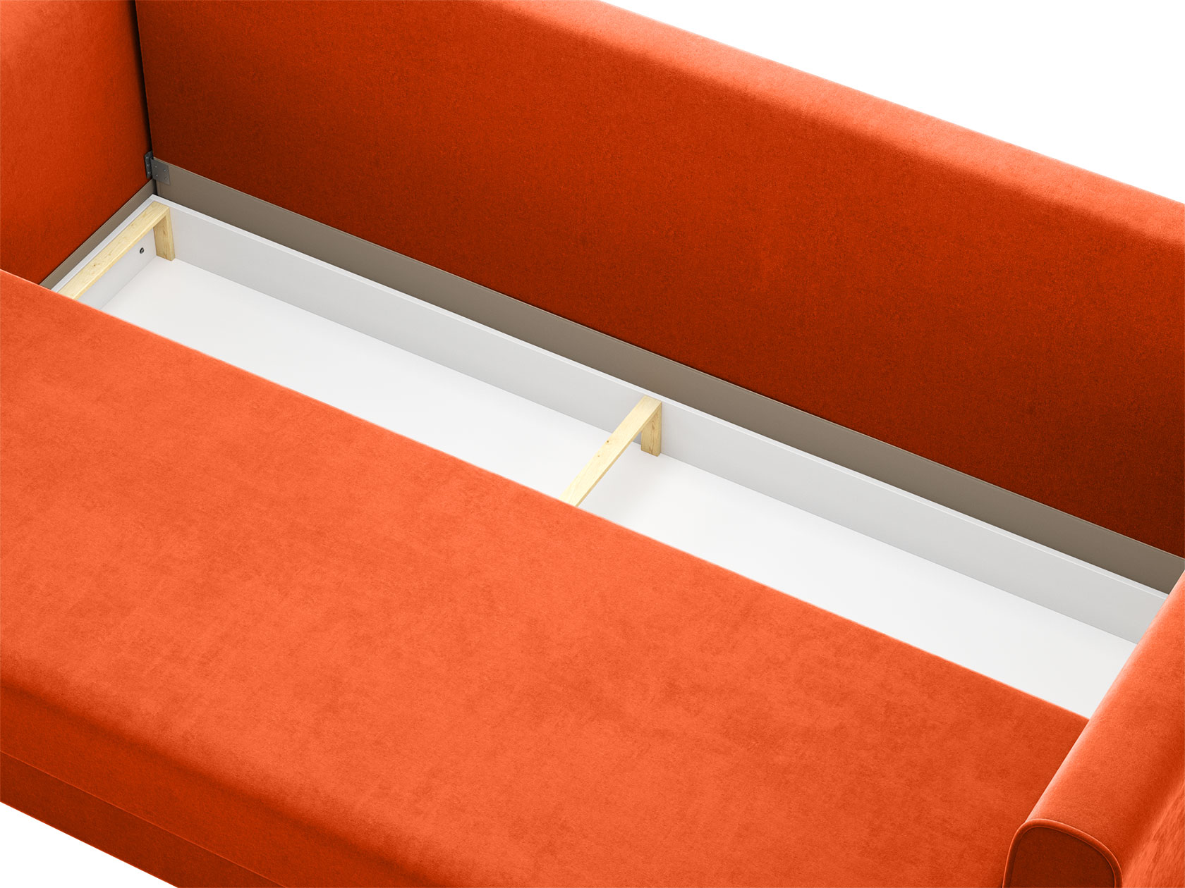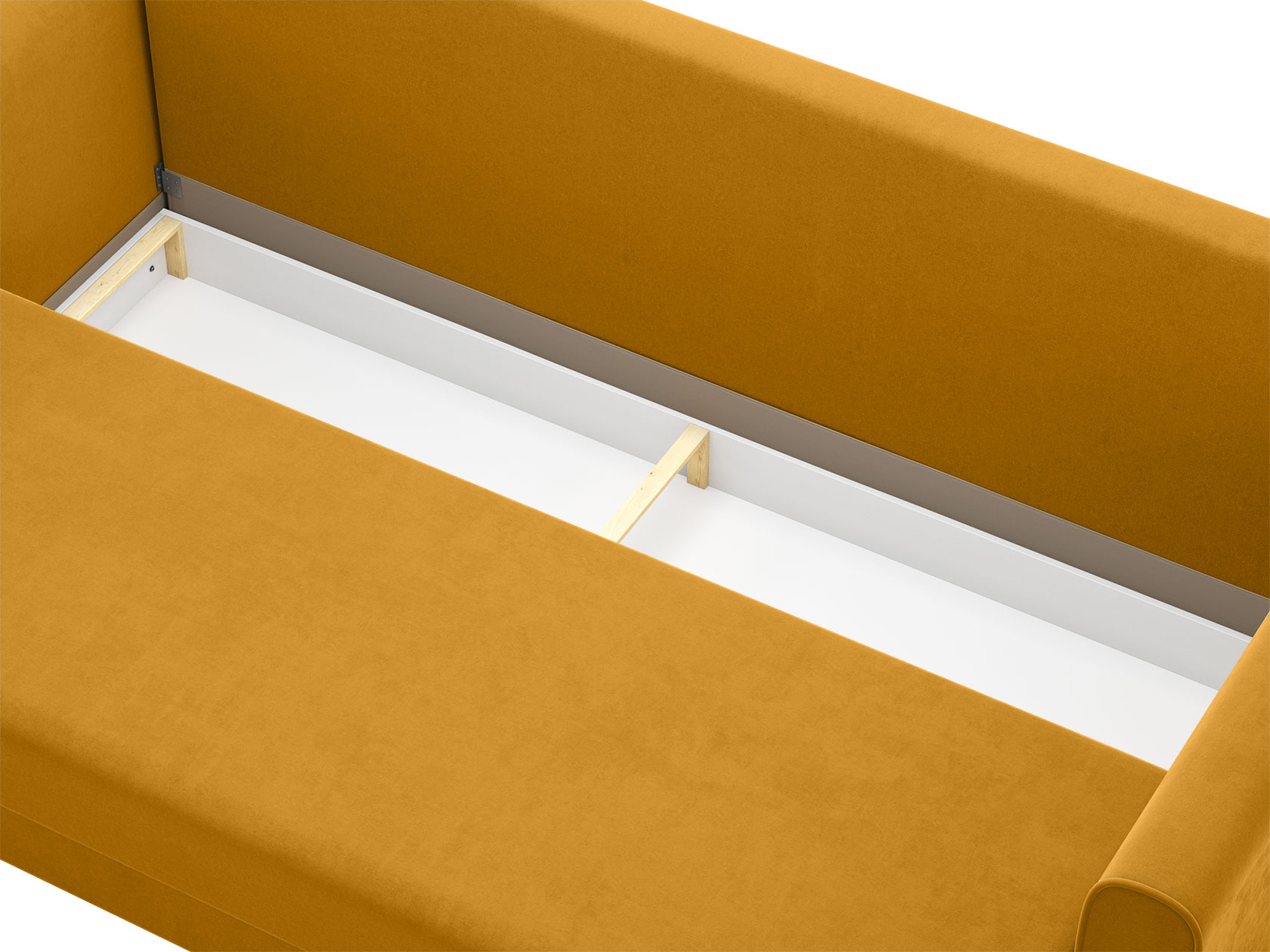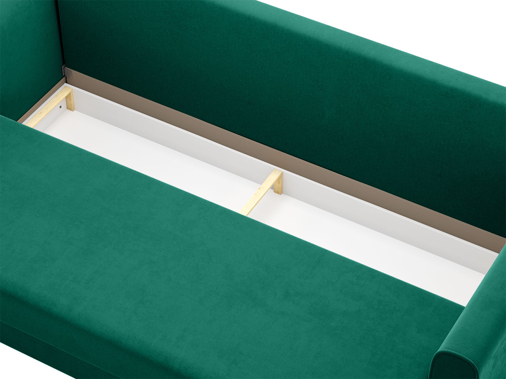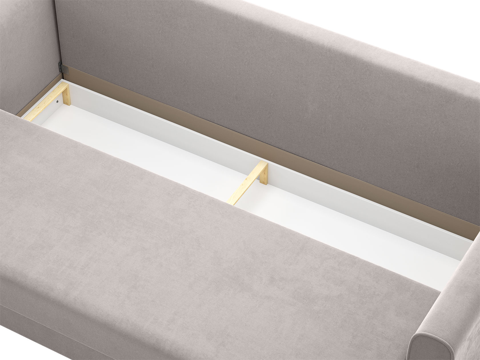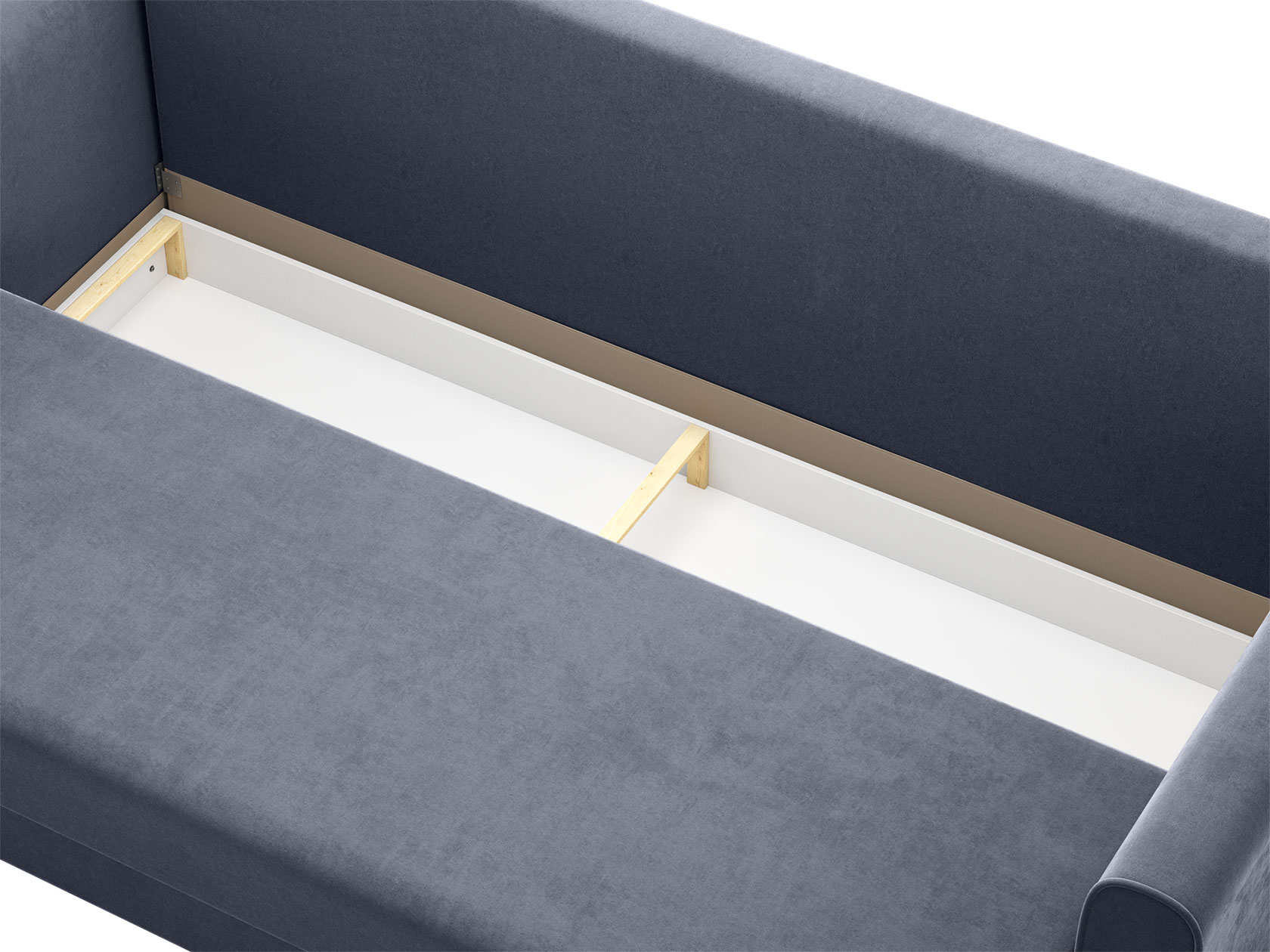 Механизм трансформации подходит для ежедневного использования и быстро превращает диван в полноценную кровать. Просторный бельевой короб создает дополнительное место хранения постельных принадлежностей. Спинка обита основной тканью, поэтому модель отлично смотрится с любого ракурса.