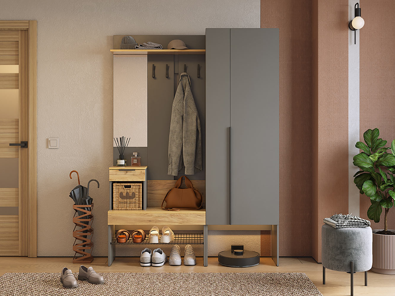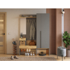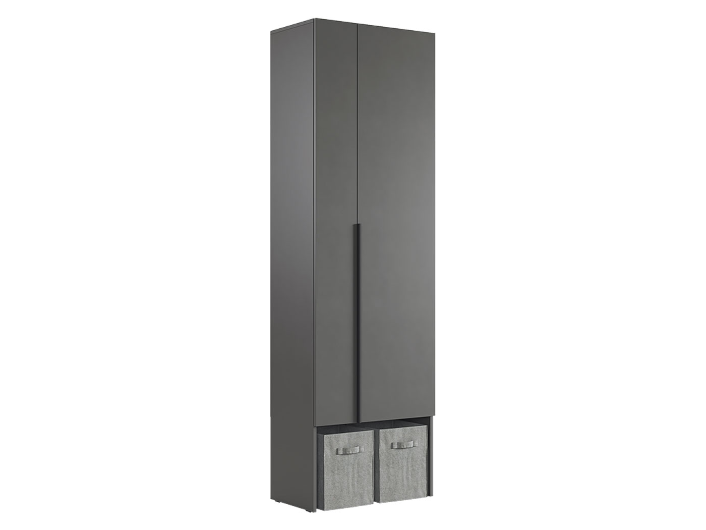 Распашной шкаф Баско 60 см оборудован штангой, где удобно расположить одежду на вешалках. Внутри достаточно места для коробок и других вещей, которые могут понадобиться в прихожей. Современный дизайн с гладкими фасадами и простыми вертикальными ручками поддерживает тренд на минимализм в интерьере.