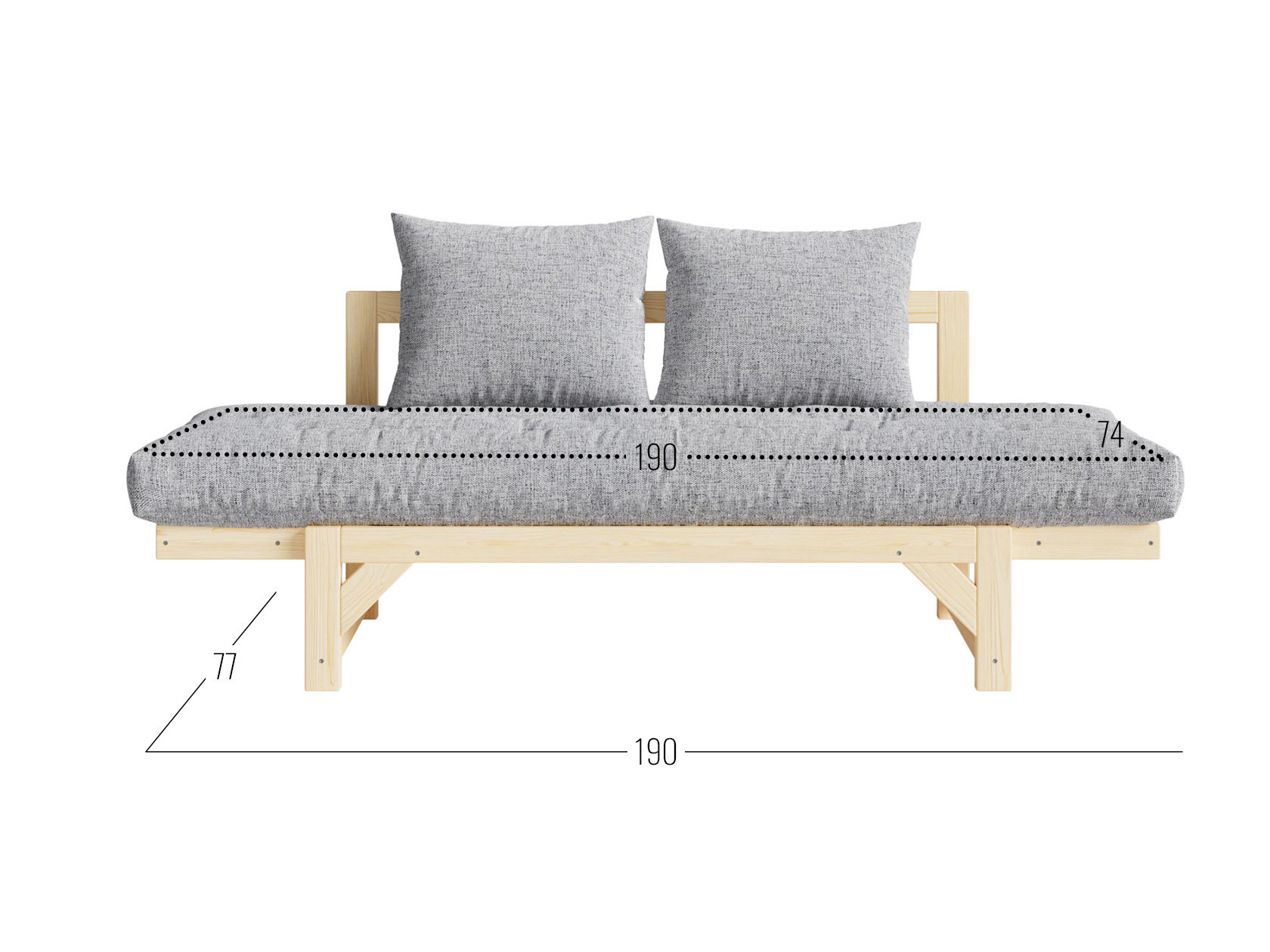 Посадочное место без подушек (ШхГ): 190 х 70 см.