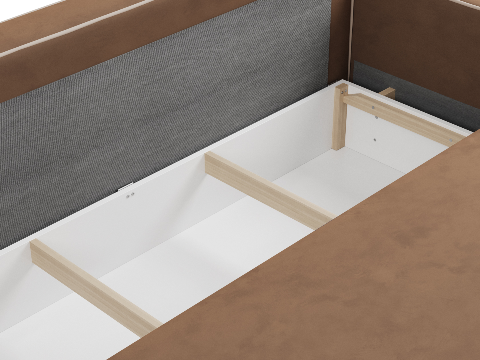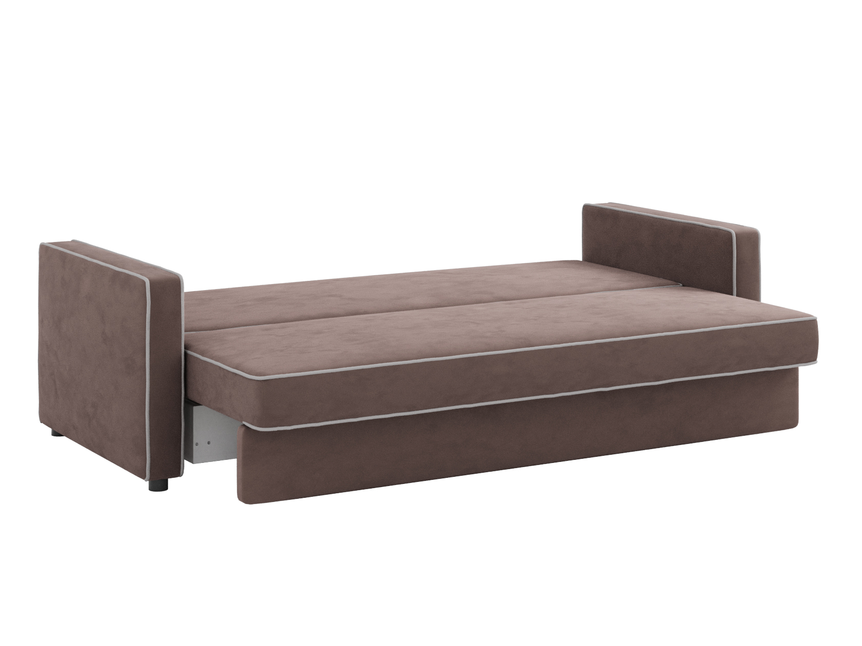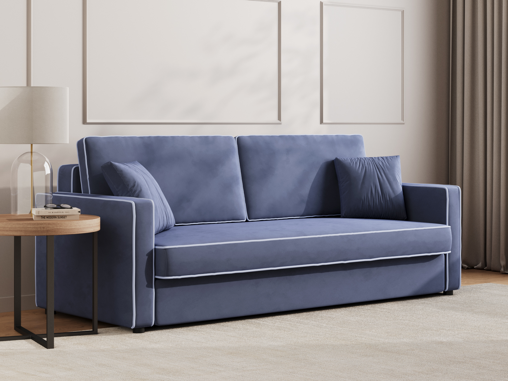 Простая трансформация в ровное место для сна делает модель удачным приобретением для однокомнатной квартиры или студии. Бельевой ящик в основании расширяет возможности для хранения. Декоративные подушки придают облику завершенность и помогают расположиться максимально комфортно.