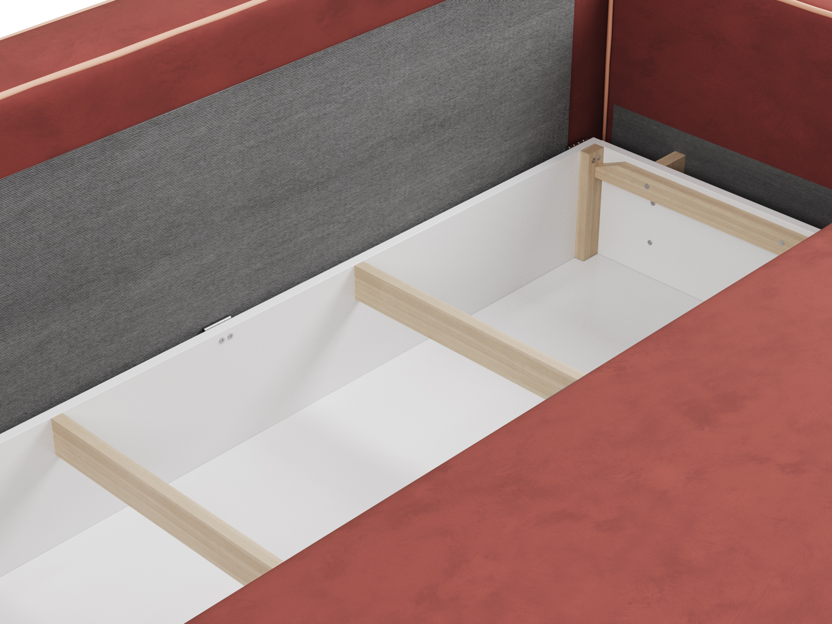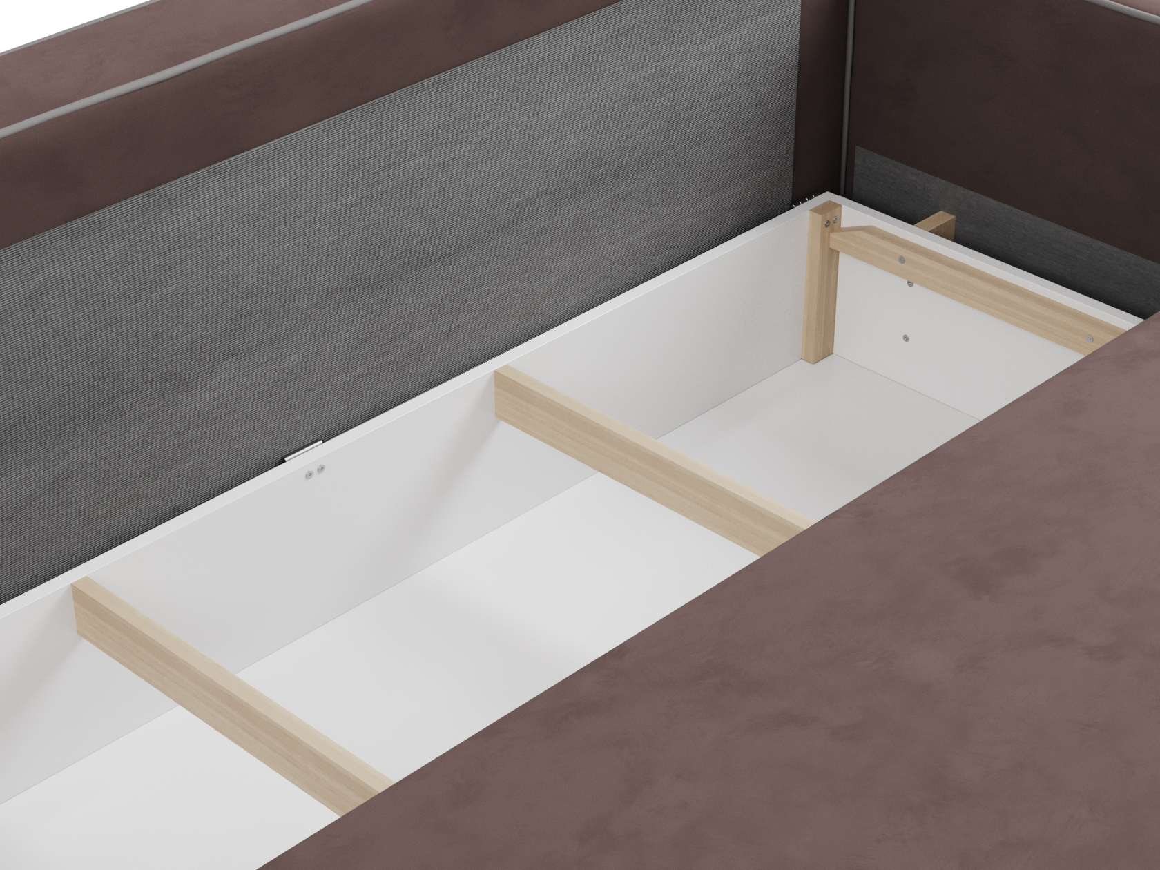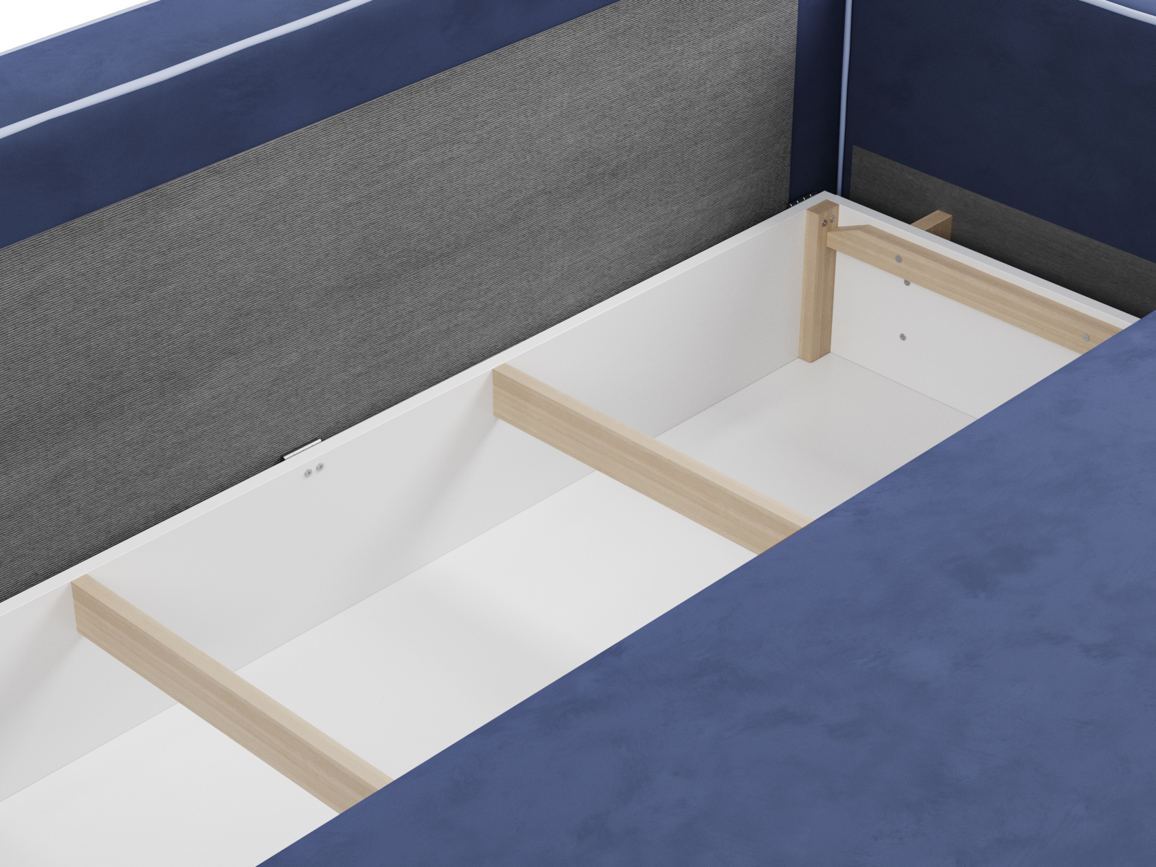 Простая трансформация в ровное место для сна делает модель удачным приобретением для однокомнатной квартиры или студии. Бельевой ящик в основании расширяет возможности для хранения. Декоративные подушки придают облику завершенность и помогают расположиться максимально комфортно.