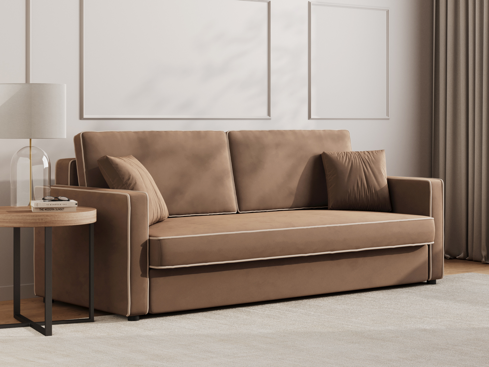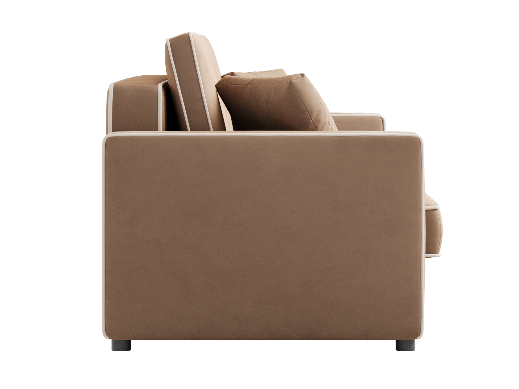 Прямой диван Орлеан основательный, удобный и практичный. Контрастный кант служит стильным декором и привлекает внимание к лаконичному силуэту. Мягкие подушки позволяют регулировать глубину посадки. Диван с любой стороны смотрится эстетично, поэтому его можно установить спинкой на виду для зонирования большой комнаты.