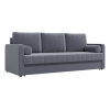 Спинка выполнена в основной ткани, поэтому диван можно поставить в любой точке комнаты. С помощью удобного механизма трансформации модель быстро превращается в полноценное спальное место. Конструкция проста в использовании и рассчитана на частое использование. Просторный бельевой короб — практичное дополнение системы хранения.