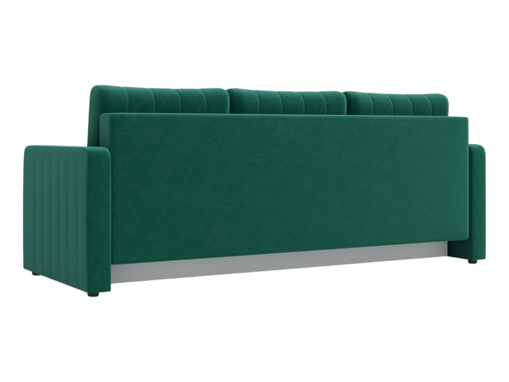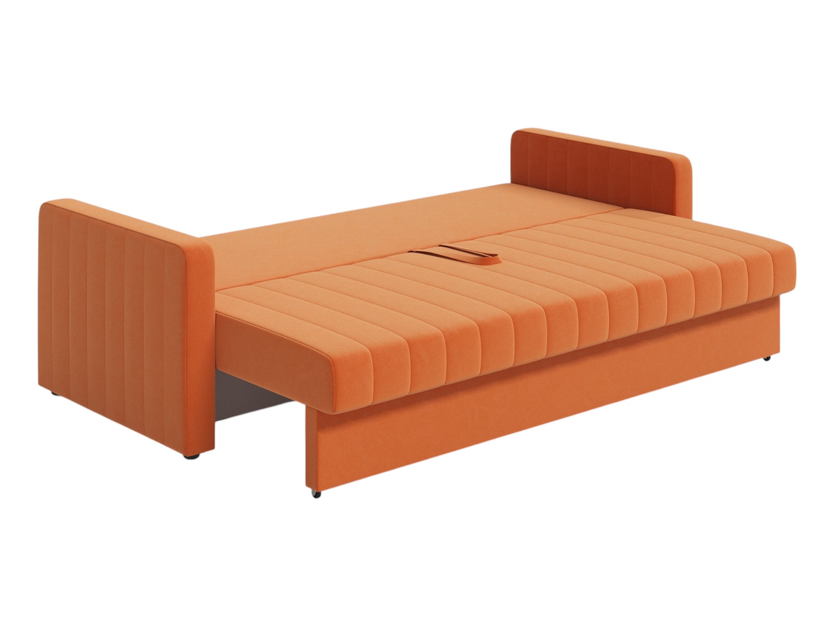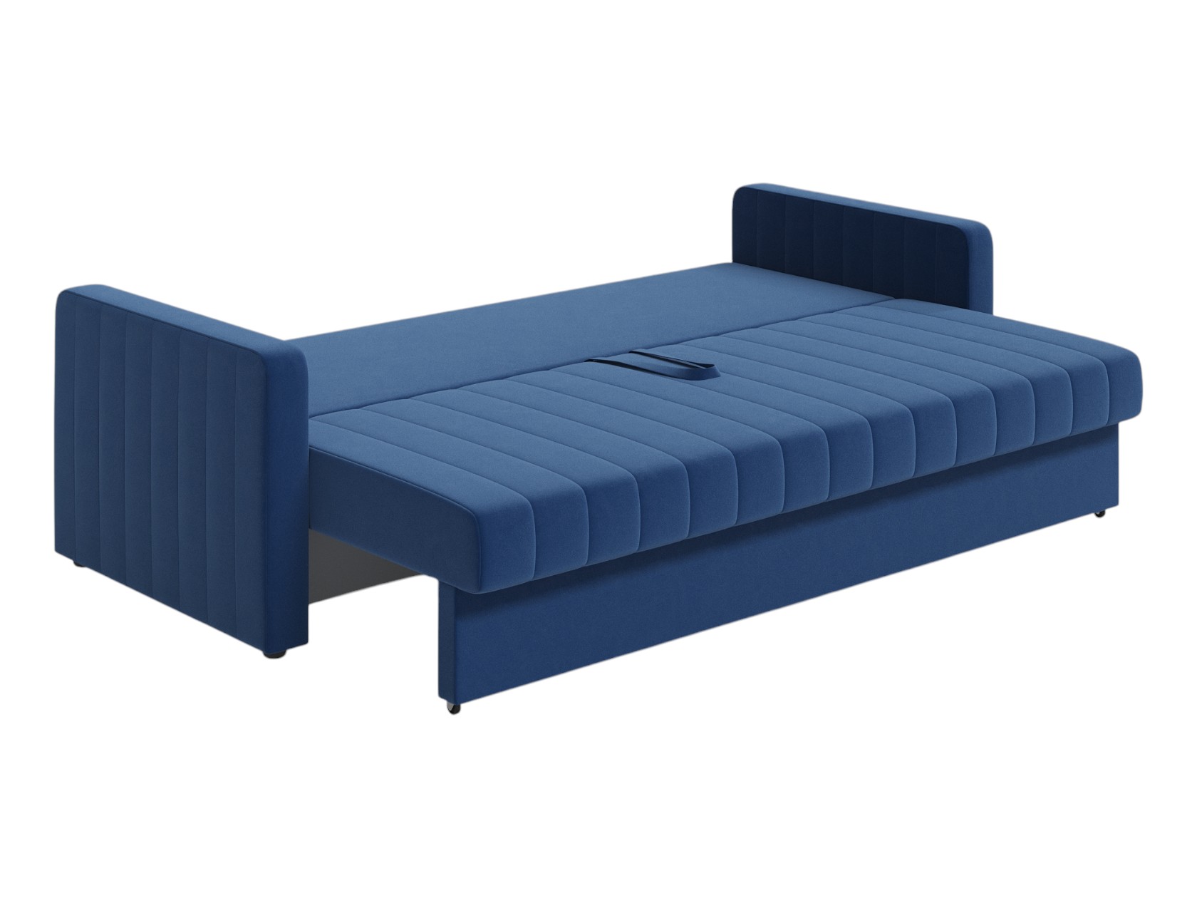 Спинка выполнена в основной ткани, поэтому диван можно поставить в любой точке комнаты. С помощью удобного механизма трансформации модель быстро превращается в полноценное спальное место. Конструкция проста в использовании и рассчитана на частое использование. Просторный бельевой короб — практичное дополнение системы хранения.