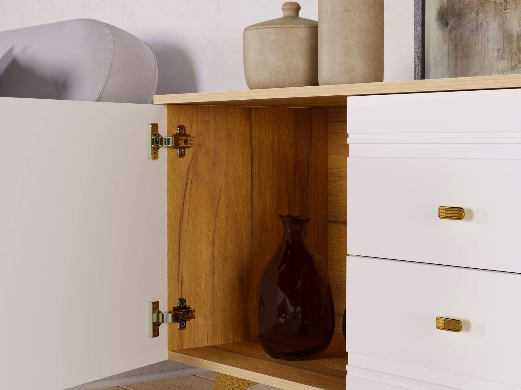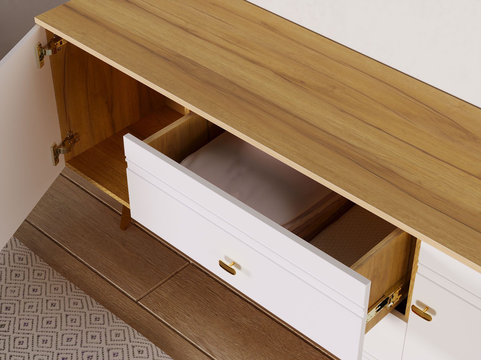 Дуб золотистый / Белый глянец. 150 см