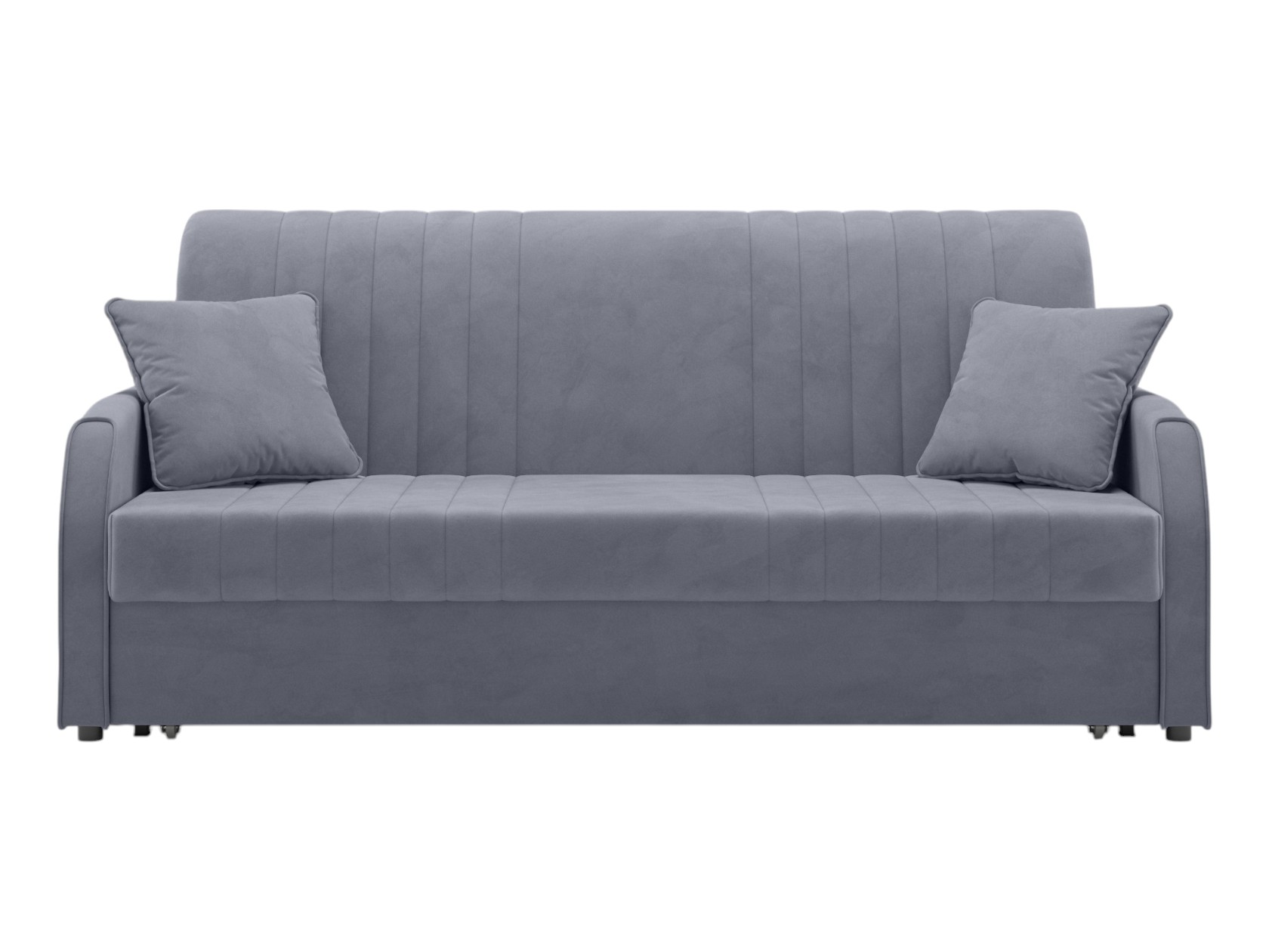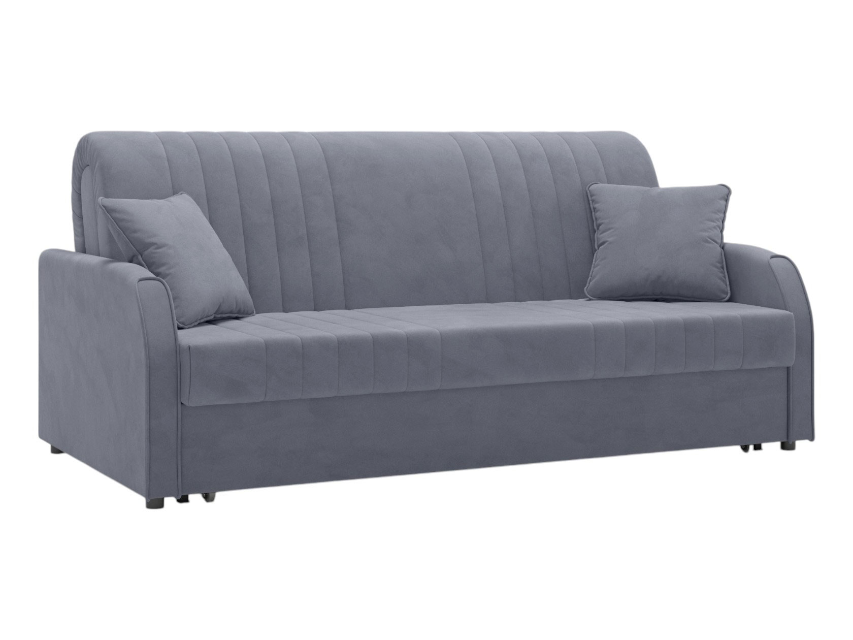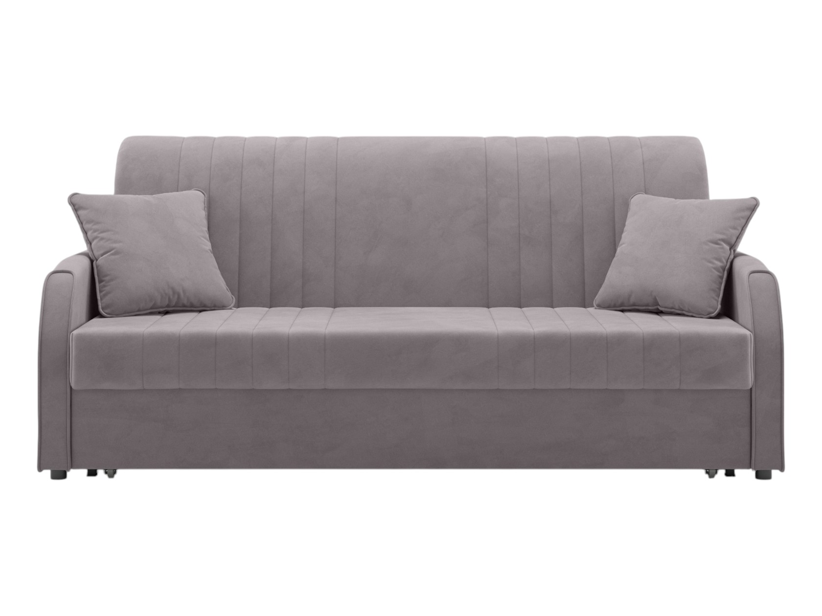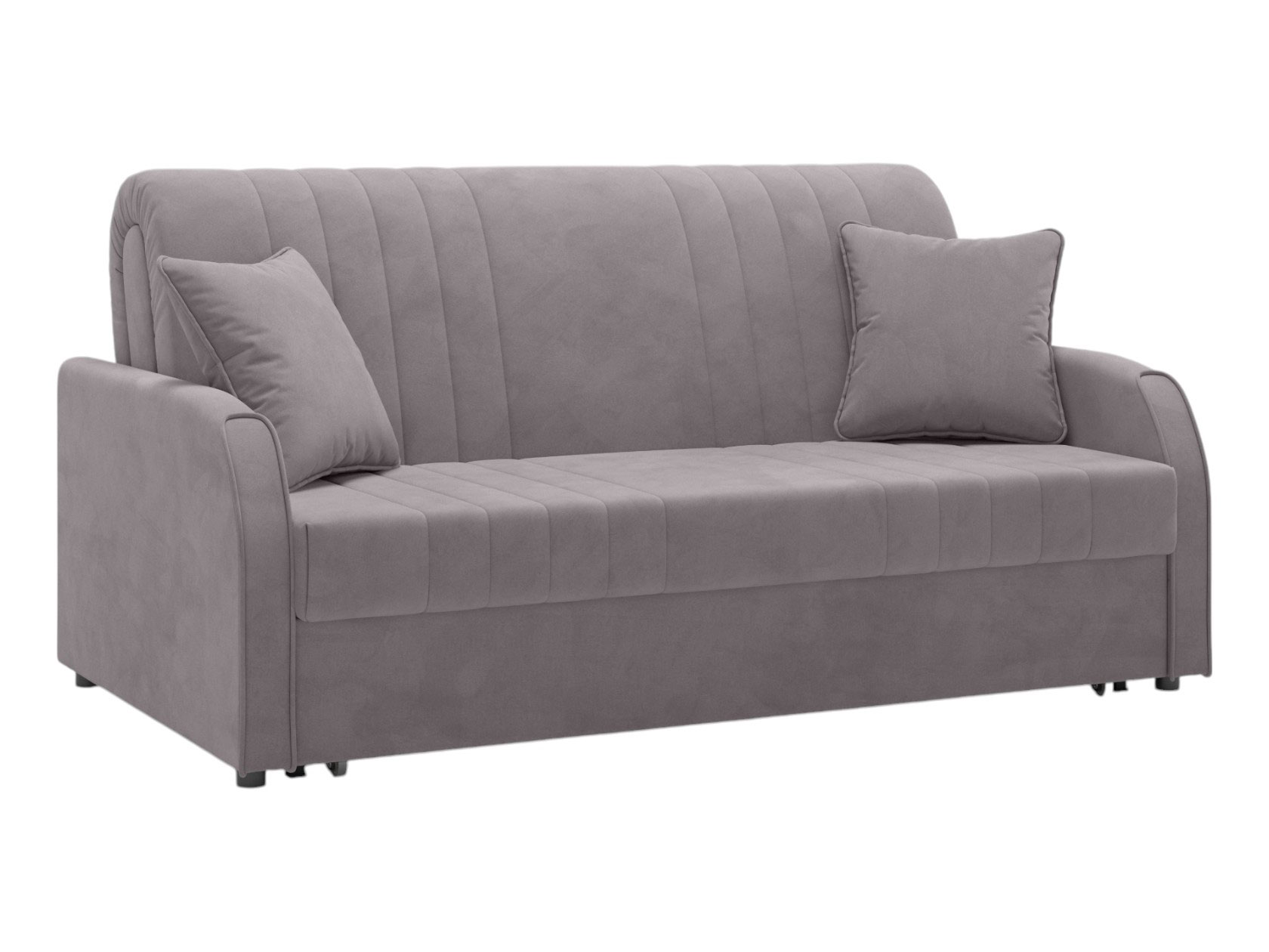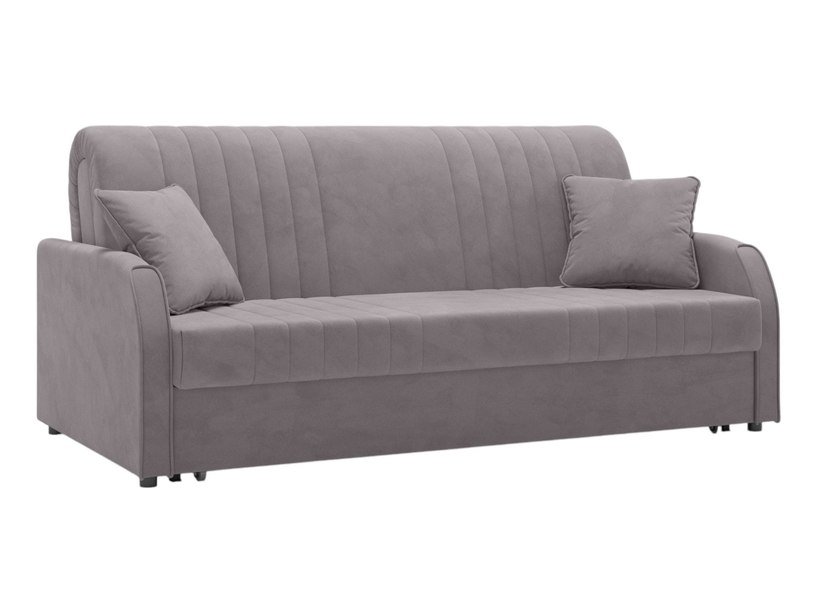 Прямой диван Сантос — отличный выбор для современного интерьера. Спинка обита основной тканью, поэтому модель можно расположить на виду, используя для зонирования большой комнаты. Декоративная строчка придает облику завершенный и привлекательный вид. В разложенном виде образуется ровное и комфортное спальное место, которое отделено от стены небольшой планкой.