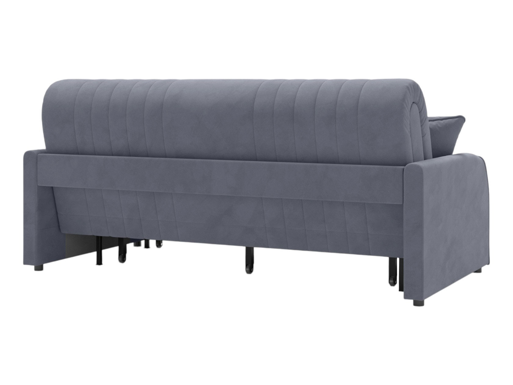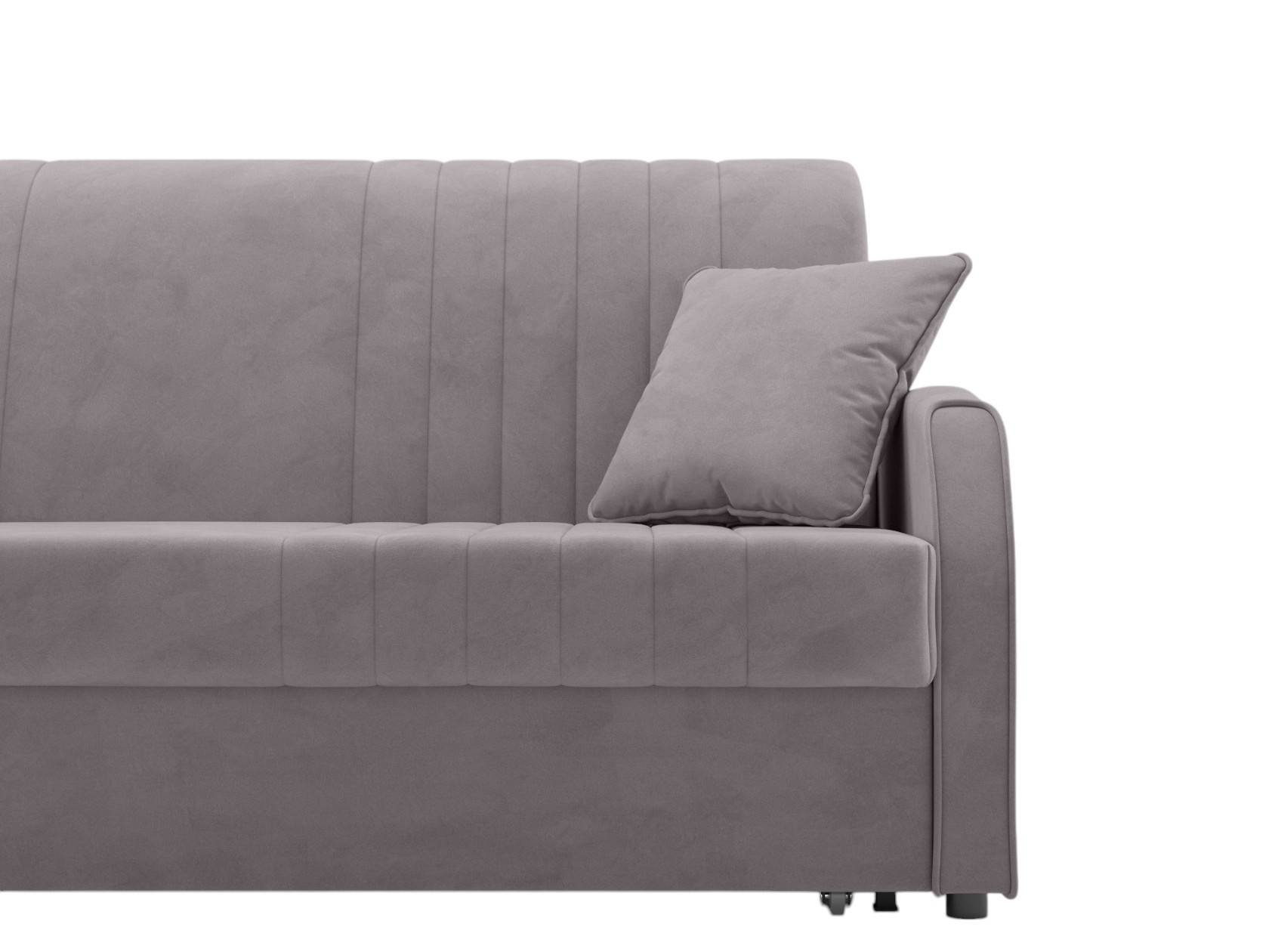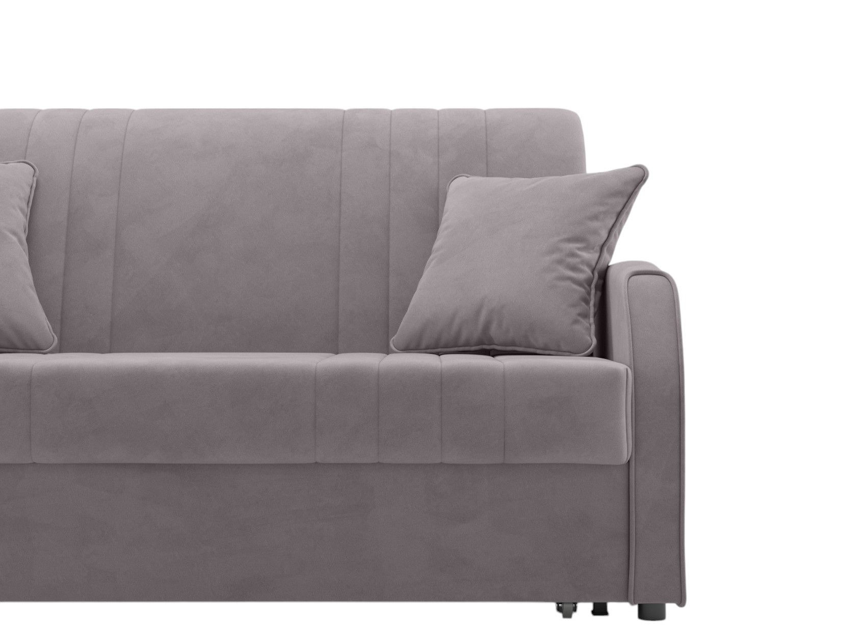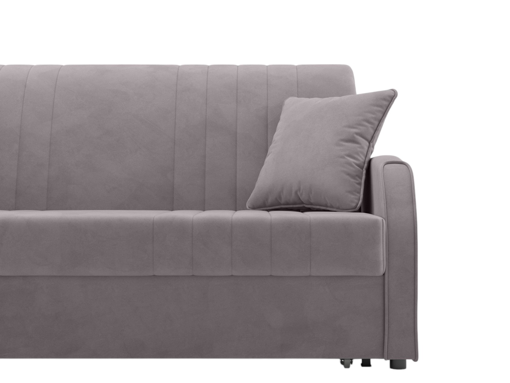 Прямой диван Сантос — отличный выбор для современного интерьера. Спинка обита основной тканью, поэтому модель можно расположить на виду, используя для зонирования большой комнаты. Декоративная строчка придает облику завершенный и привлекательный вид. В разложенном виде образуется ровное и комфортное спальное место, которое отделено от стены небольшой планкой.