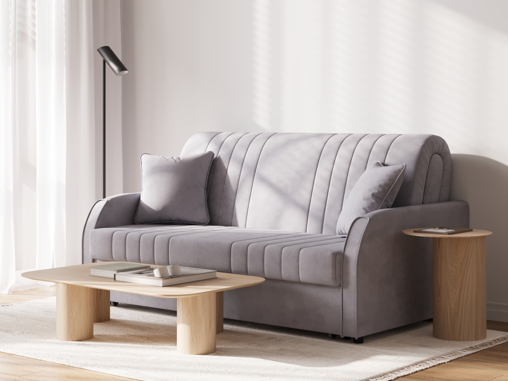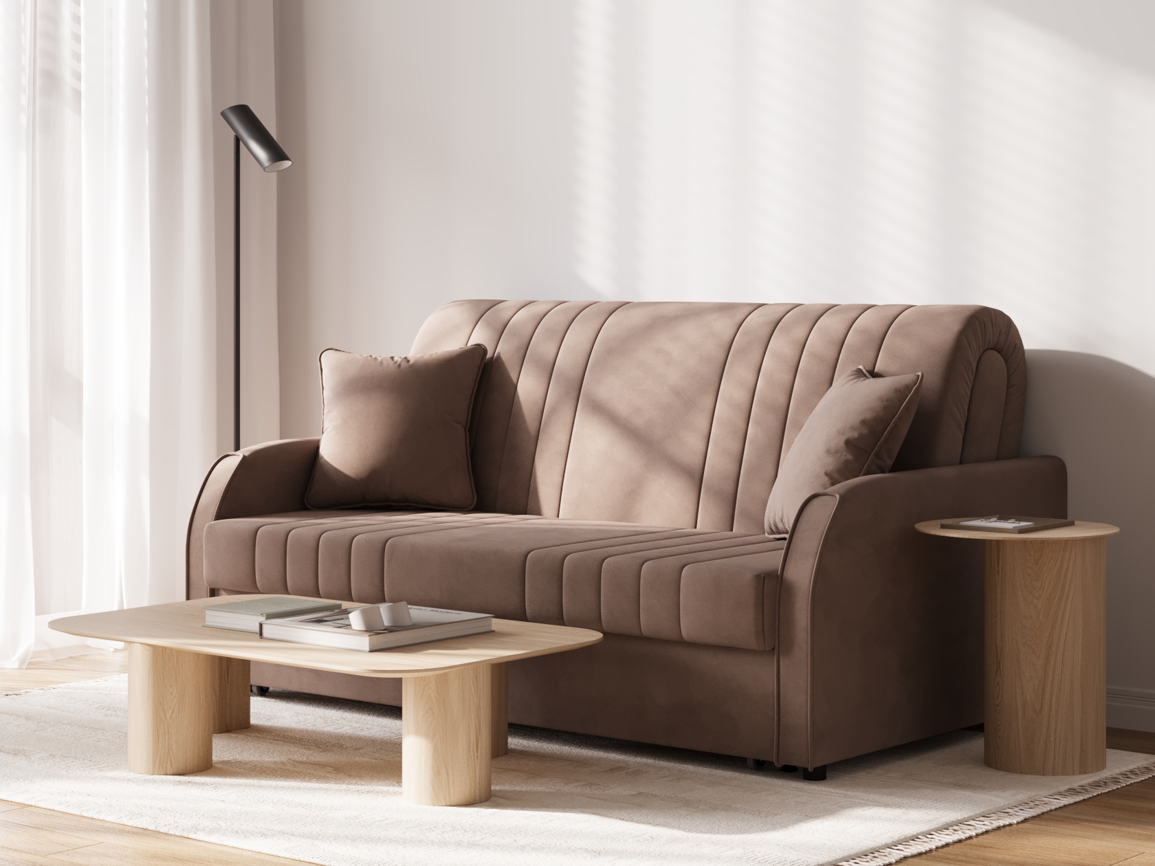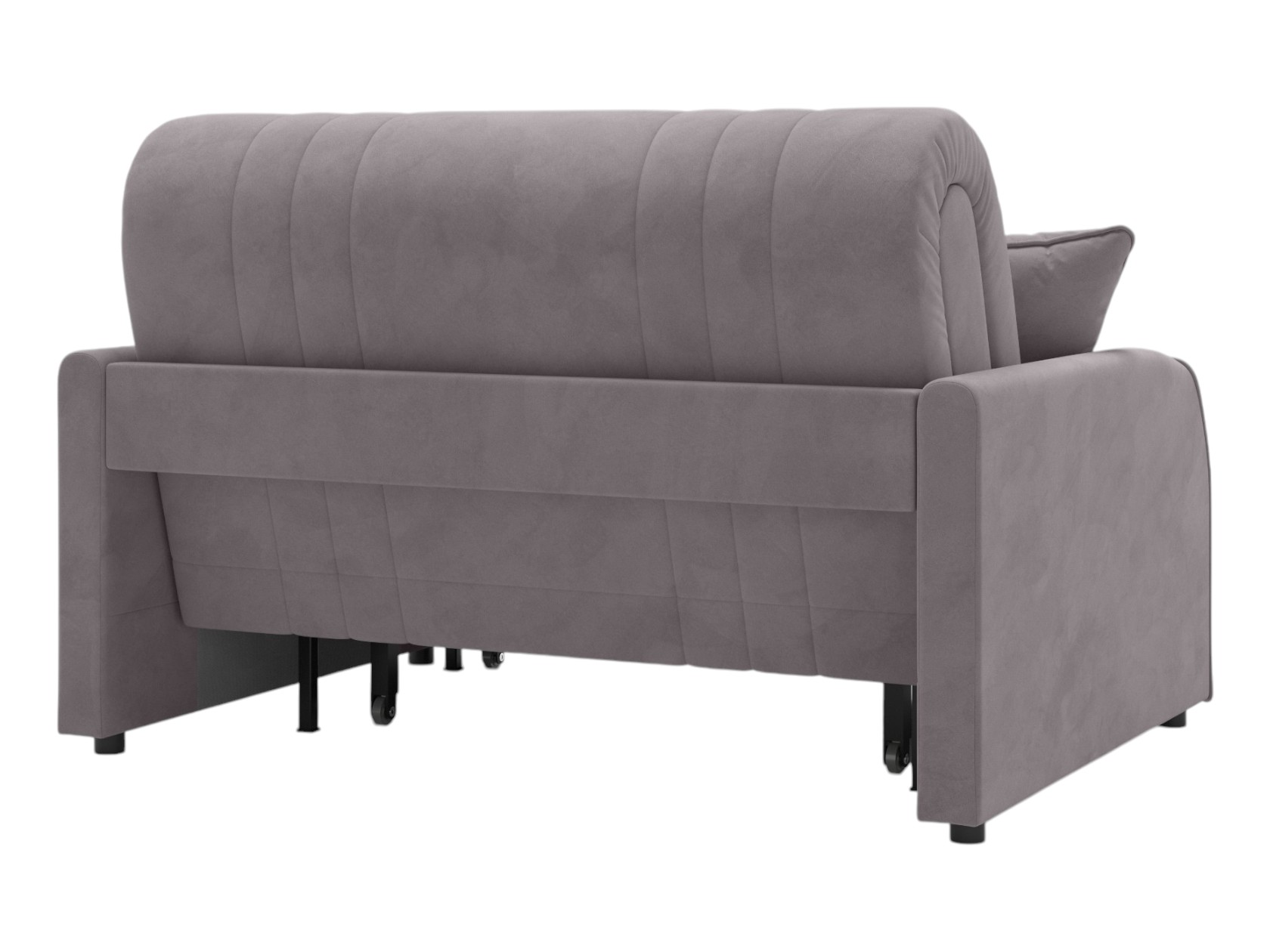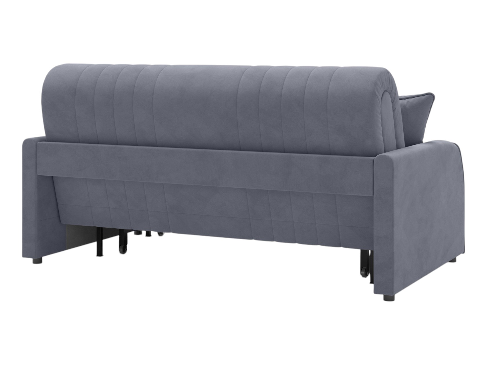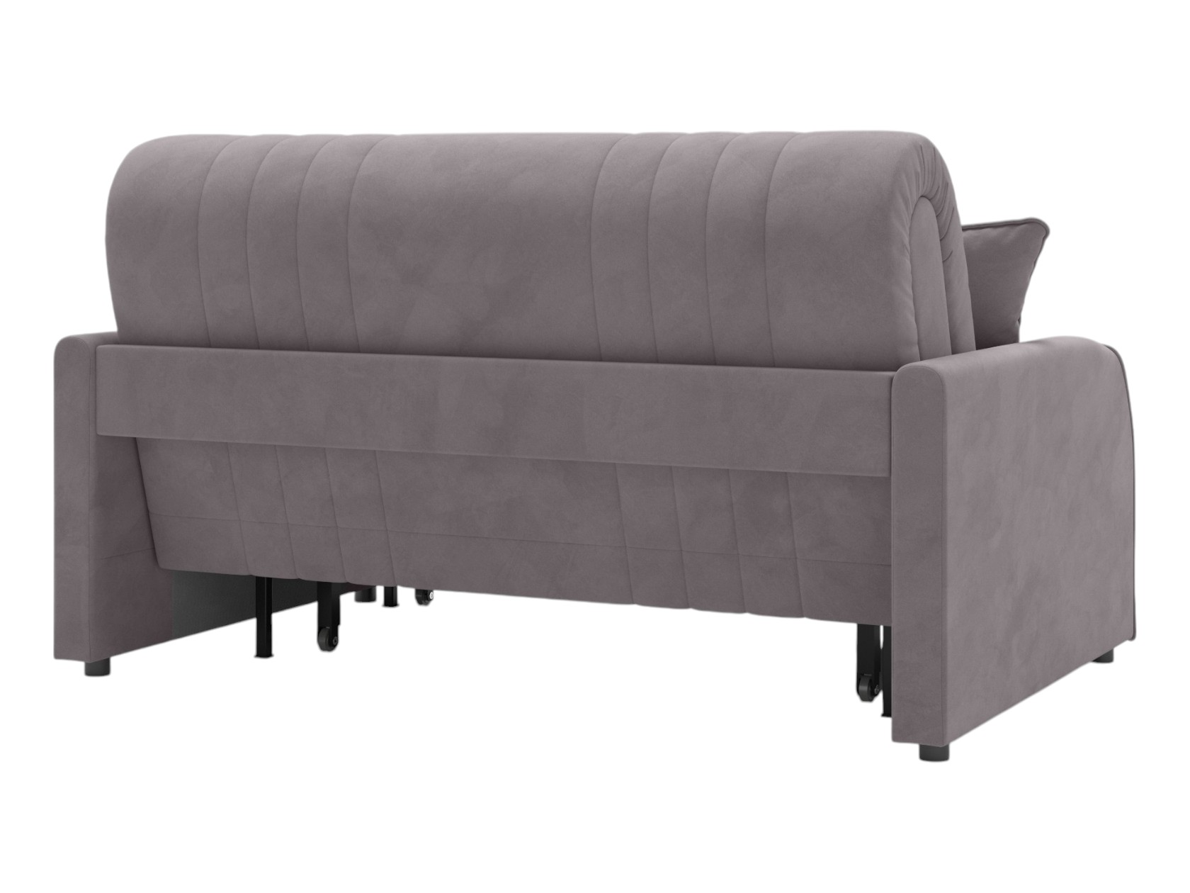 Прямой диван Сантос — отличный выбор для современного интерьера. Спинка обита основной тканью, поэтому модель можно расположить на виду, используя для зонирования большой комнаты. Декоративная строчка придает облику завершенный и привлекательный вид. В разложенном виде образуется ровное и комфортное спальное место, которое отделено от стены небольшой планкой.