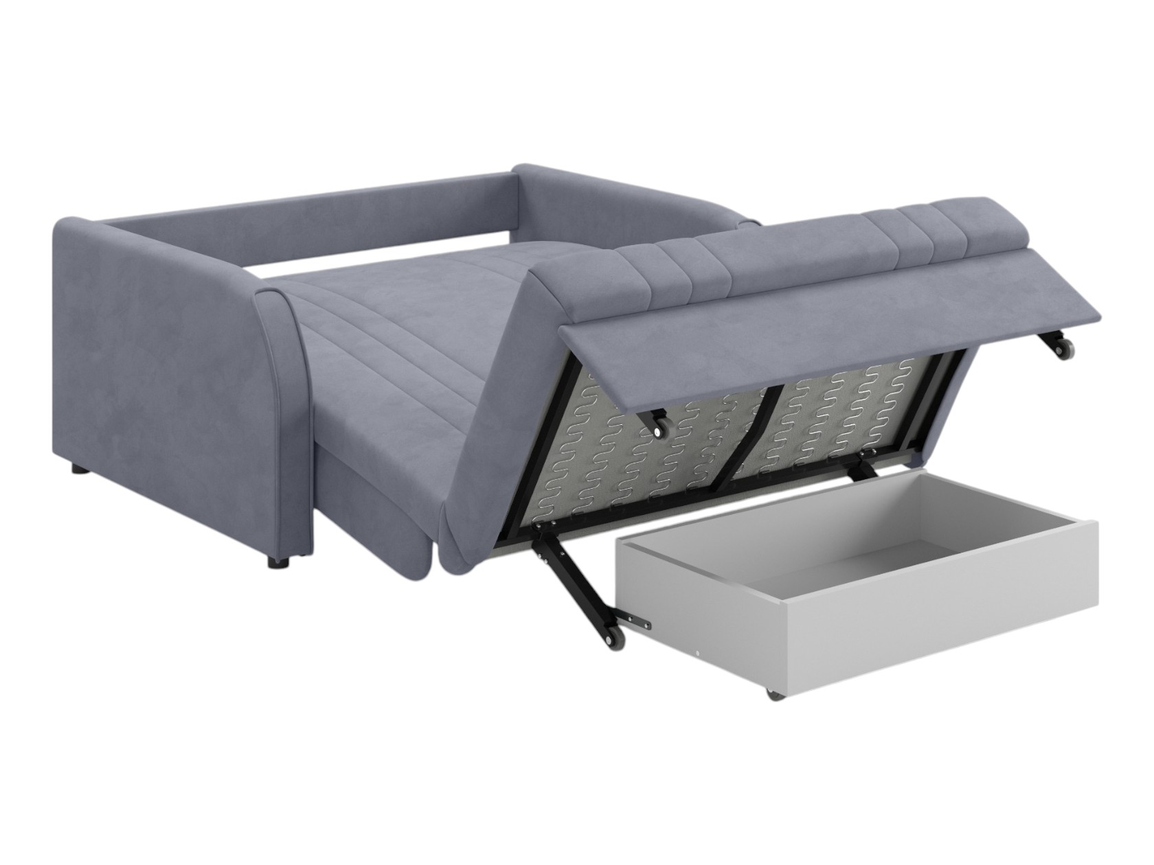 Серый, велюр. 120х203 см. С ящиком