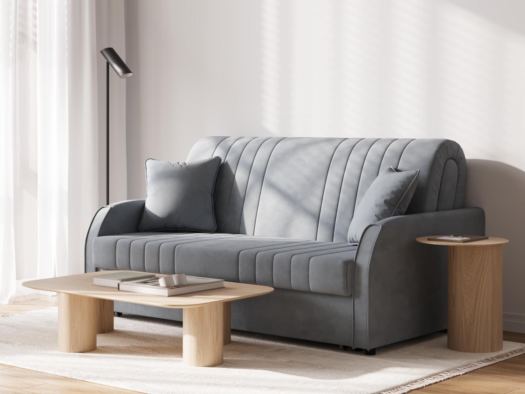 Серый, велюр. 140х203 см. Без ящиков