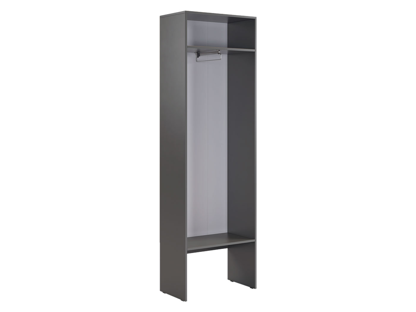 Прихожая Баско с антресолями — простой и элегантный способ обустроить эстетичную входную зону. В наборе есть всё необходимое для хранения одежды, обуви и сопутствующих аксессуаров. Строгие линии дополнены аскетичными вертикальными ручками, что создает единую тональность дизайна.