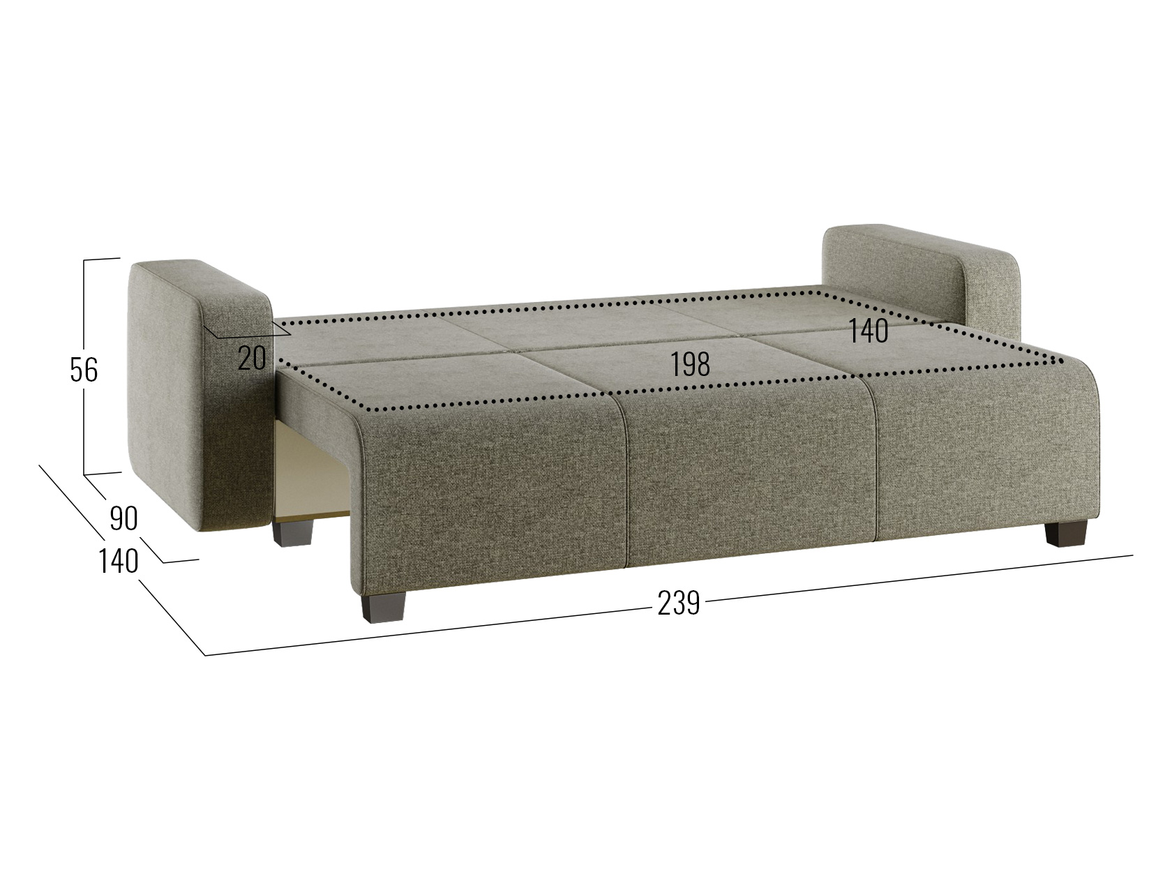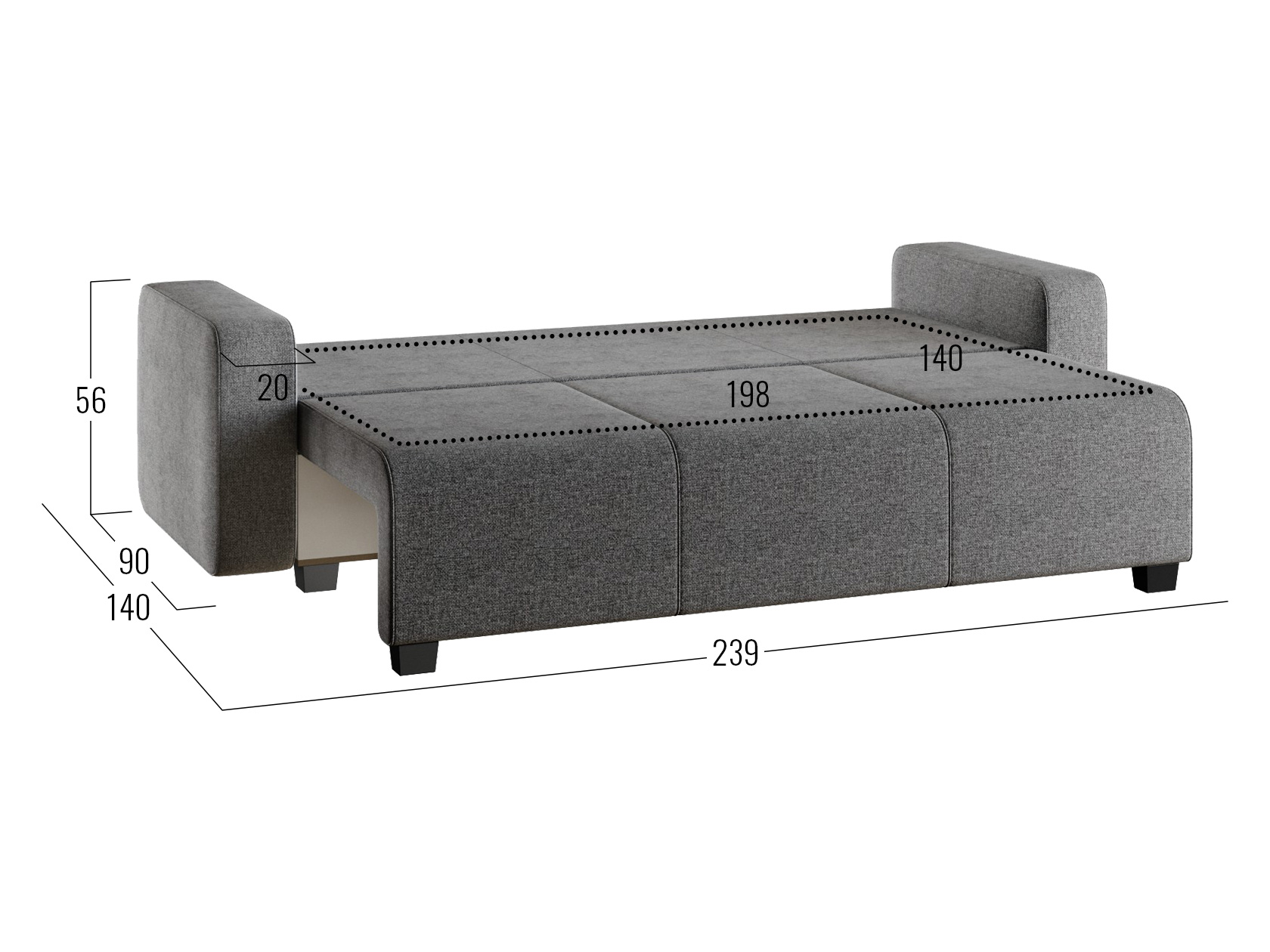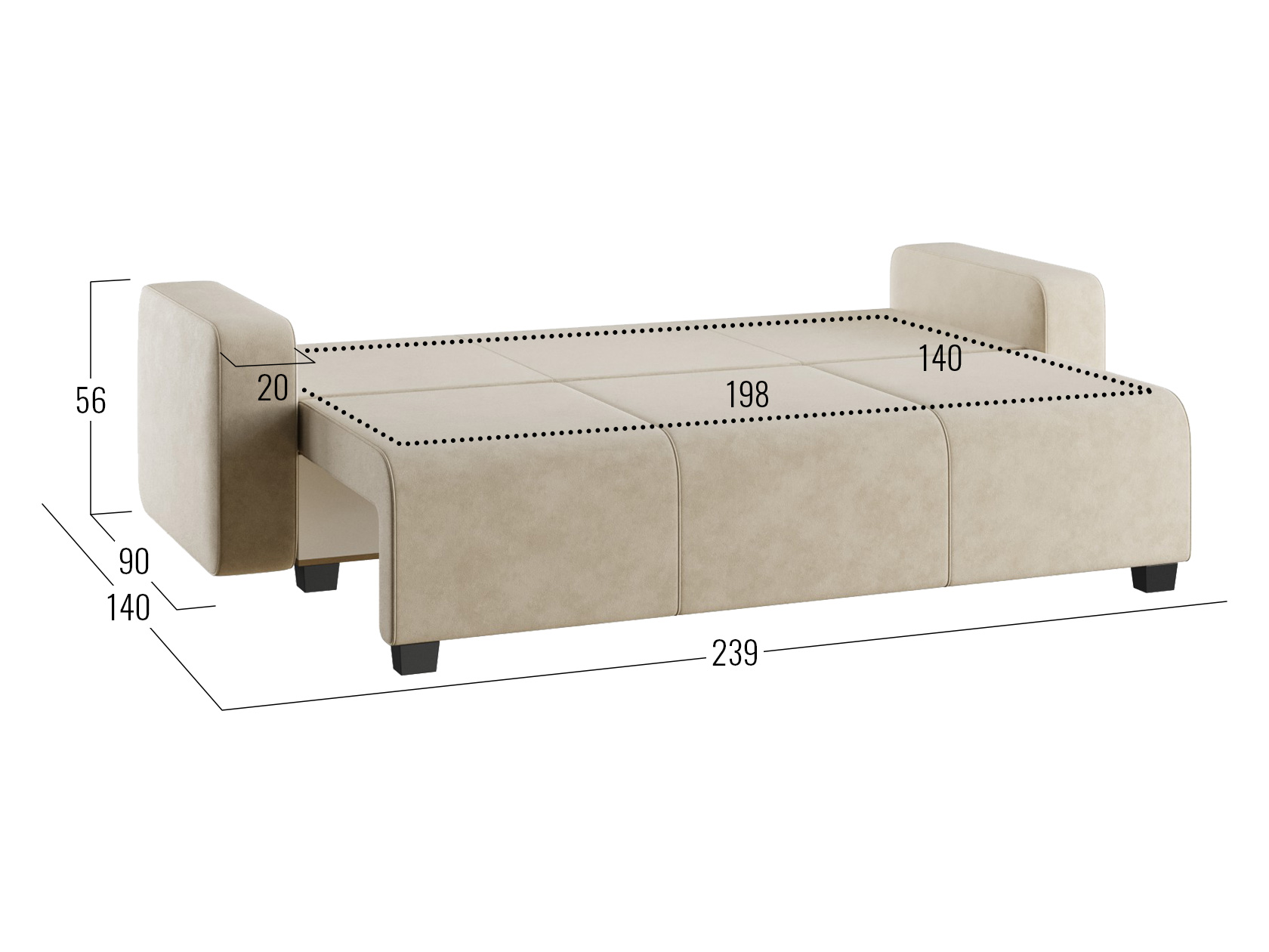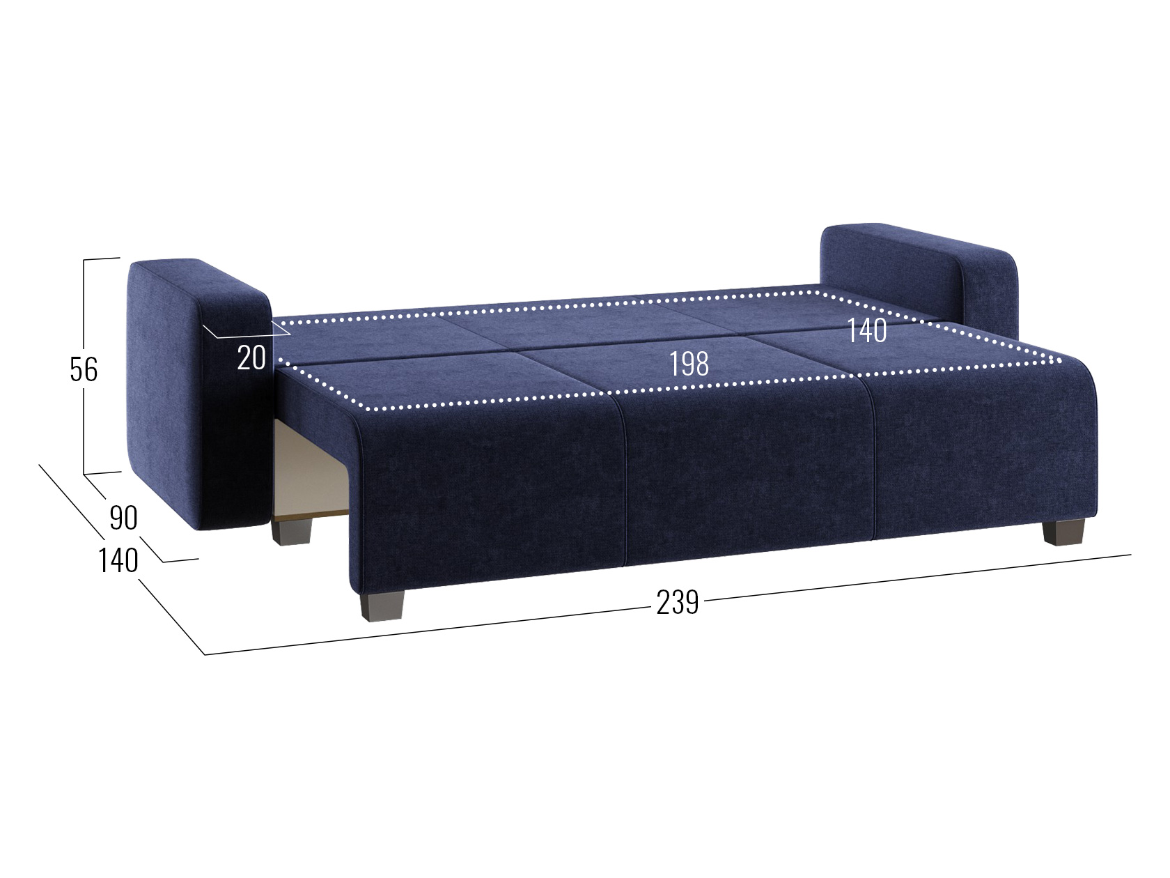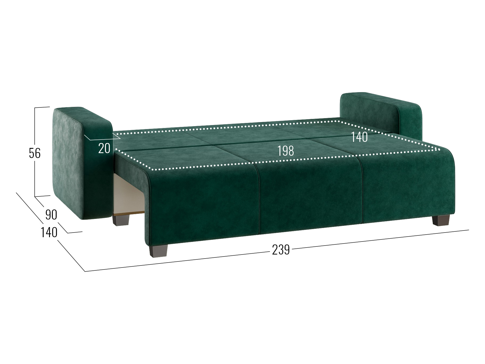 В разложенном виде образуется ровная и комфортная для сна поверхность. В основании предусмотрен просторный короб с двумя отсеками, что делает диван еще практичнее и создает дополнительные ниши для хранения вещей.