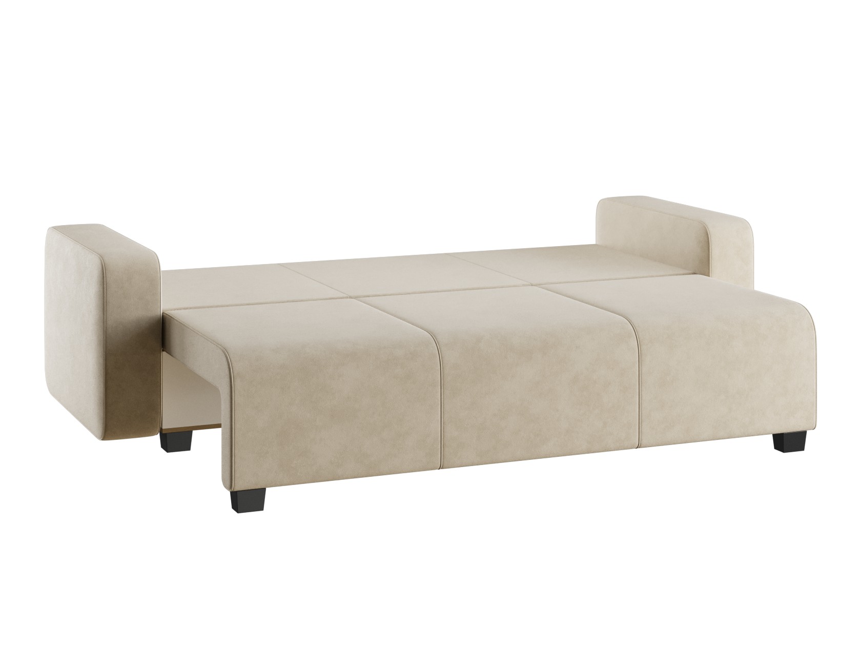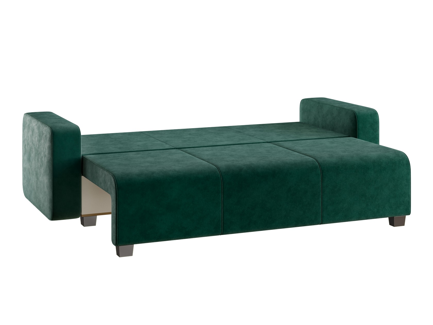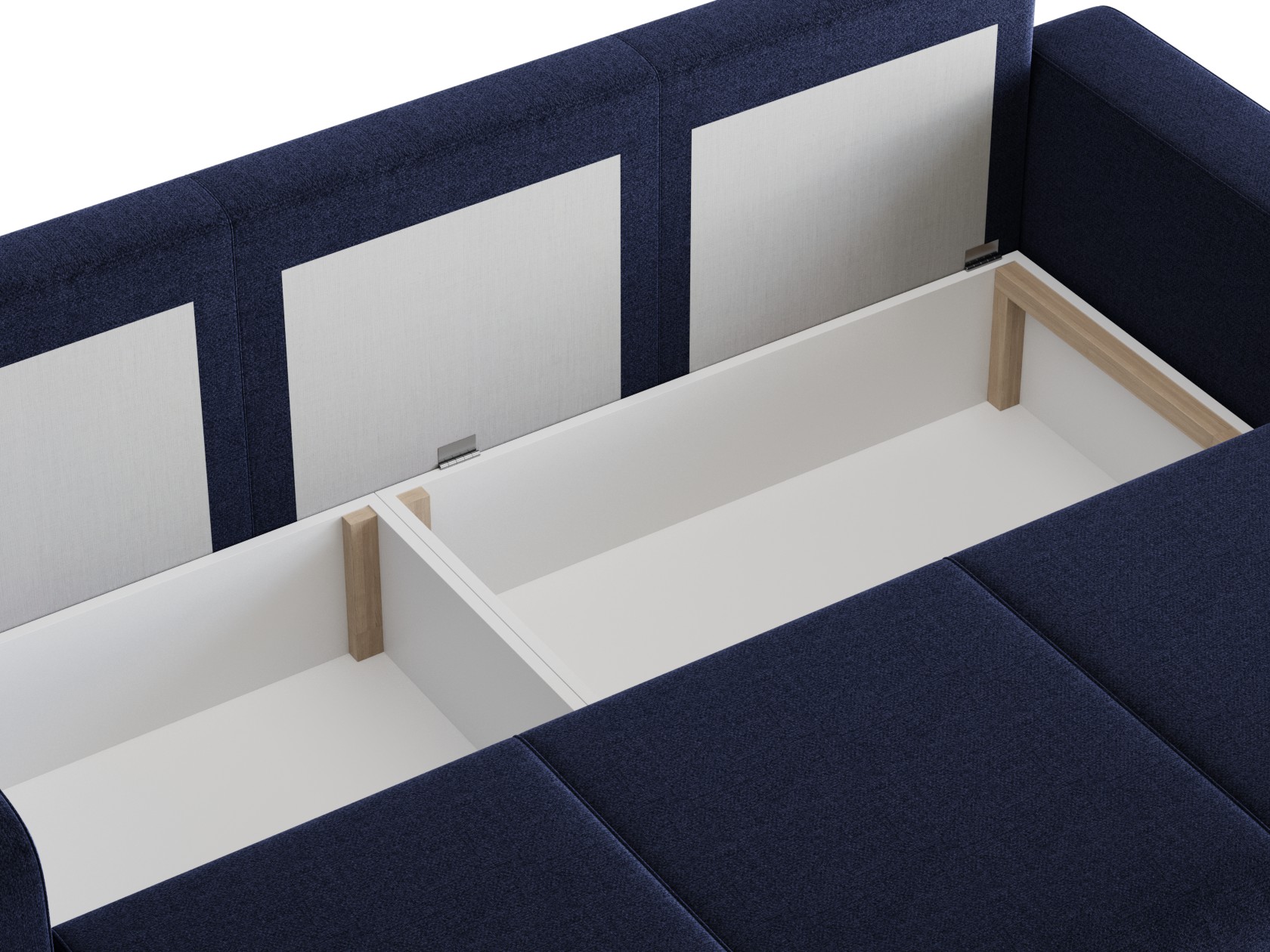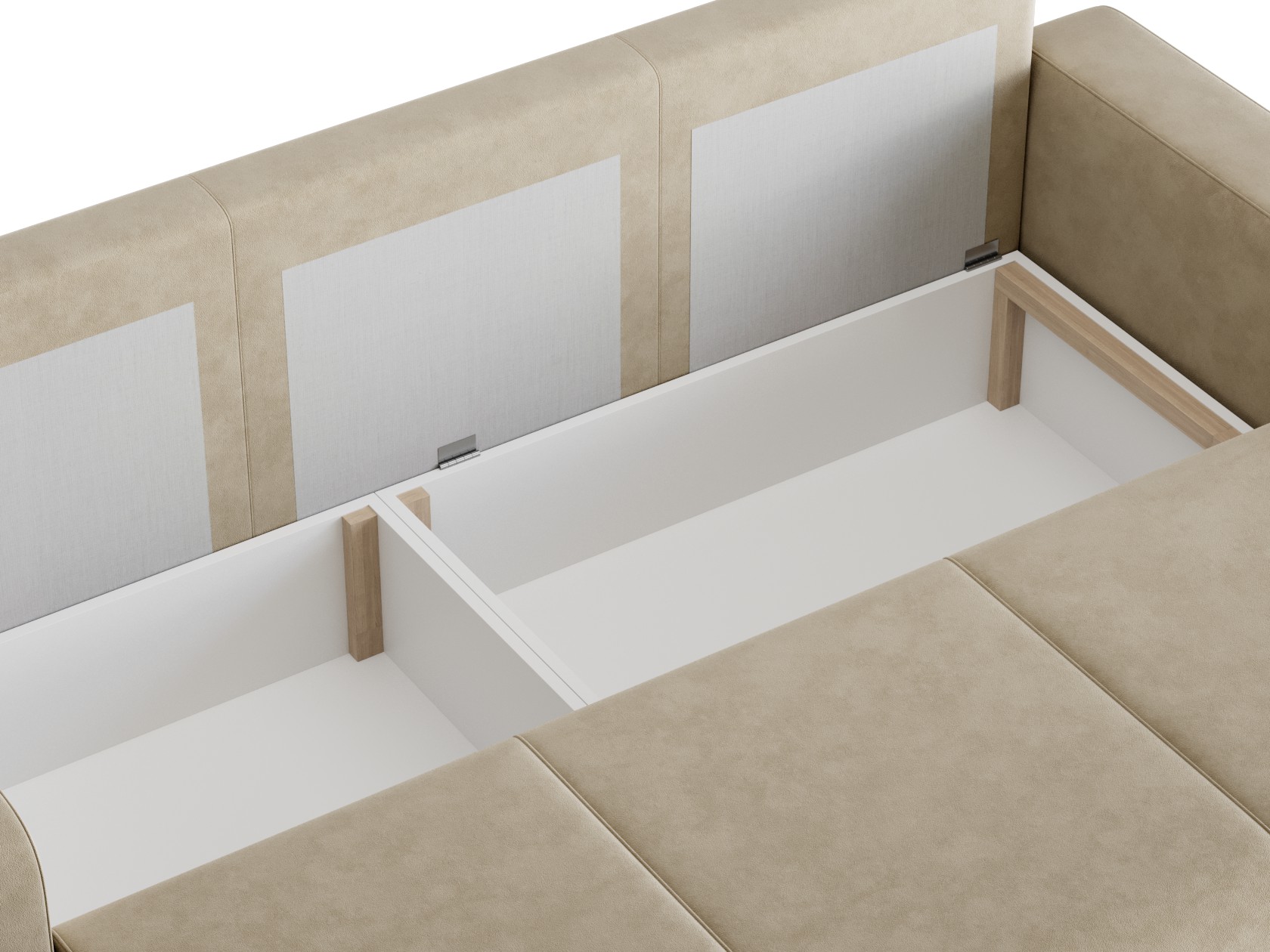 В разложенном виде образуется ровная и комфортная для сна поверхность. В основании предусмотрен просторный короб с двумя отсеками, что делает диван еще практичнее и создает дополнительные ниши для хранения вещей.