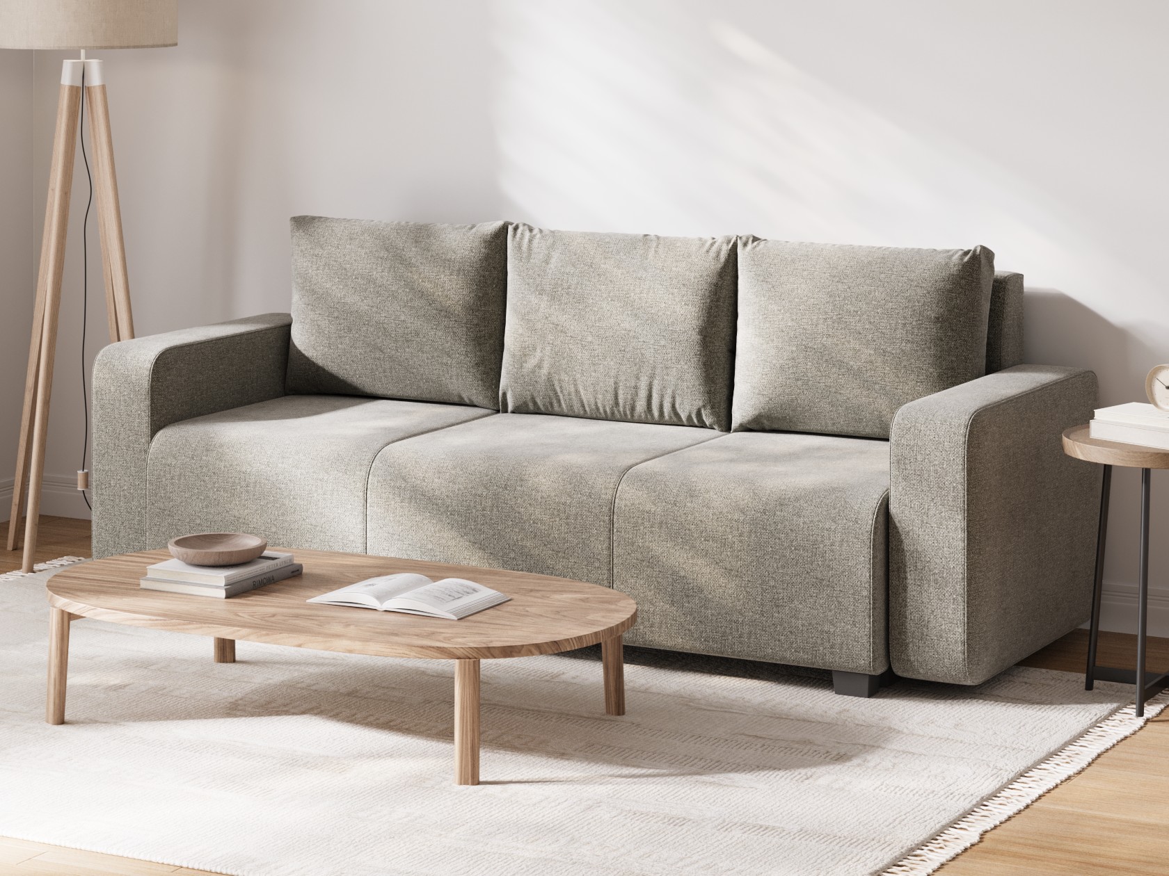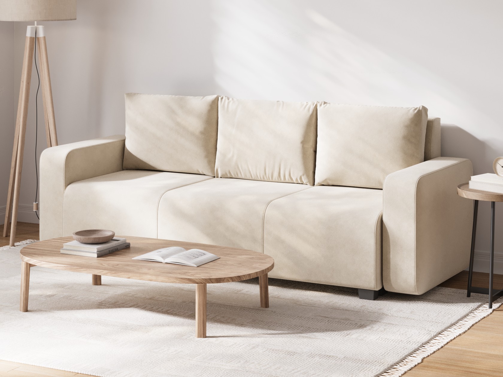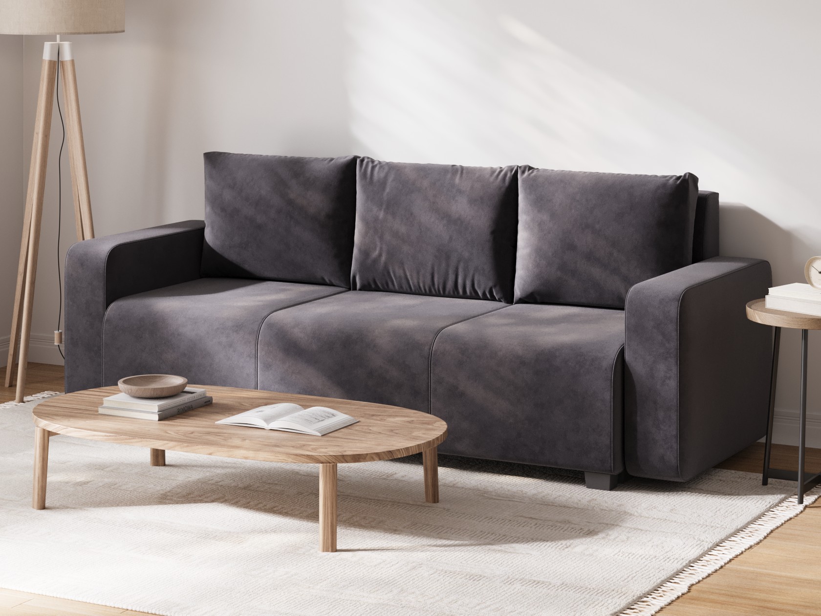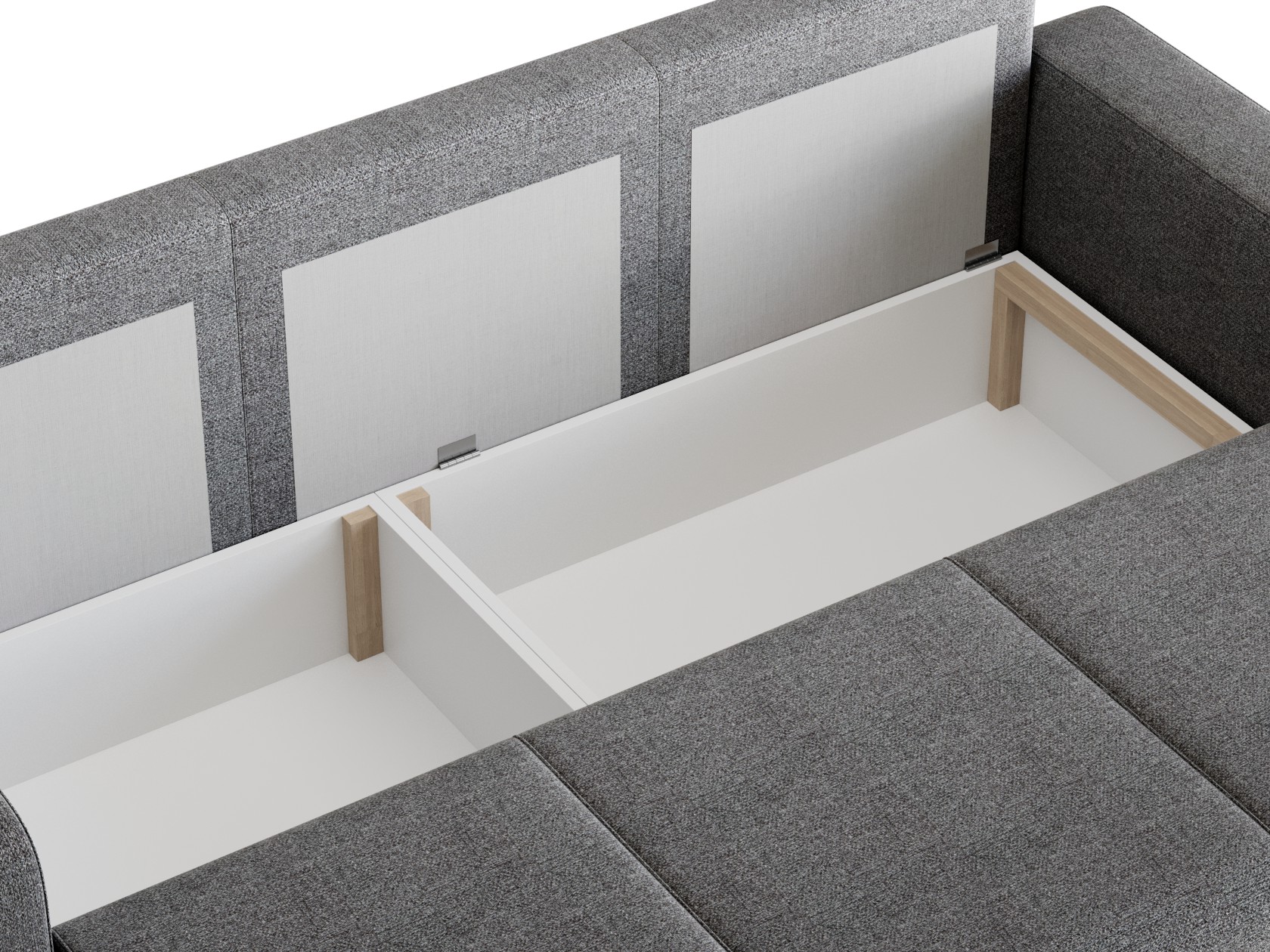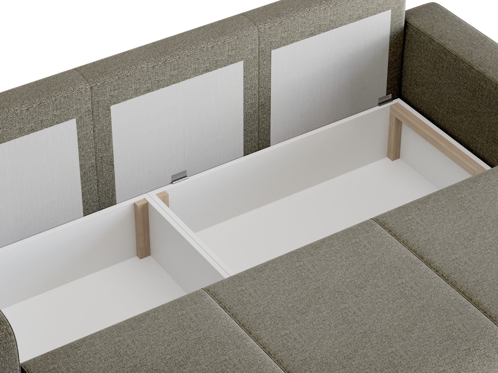 В разложенном виде образуется ровная и комфортная для сна поверхность. В основании предусмотрен просторный короб с двумя отсеками, что делает диван еще практичнее и создает дополнительные ниши для хранения вещей.