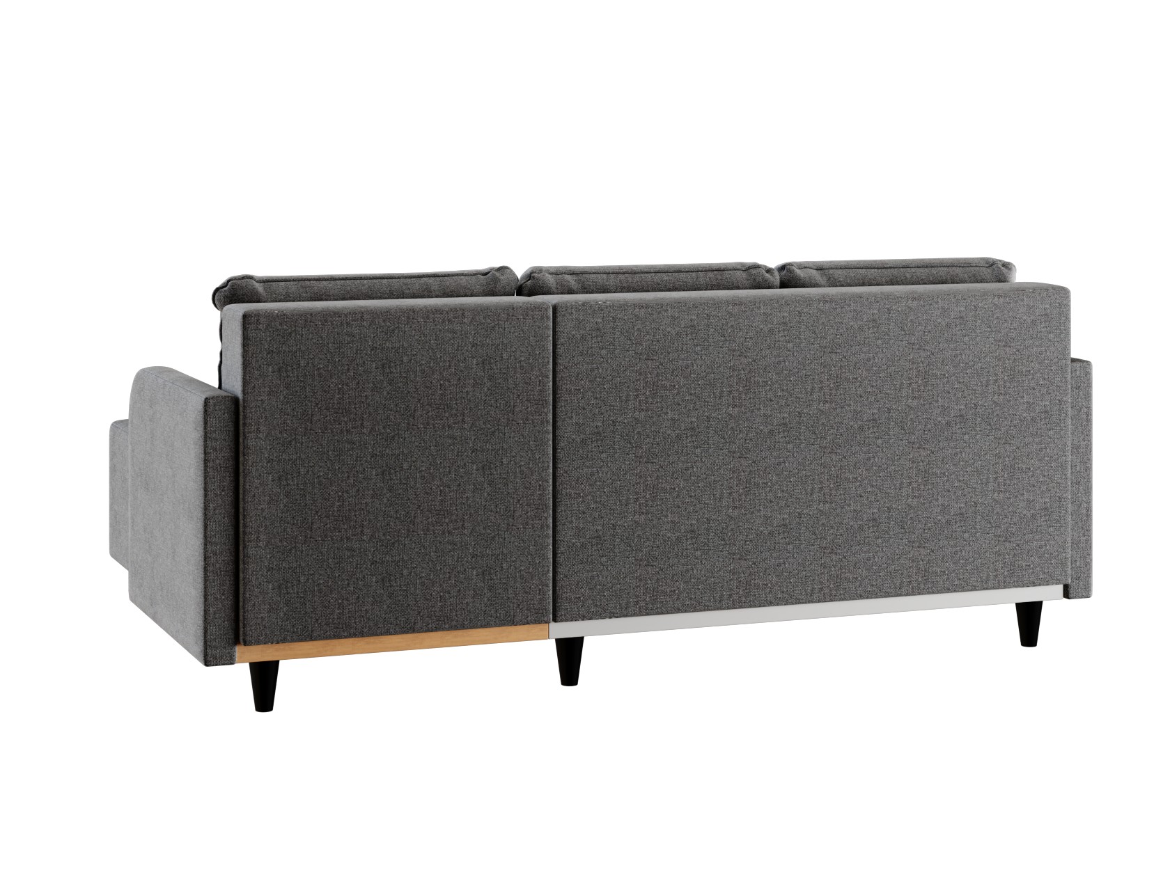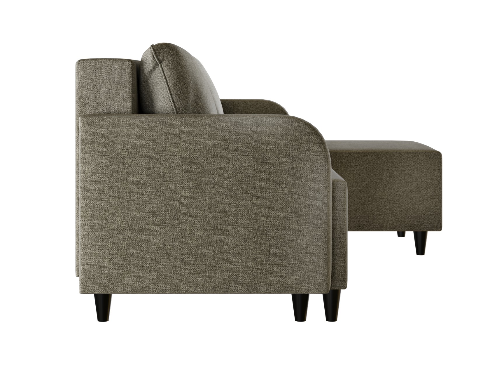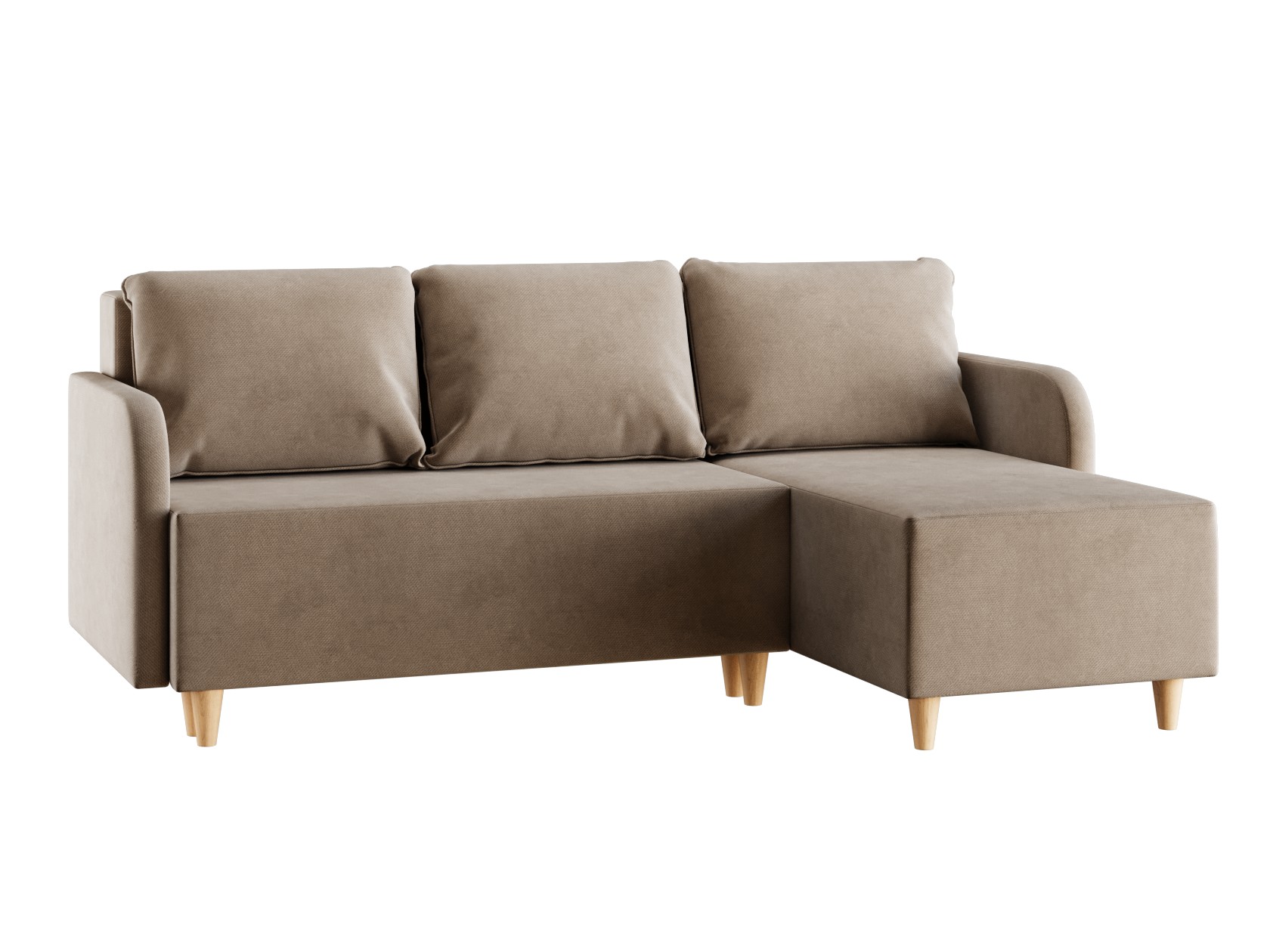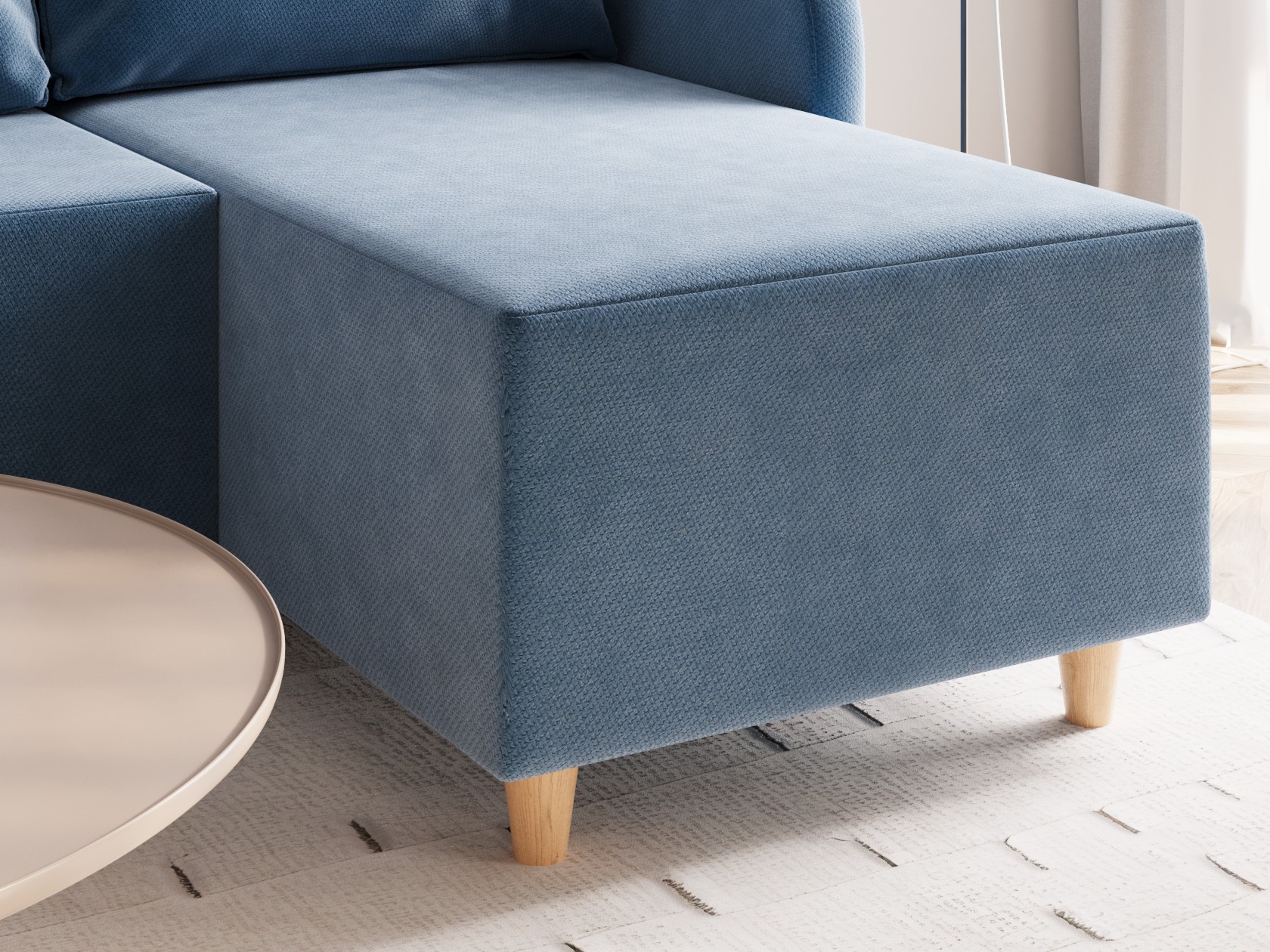 Дизайн углового дивана Рейн вдохновлен скандинавским стилем, для которого характерны лаконичность, функциональность и комфорт. Модель отлично смотрится в небольшой гостиной. Узкие подлокотники экономят пространство, а высокие деревянные ножки придают конструкции визуальную легкость. Спинка выполнена в обивочной ткани, поэтому диван подходит для зонирования комнаты.