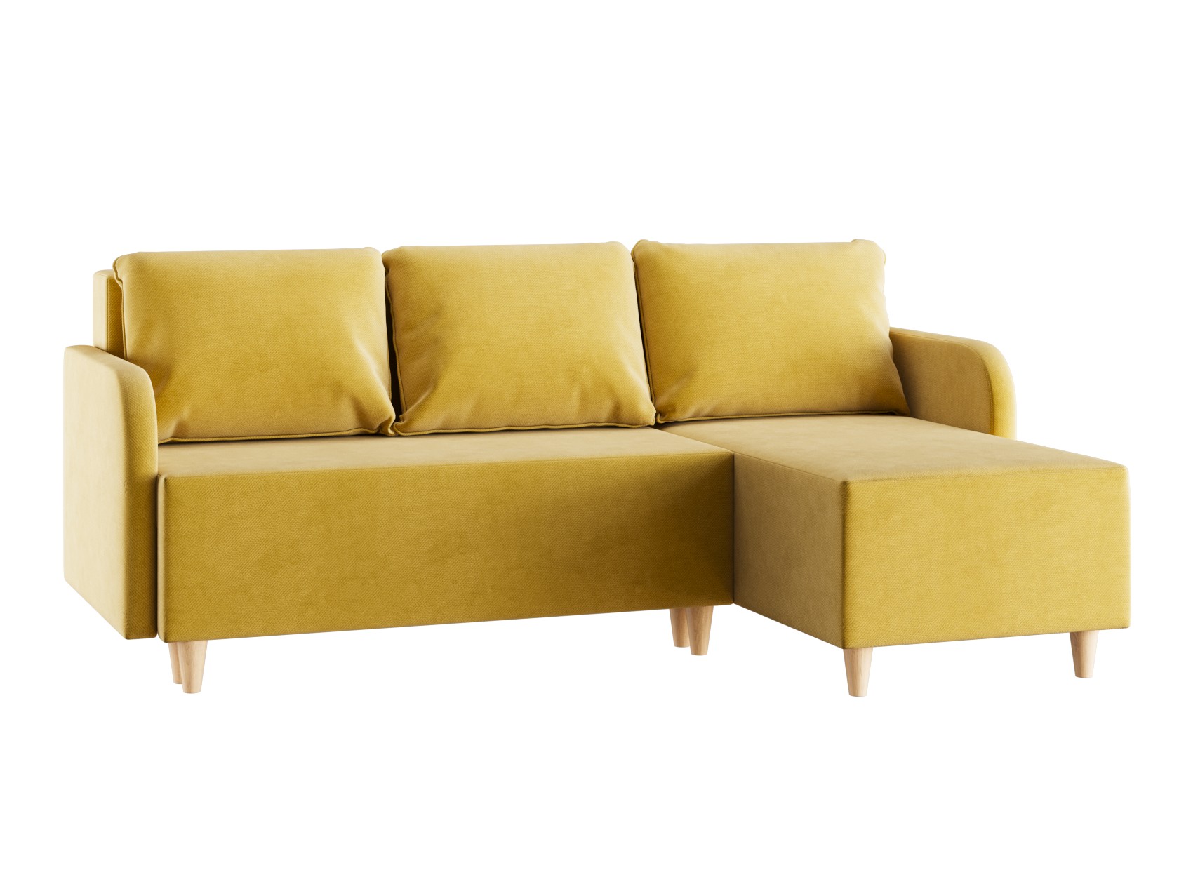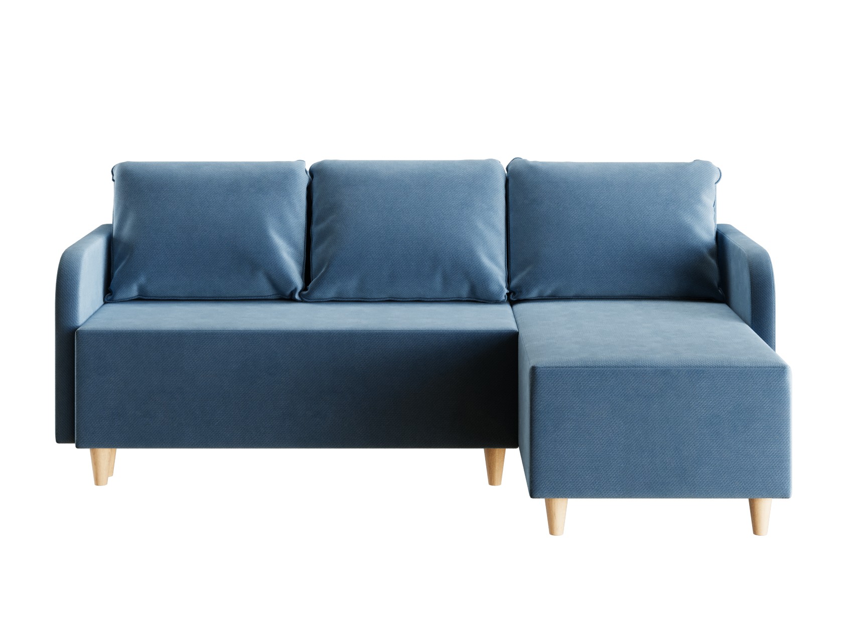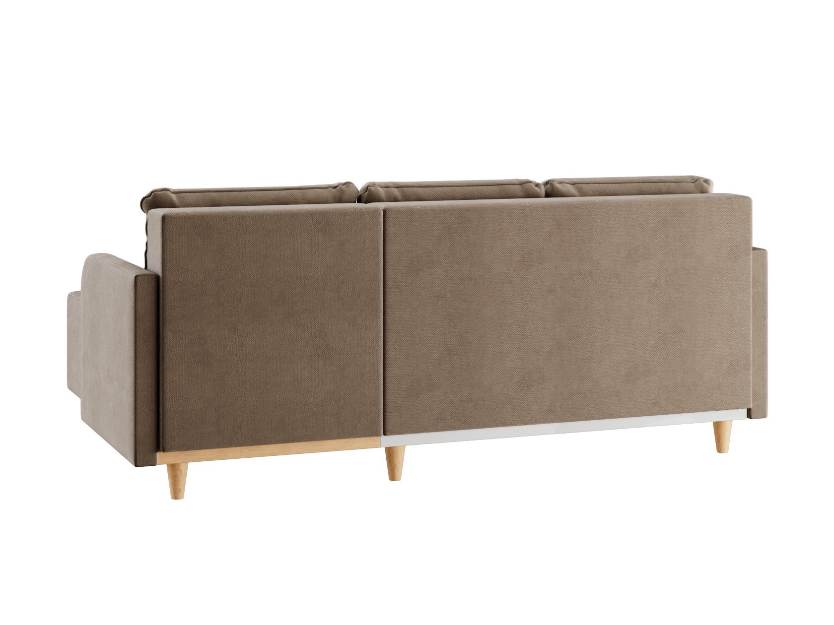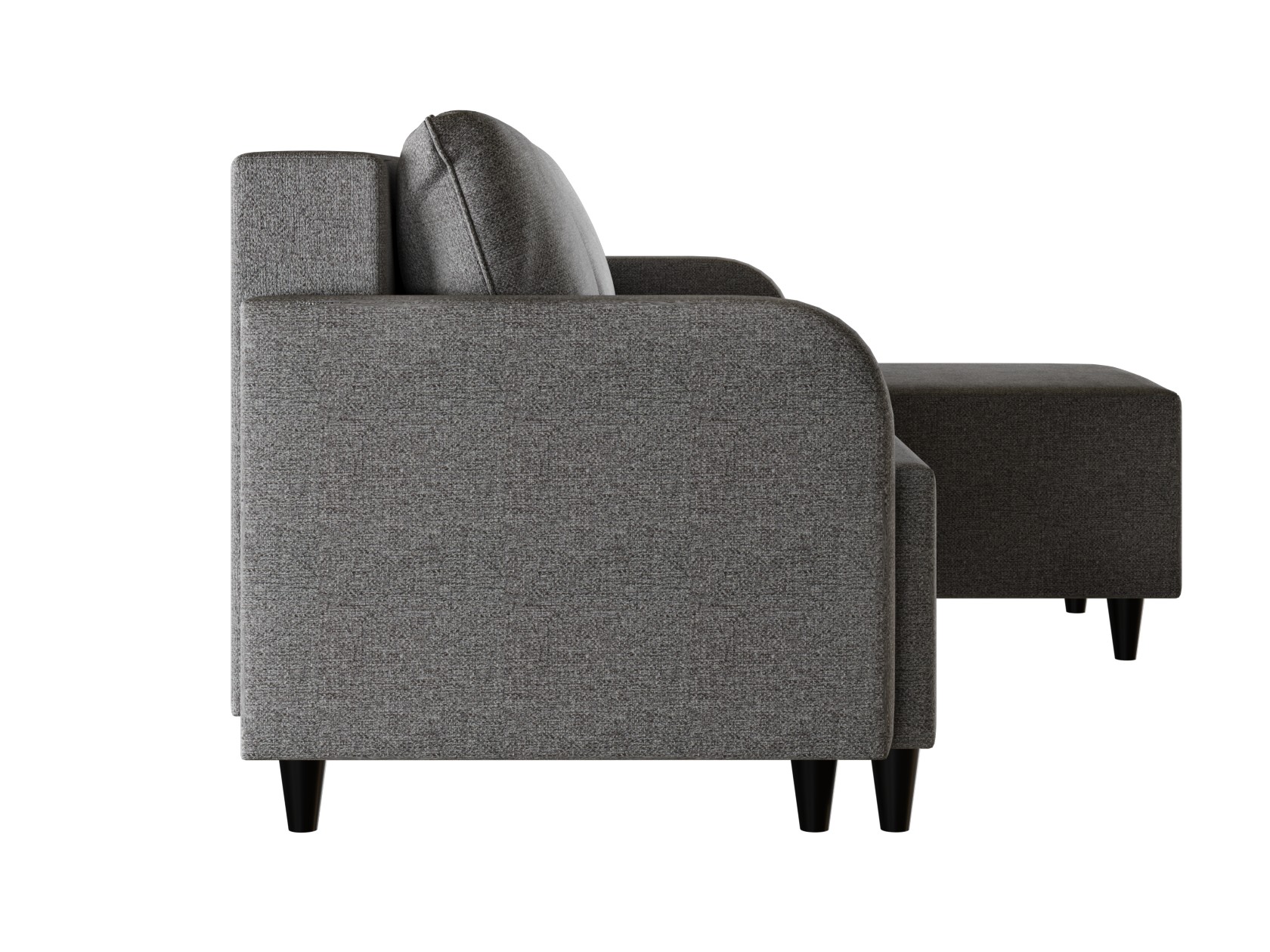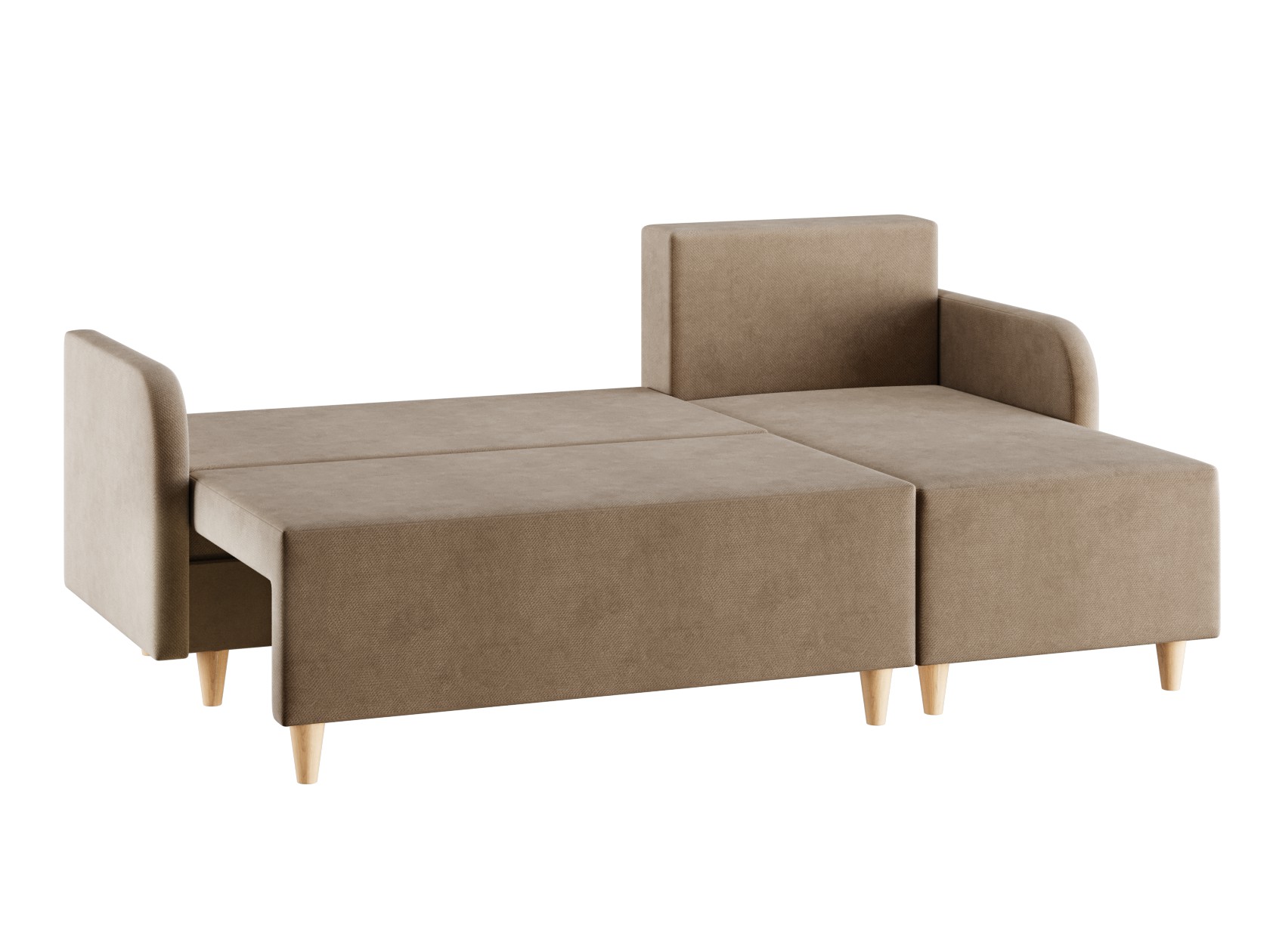 Дизайн углового дивана Рейн вдохновлен скандинавским стилем, для которого характерны лаконичность, функциональность и комфорт. Модель отлично смотрится в небольшой гостиной. Узкие подлокотники экономят пространство, а высокие деревянные ножки придают конструкции визуальную легкость. Спинка выполнена в обивочной ткани, поэтому диван подходит для зонирования комнаты.