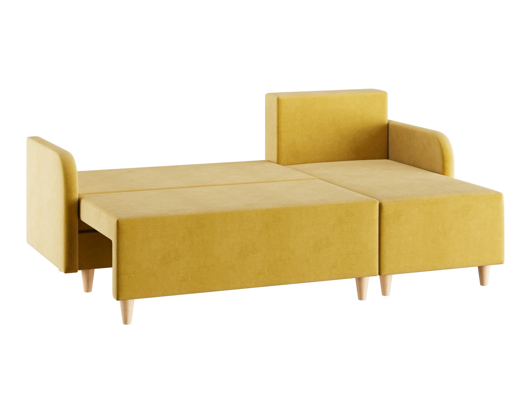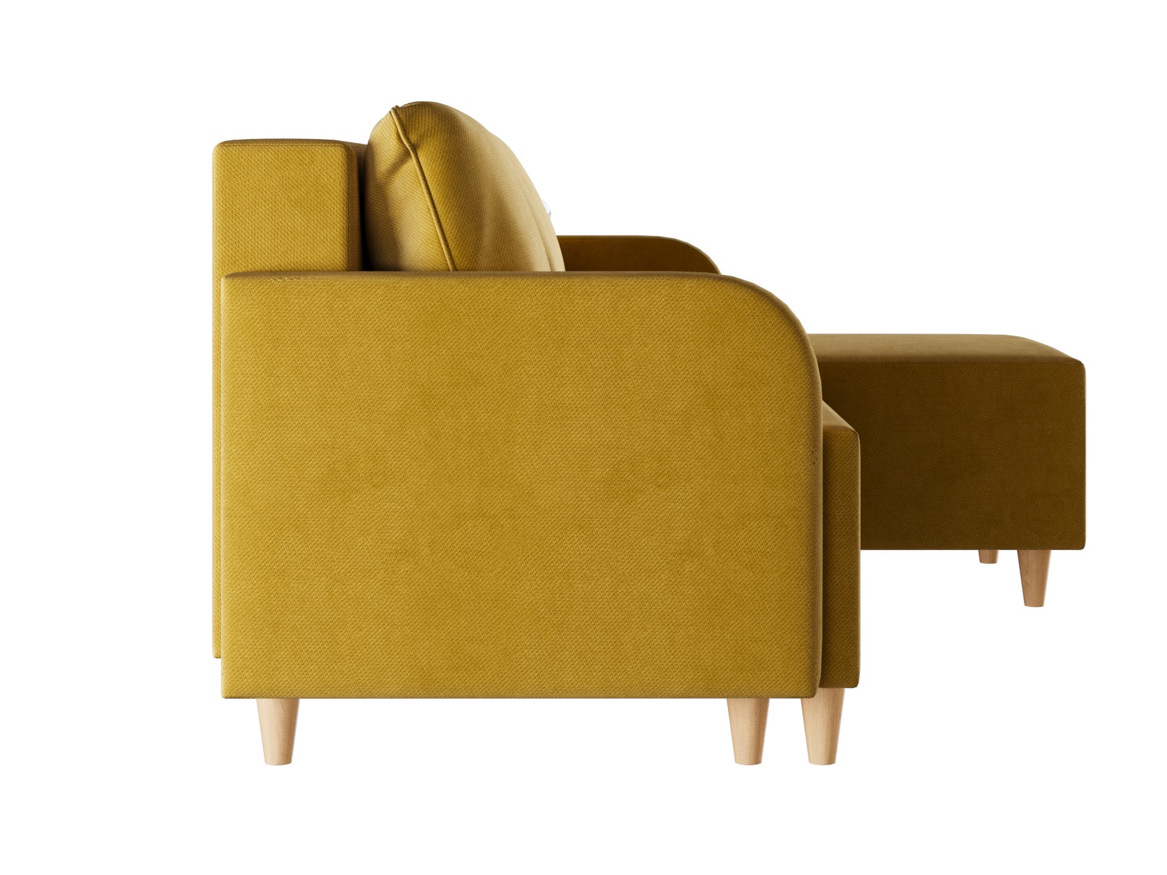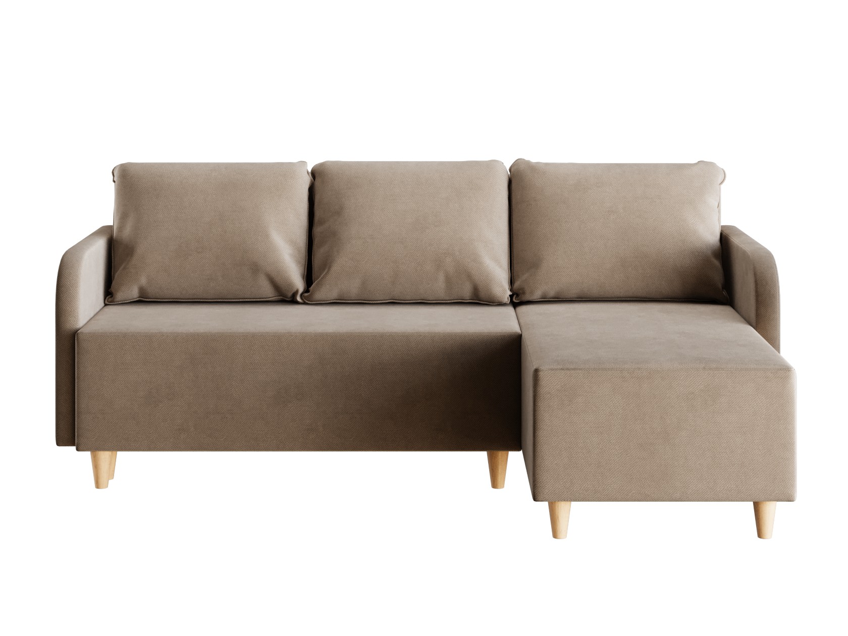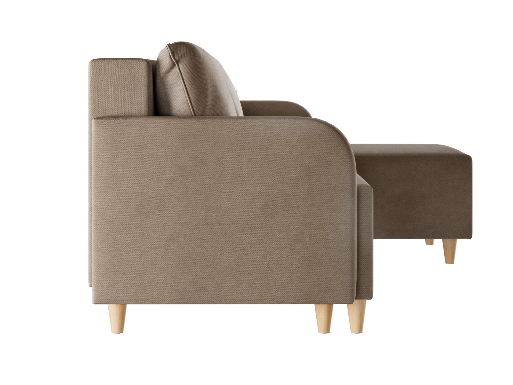 Дизайн углового дивана Рейн вдохновлен скандинавским стилем, для которого характерны лаконичность, функциональность и комфорт. Модель отлично смотрится в небольшой гостиной. Узкие подлокотники экономят пространство, а высокие деревянные ножки придают конструкции визуальную легкость. Спинка выполнена в обивочной ткани, поэтому диван подходит для зонирования комнаты.