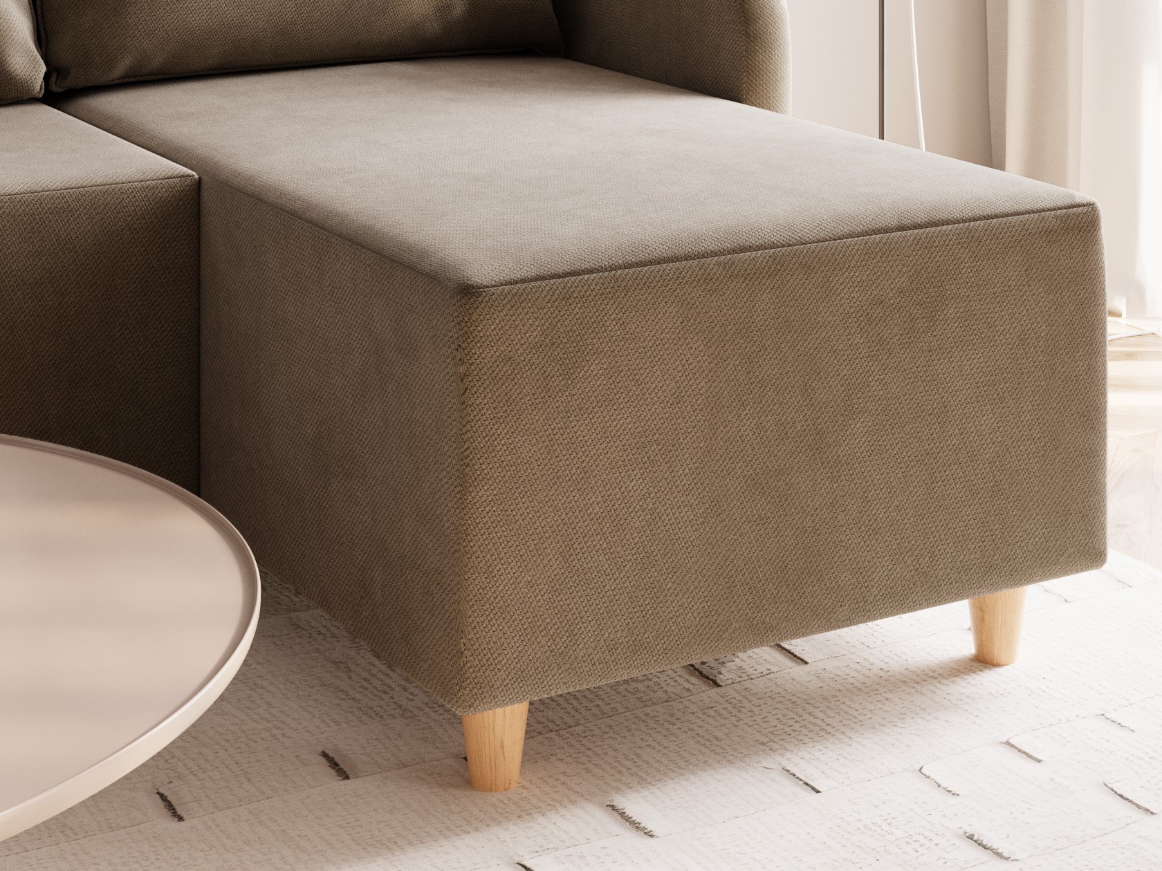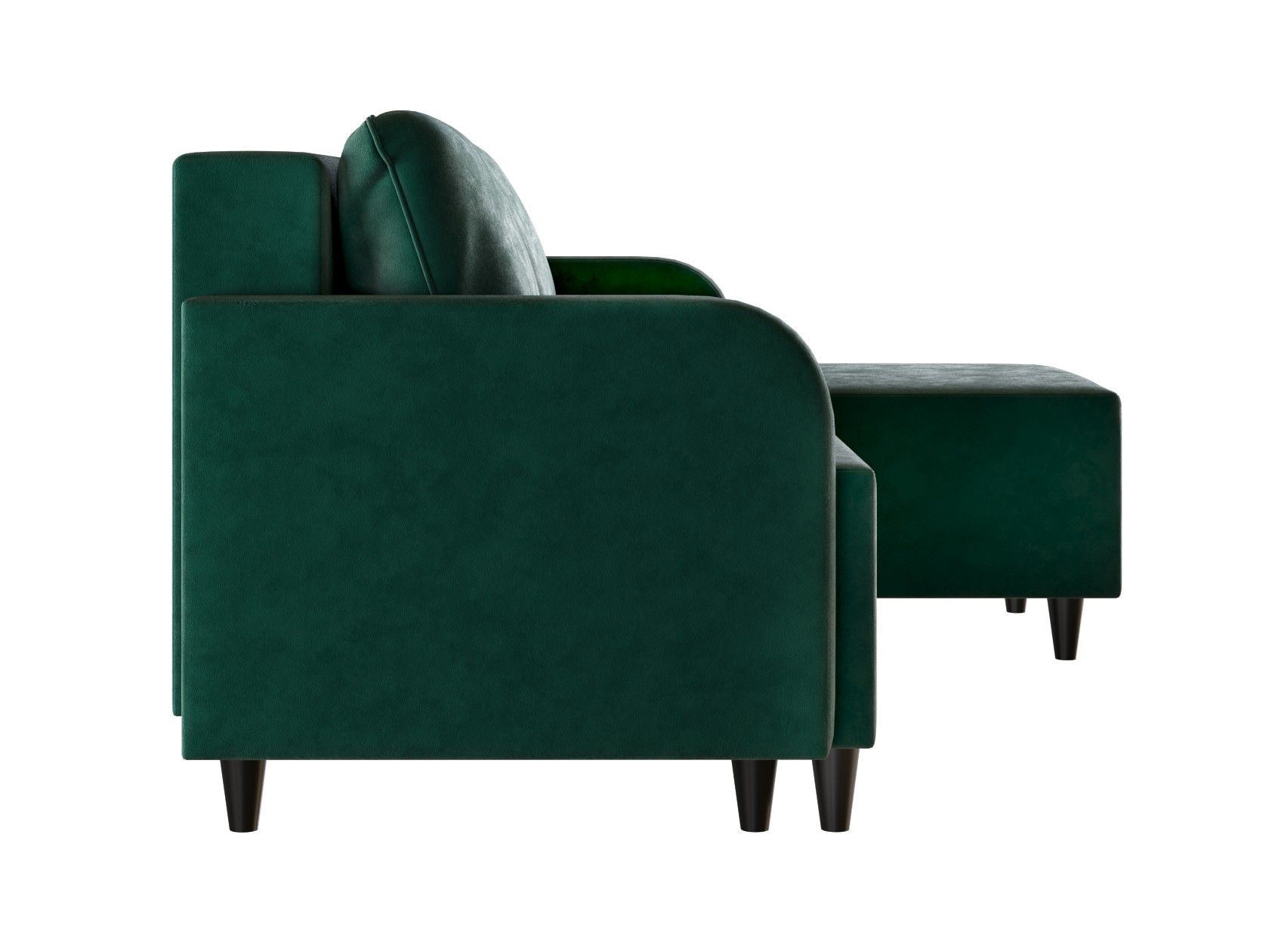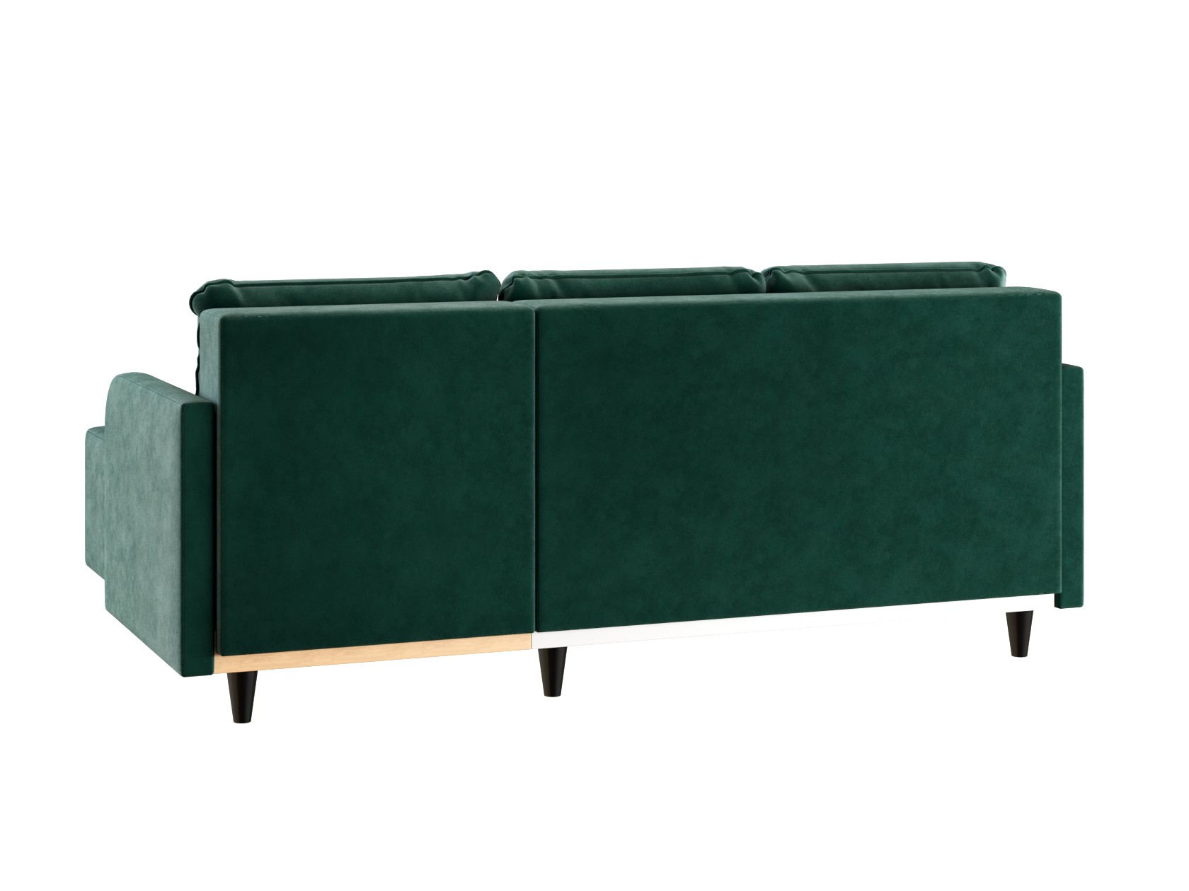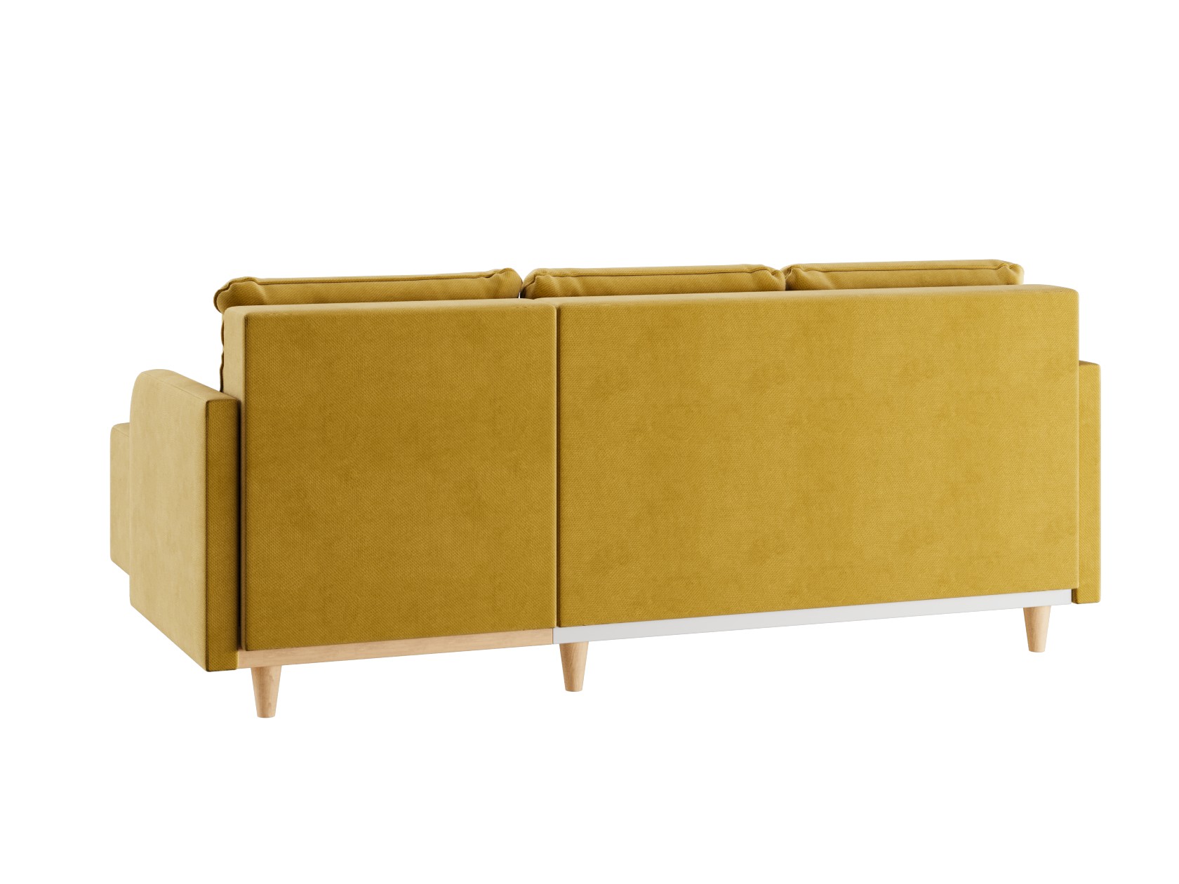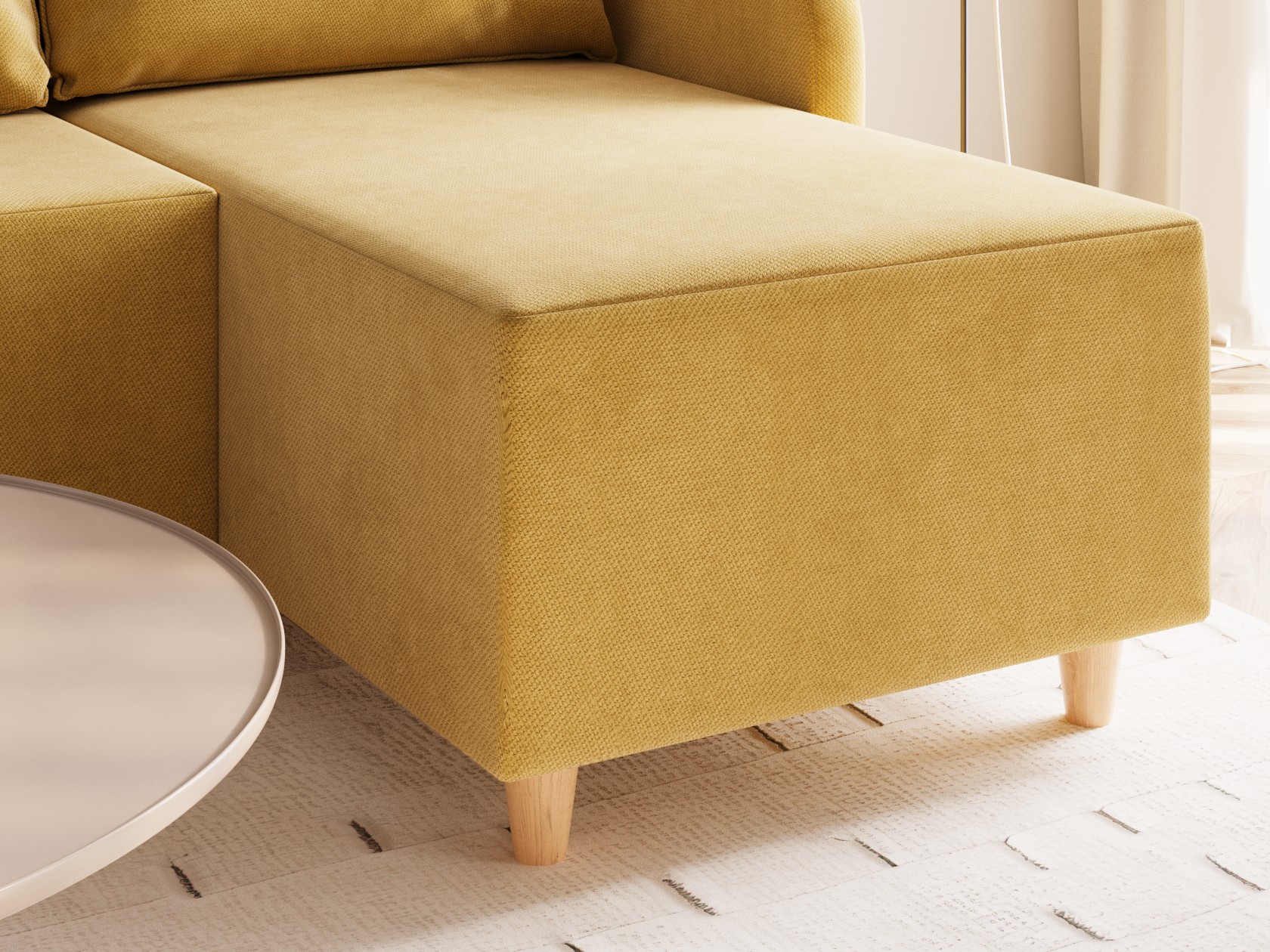 Дизайн углового дивана Рейн вдохновлен скандинавским стилем, для которого характерны лаконичность, функциональность и комфорт. Модель отлично смотрится в небольшой гостиной. Узкие подлокотники экономят пространство, а высокие деревянные ножки придают конструкции визуальную легкость. Спинка выполнена в обивочной ткани, поэтому диван подходит для зонирования комнаты.