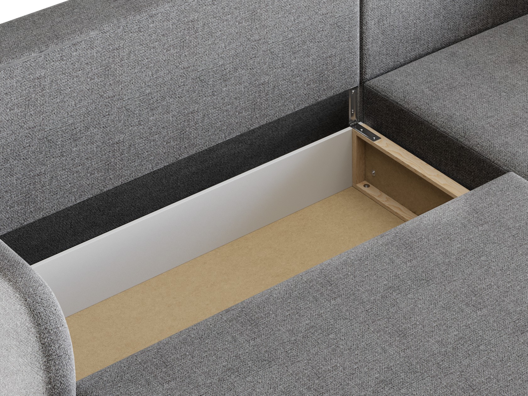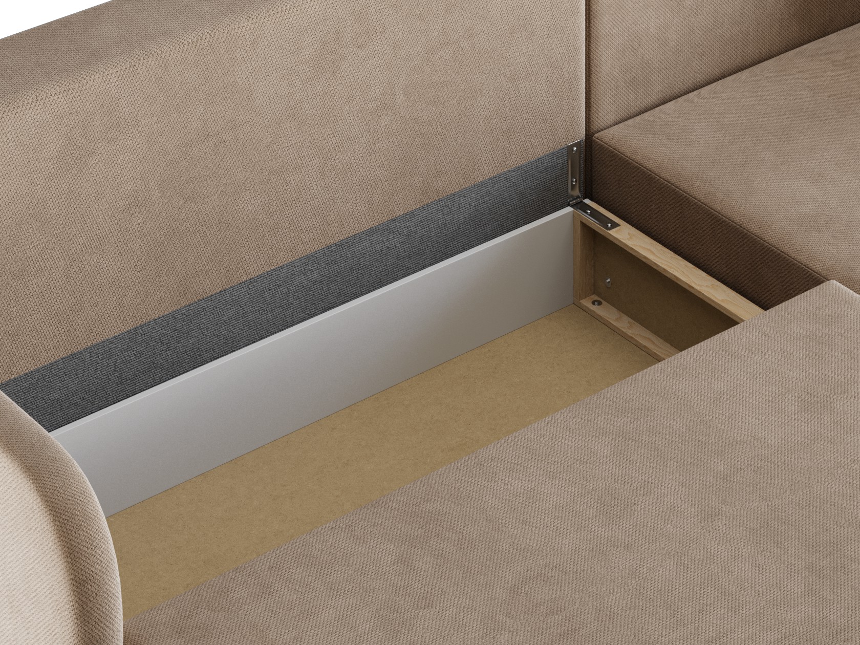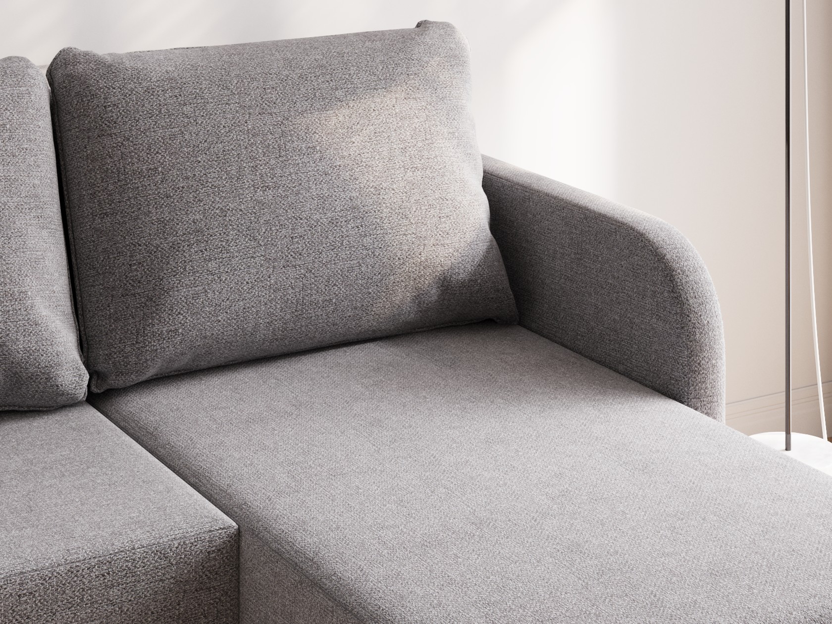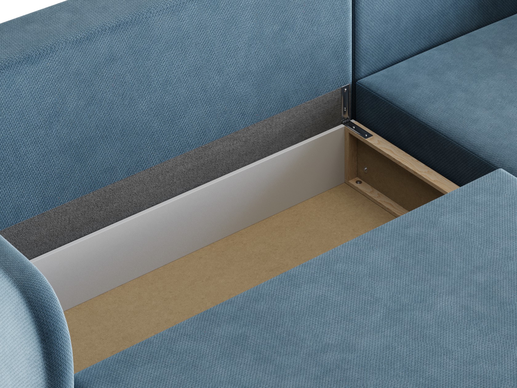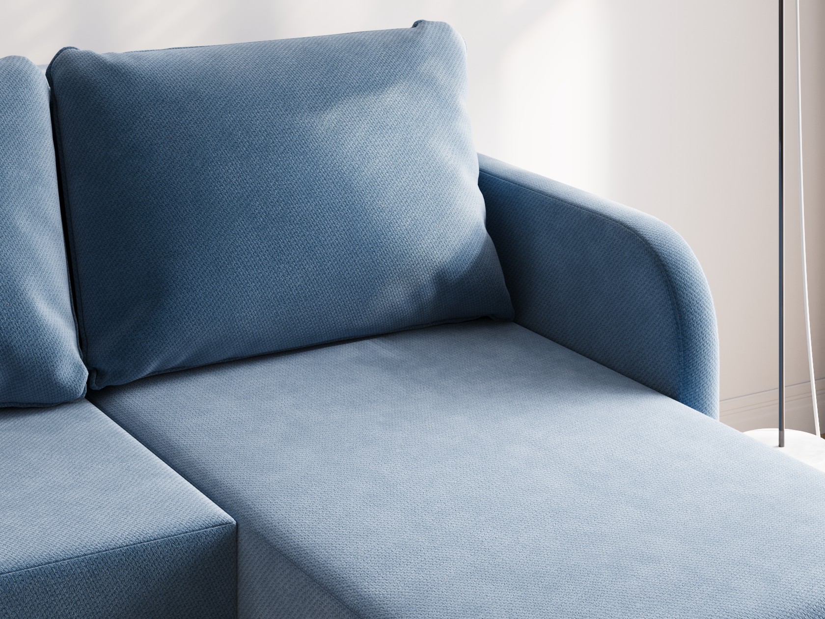 Мягкие подушки и угловая секция позволяют удобно расположиться во время отдыха. При необходимости модель легко трансформируется в спальное место без неудобных стыков и перепадов высоты. Небольшой бельевой короб можно использовать для хранения постельных принадлежностей.