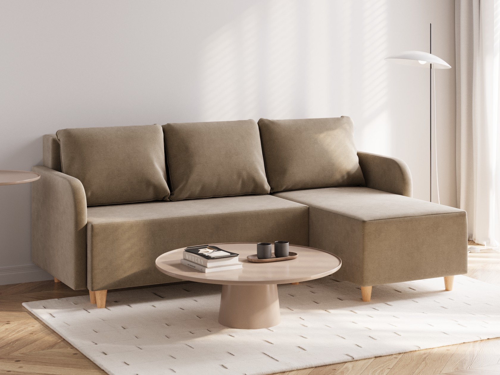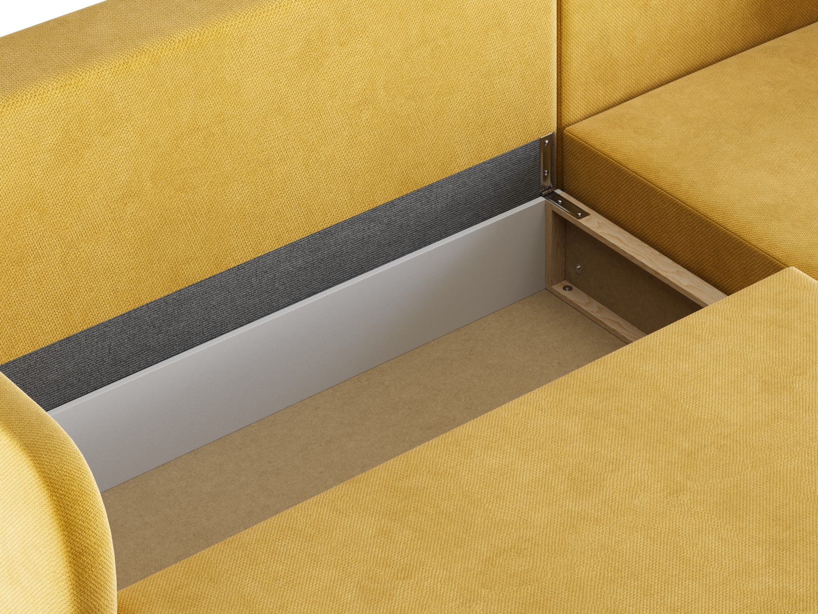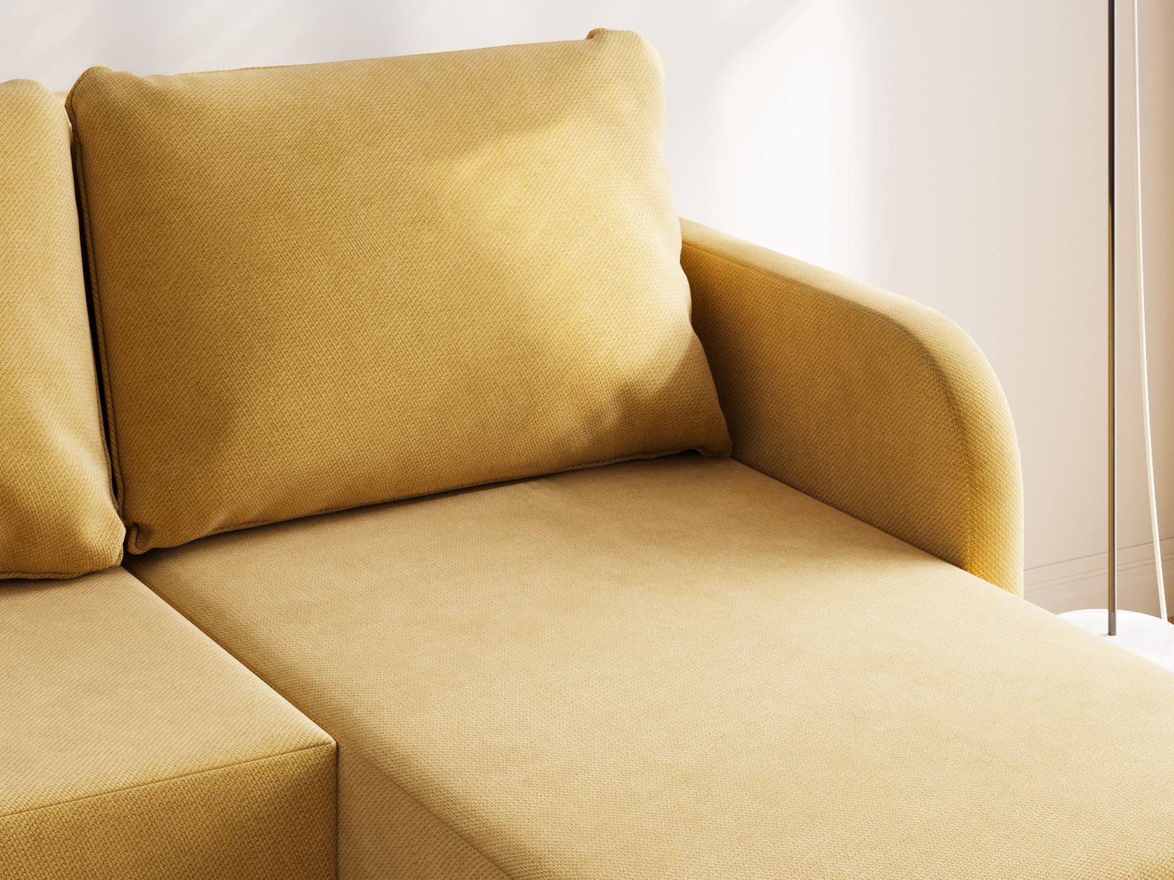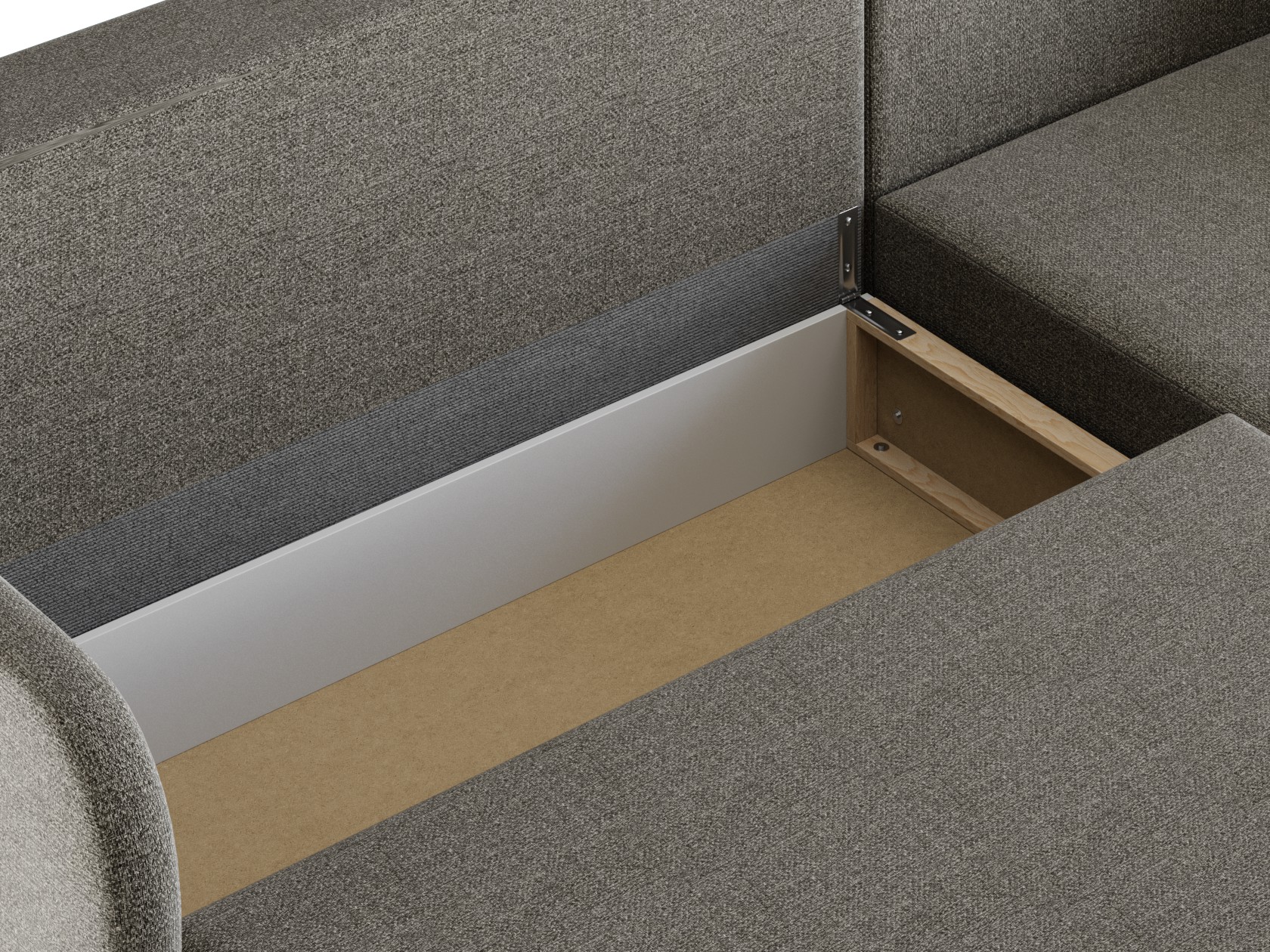 Мягкие подушки и угловая секция позволяют удобно расположиться во время отдыха. При необходимости модель легко трансформируется в спальное место без неудобных стыков и перепадов высоты. Небольшой бельевой короб можно использовать для хранения постельных принадлежностей.