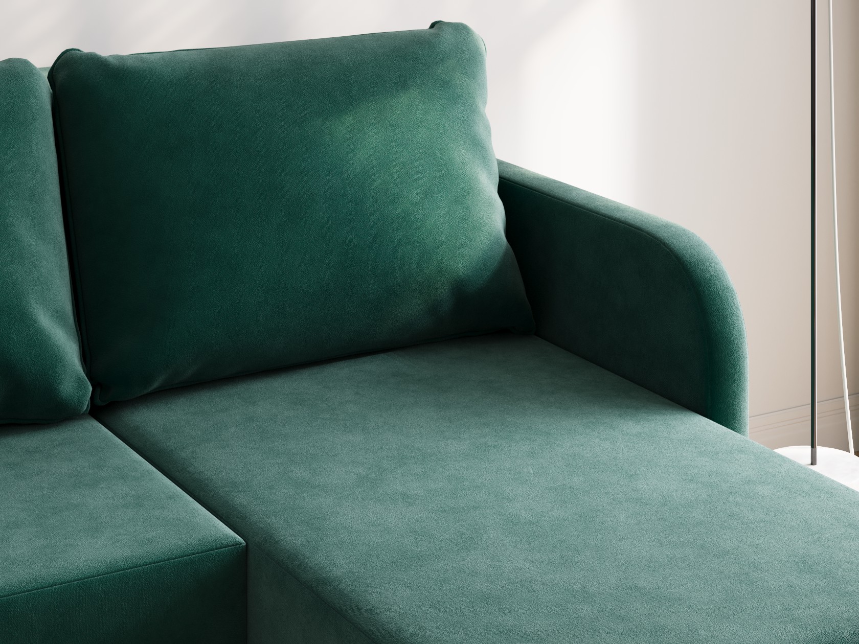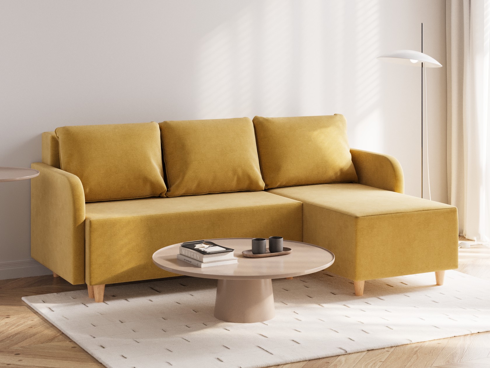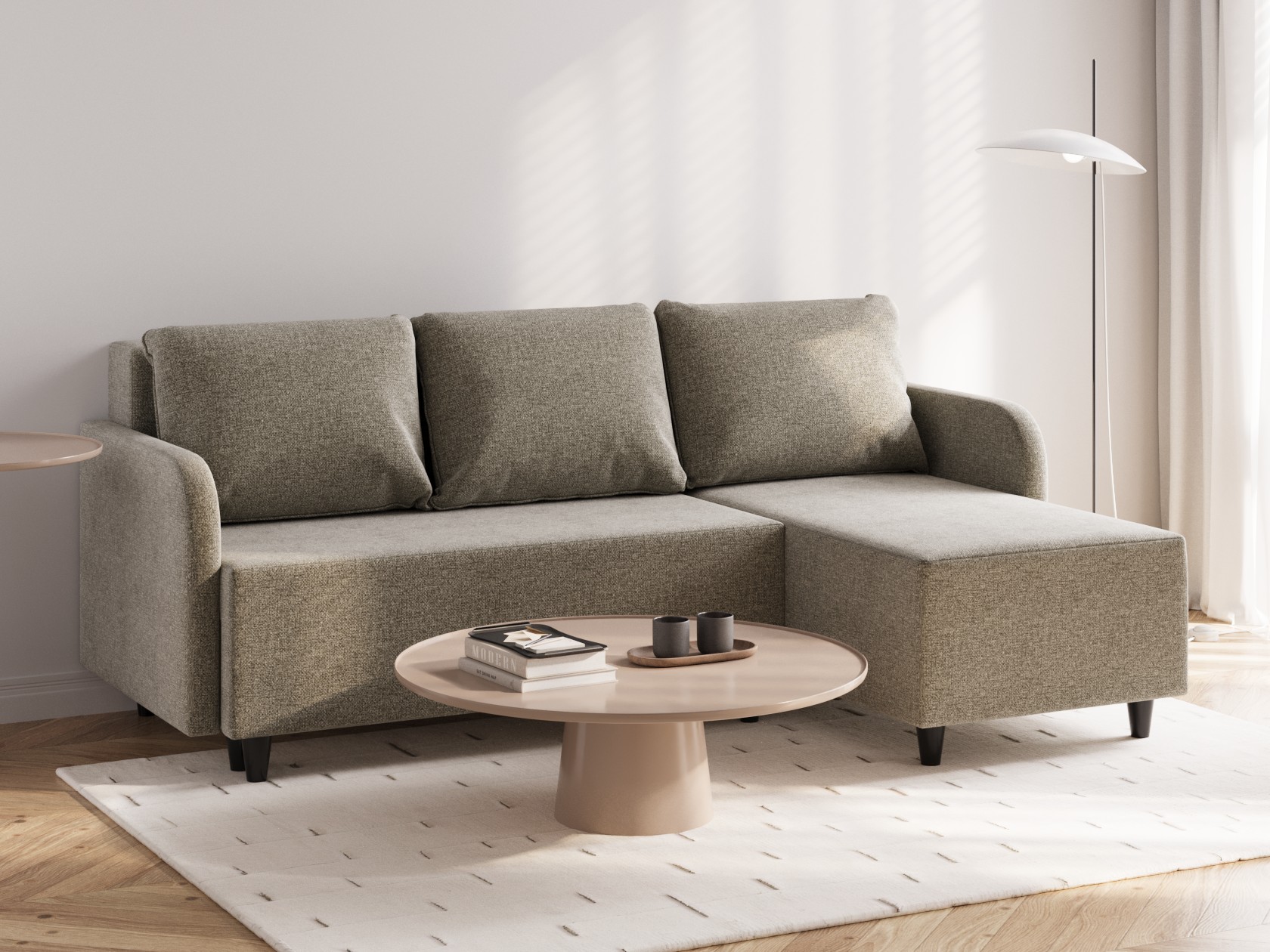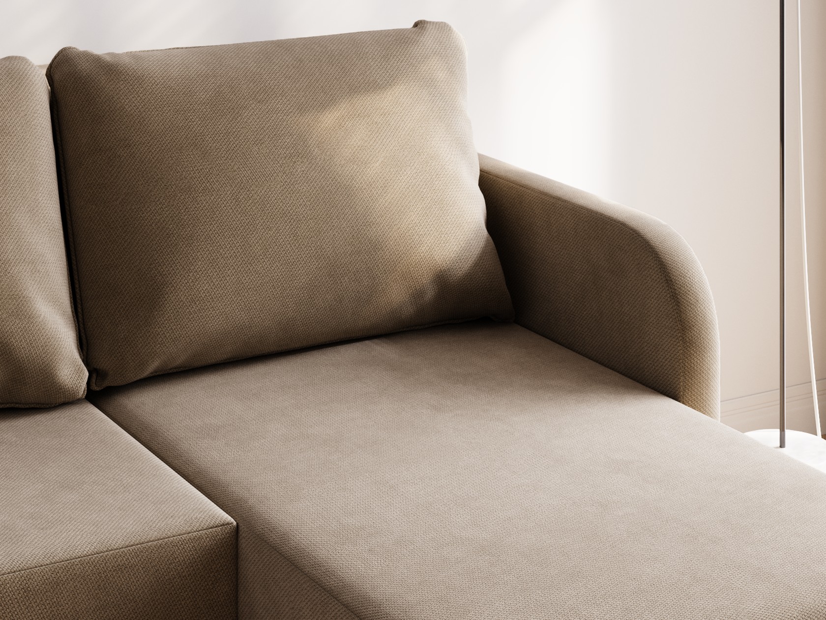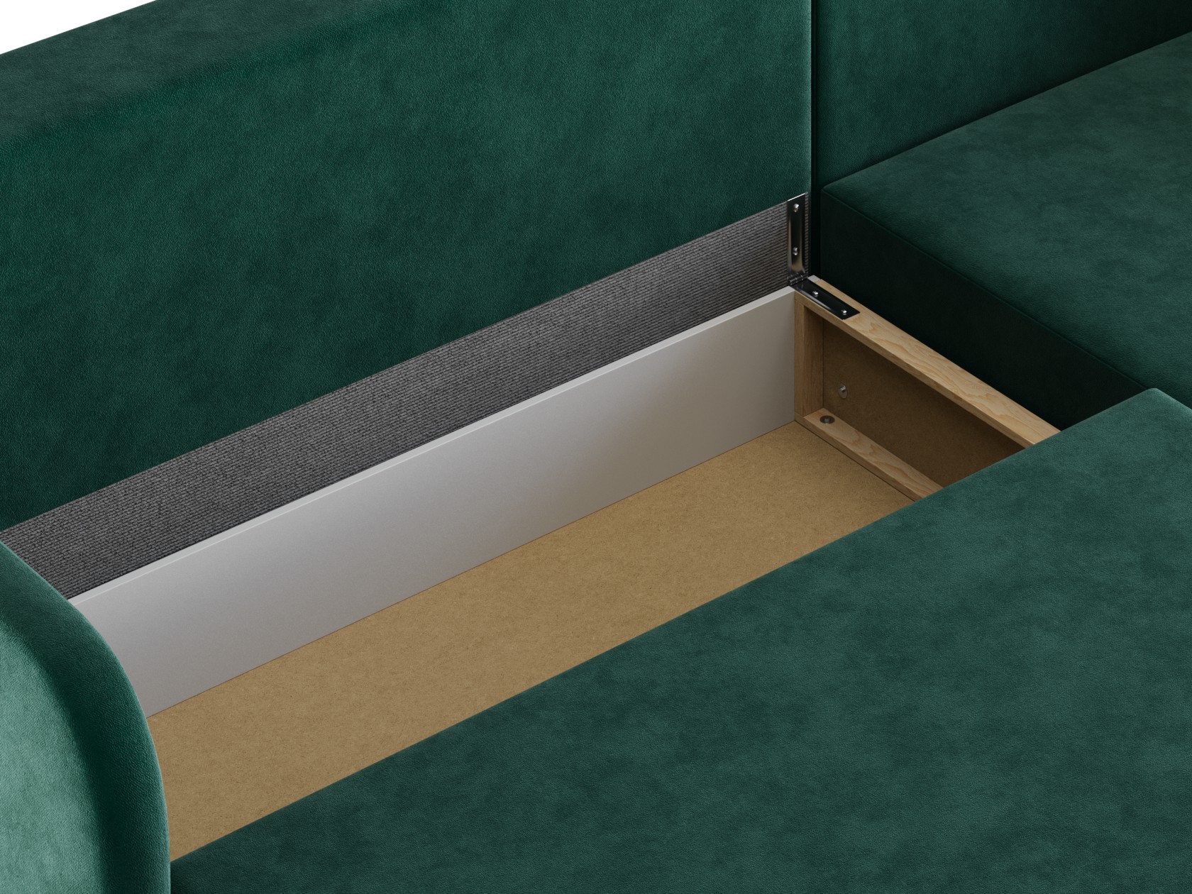 Мягкие подушки и угловая секция позволяют удобно расположиться во время отдыха. При необходимости модель легко трансформируется в спальное место без неудобных стыков и перепадов высоты. Небольшой бельевой короб можно использовать для хранения постельных принадлежностей.