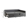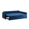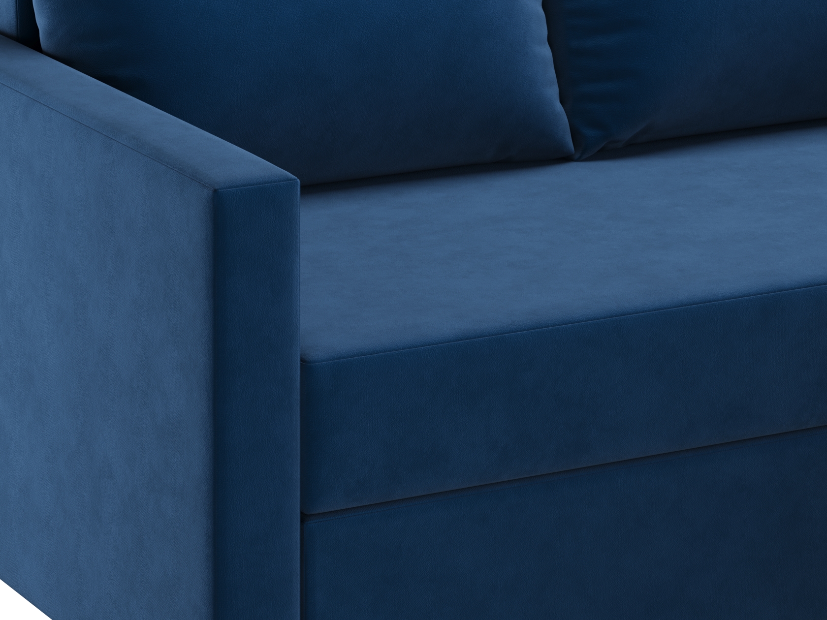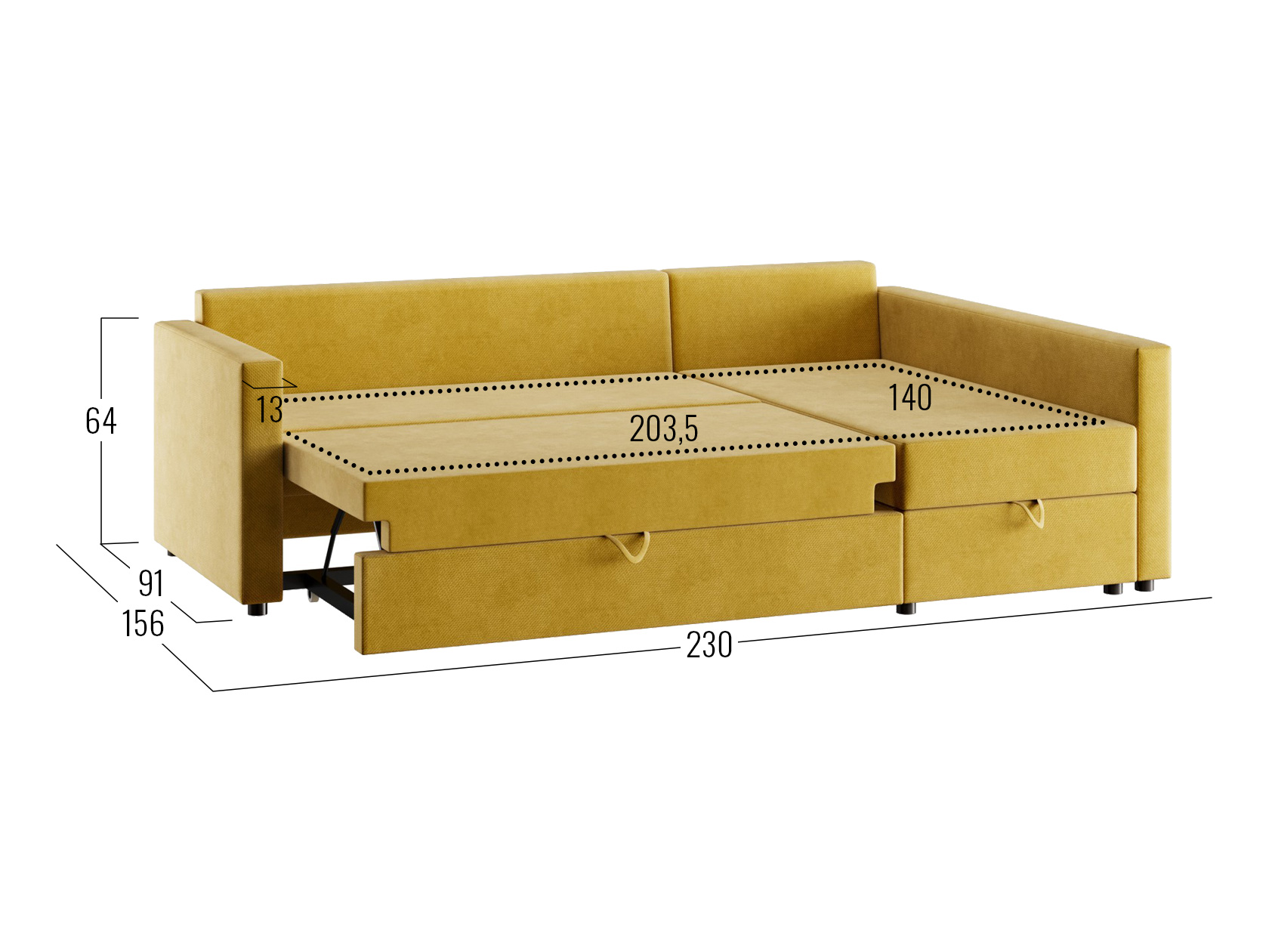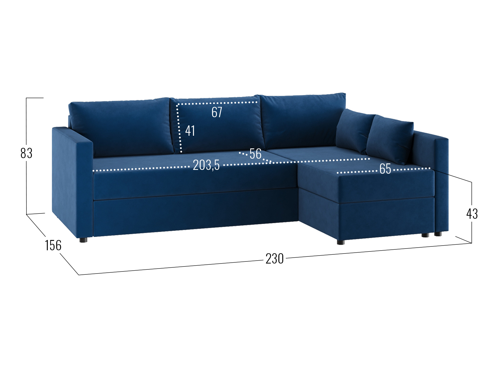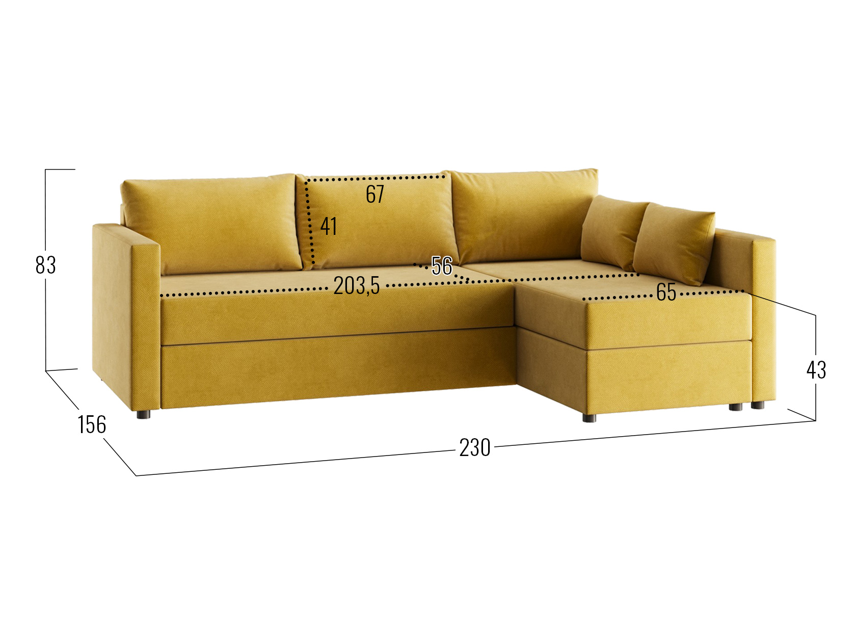 Диван без лишних усилий превращается в ровное спальное место, при этом удлиненный подлокотник делает его еще комфортнее. Небольшой бельевой короб — практичное дополнение модели. Угол можно установить с любой стороны, что позволяет адаптировать диван к любой планировке.