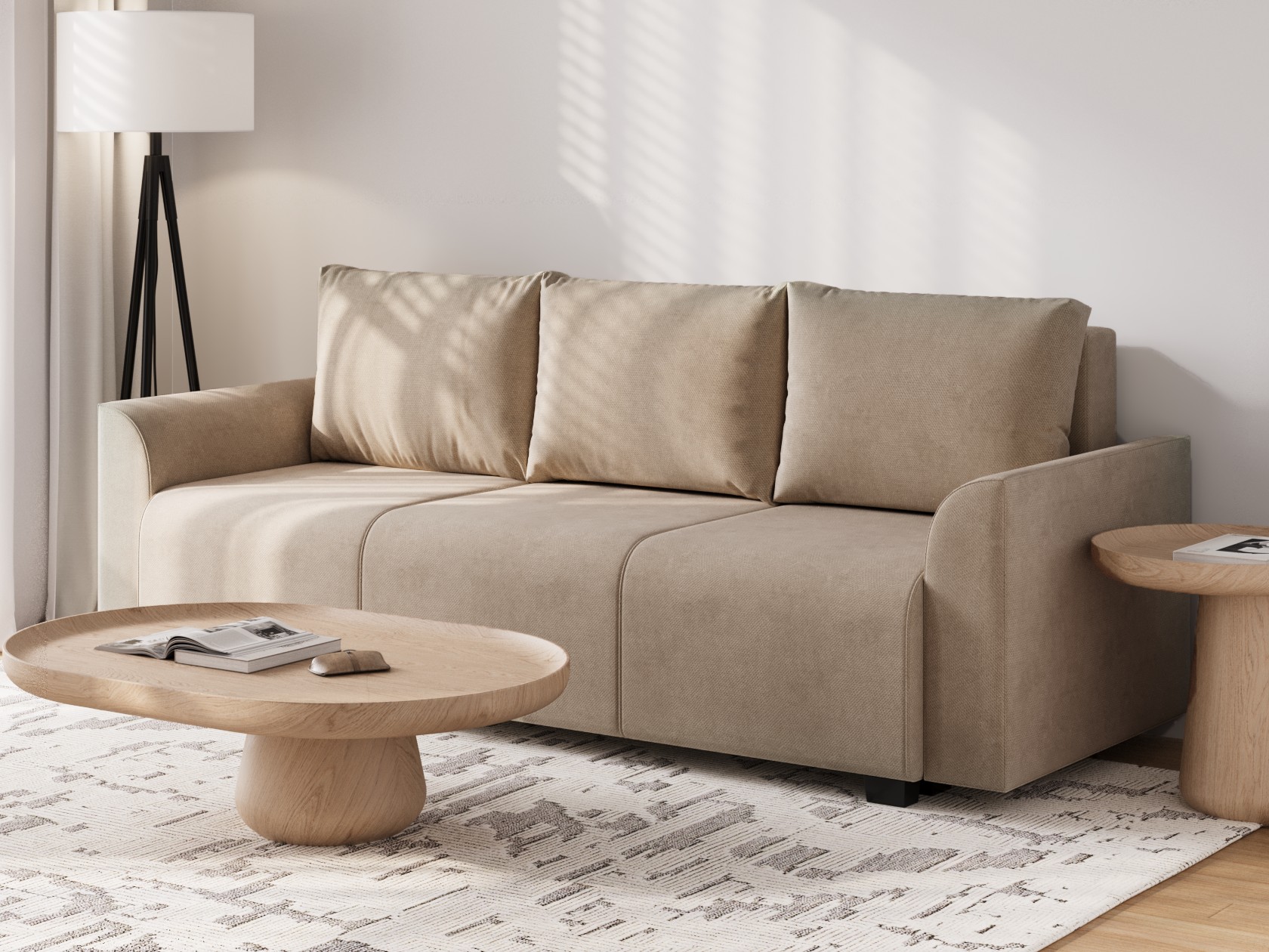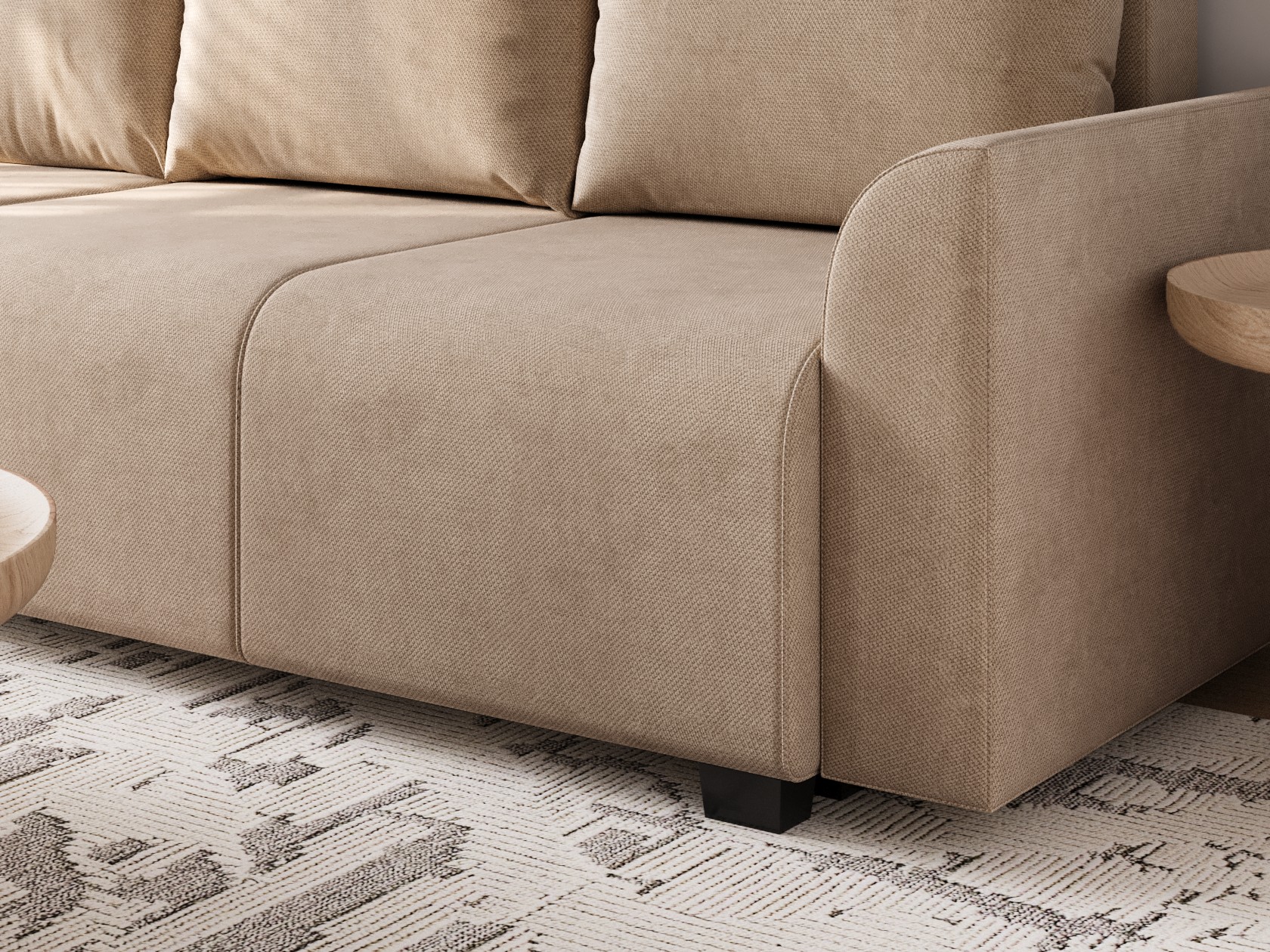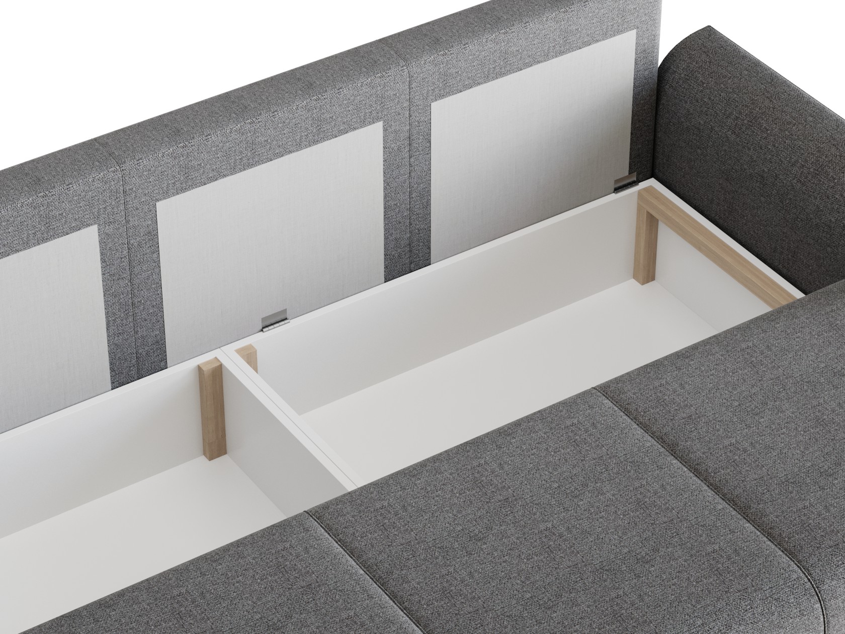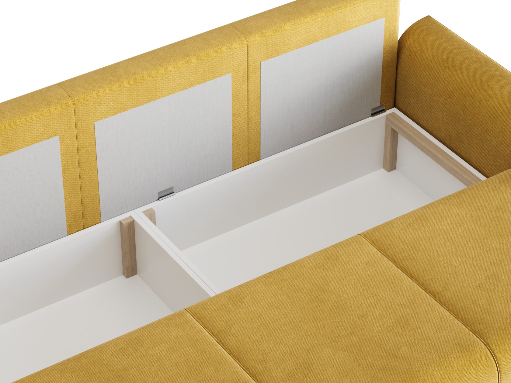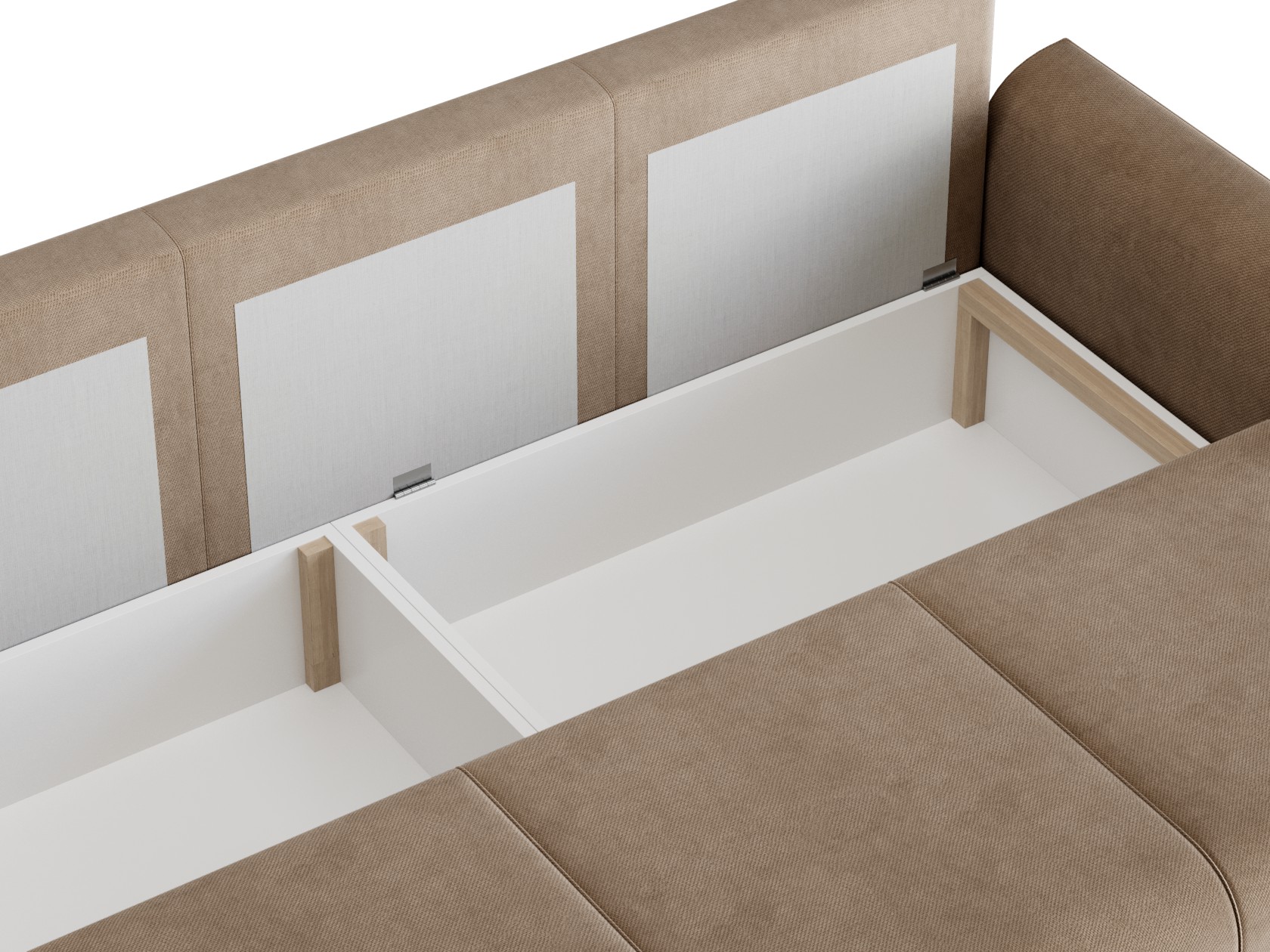 Простой и надежный механизм подходит для ежедневной эксплуатации. В разложенном виде образуется ровное и комфортное место для сна. В объемном бельевом коробе удобно хранить постельные принадлежности или сезонные вещи.