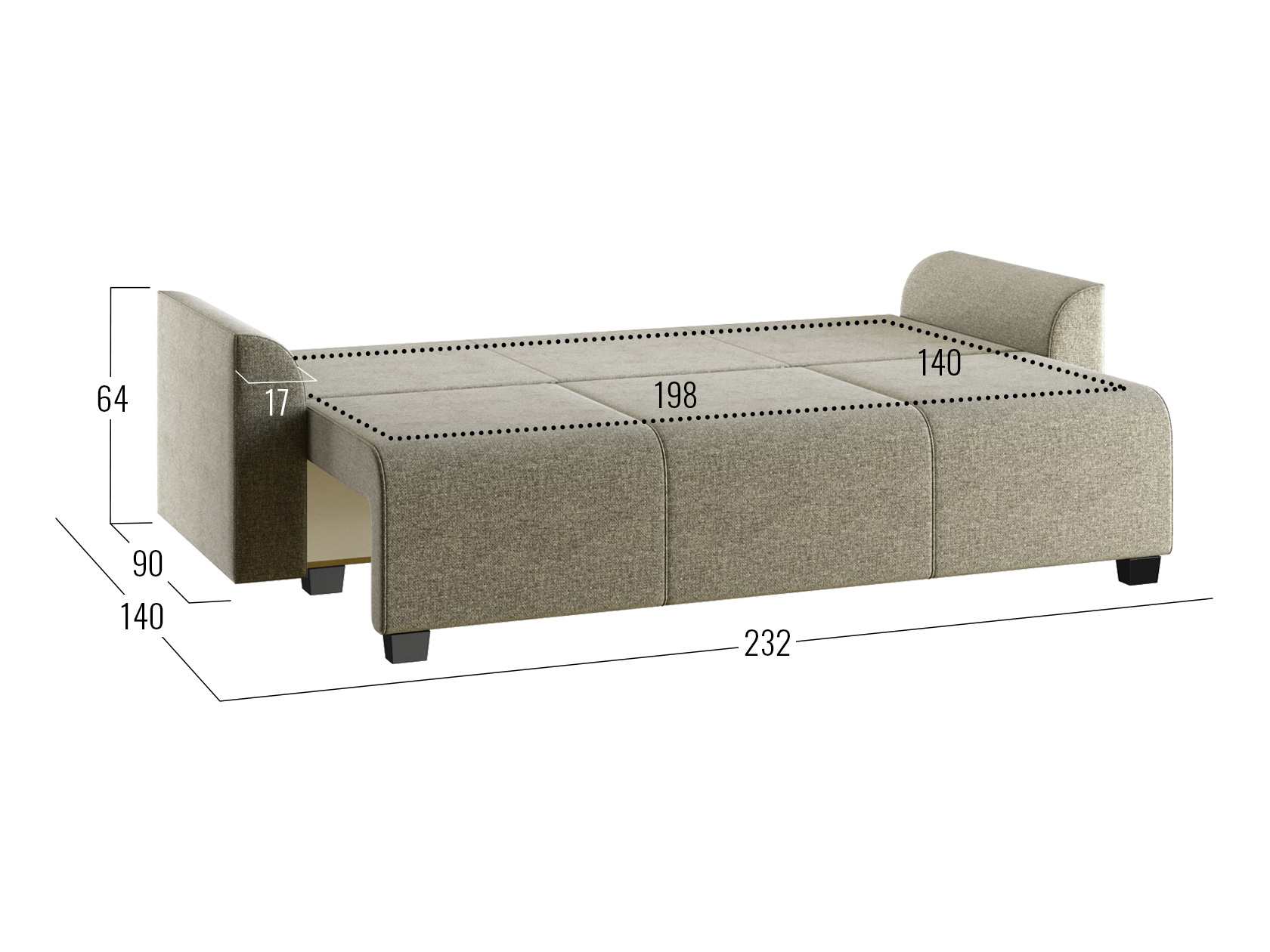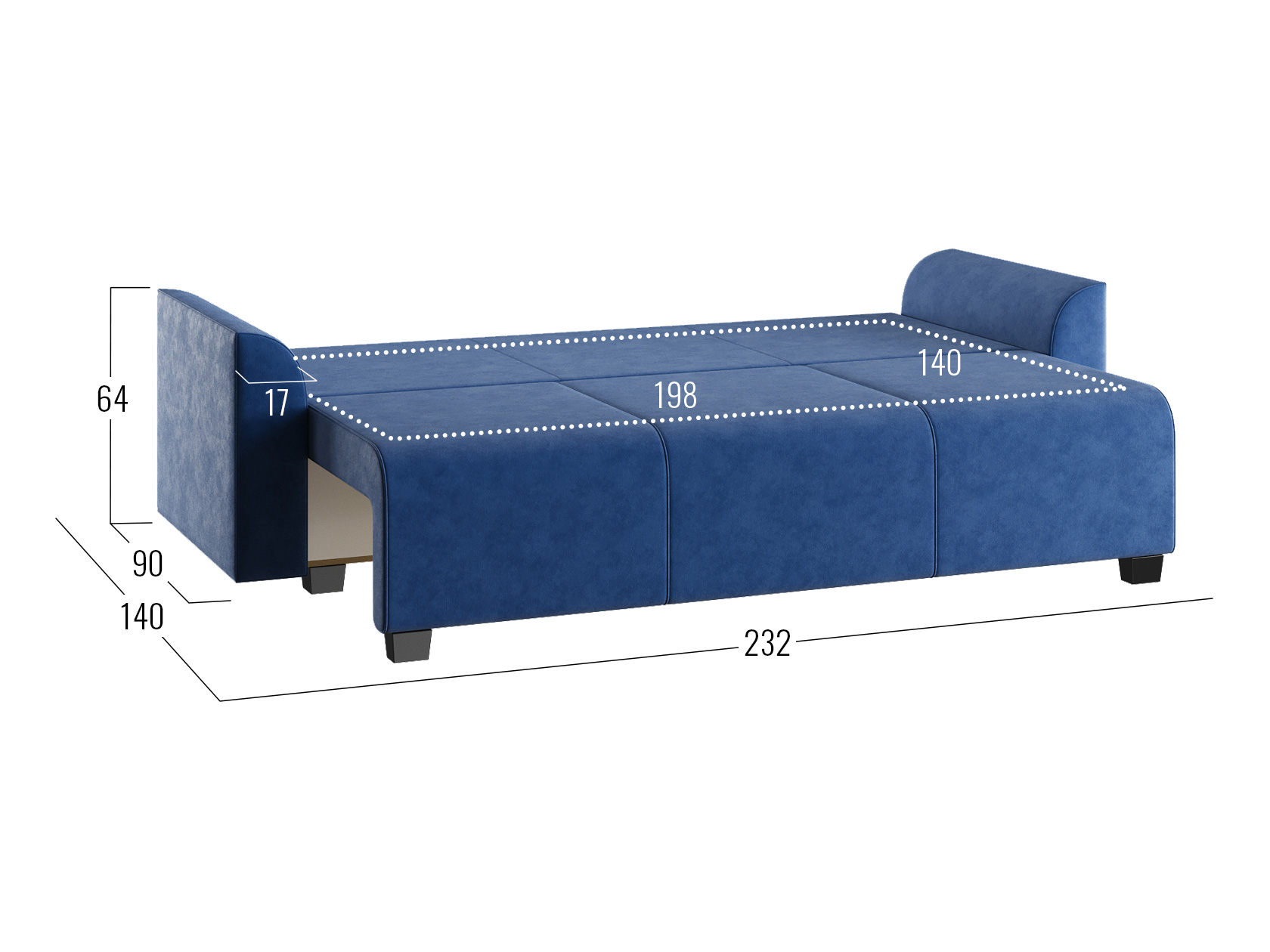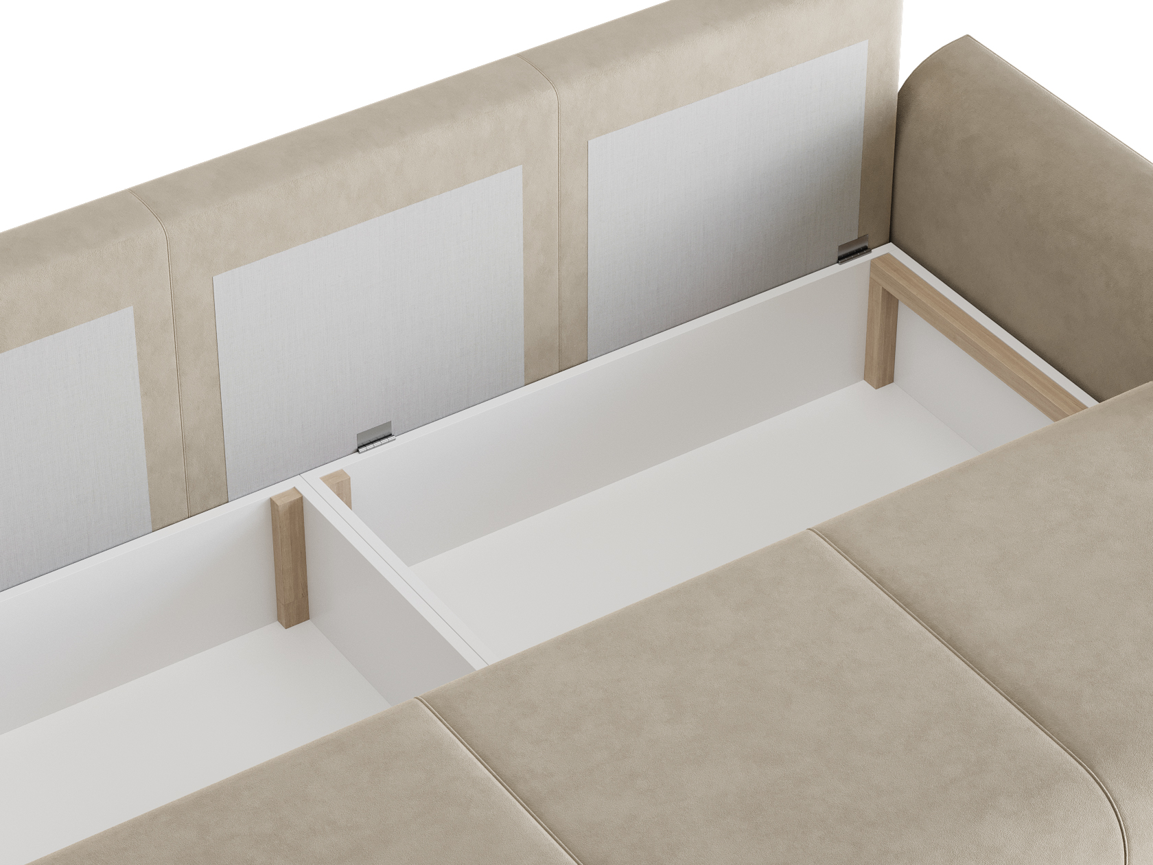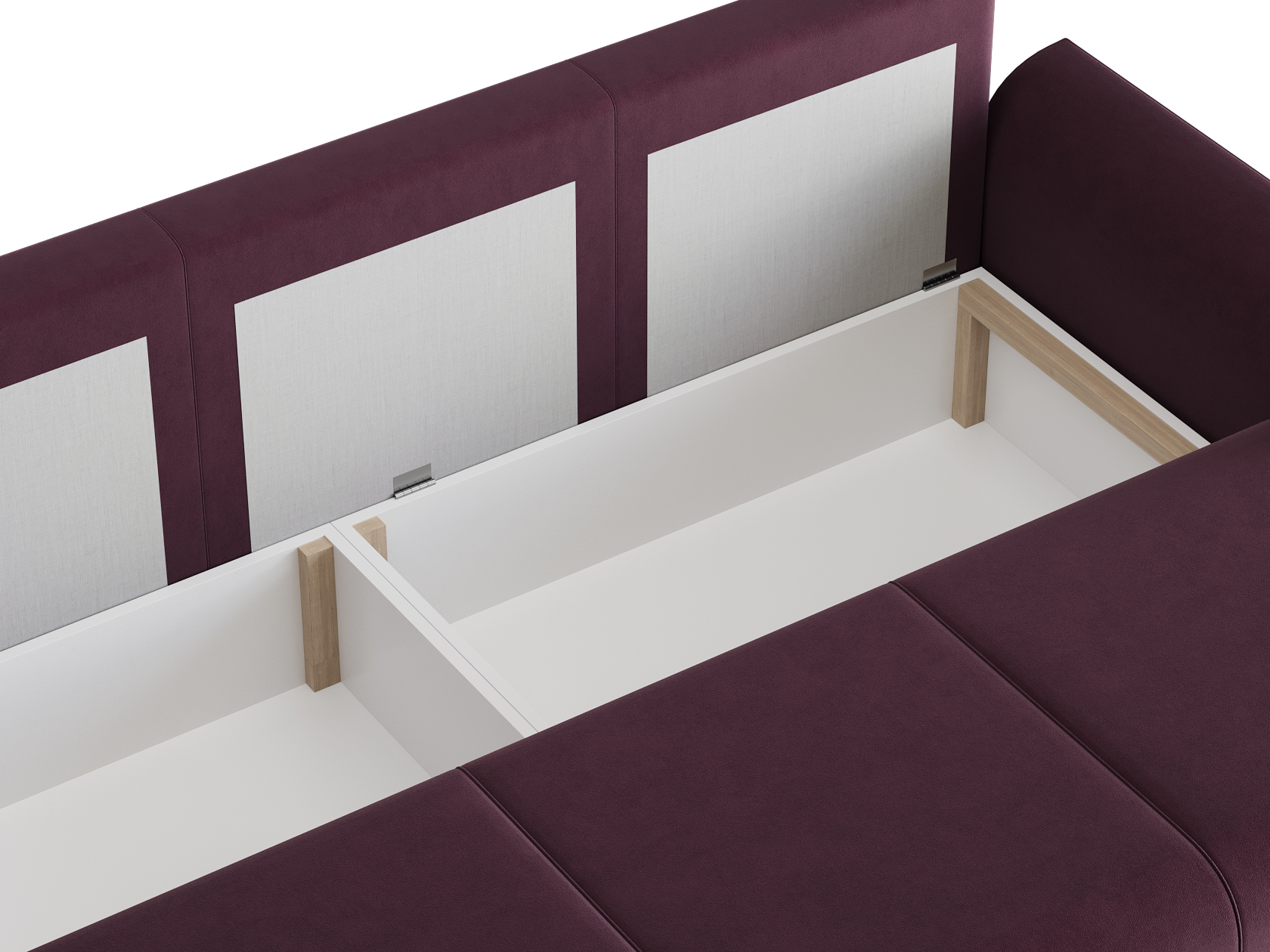 Простой и надежный механизм подходит для ежедневной эксплуатации. В разложенном виде образуется ровное и комфортное место для сна. В объемном бельевом коробе удобно хранить постельные принадлежности или сезонные вещи.
