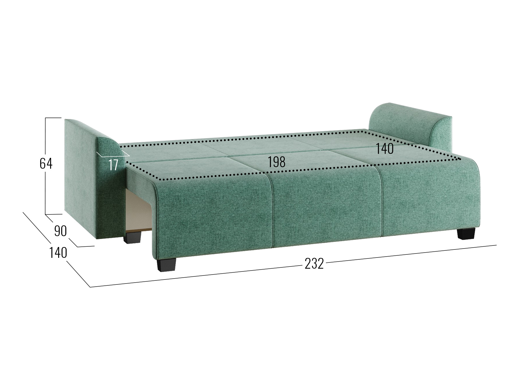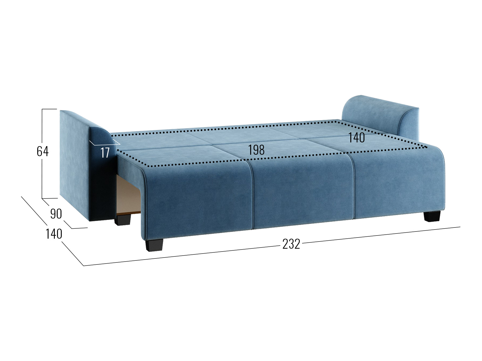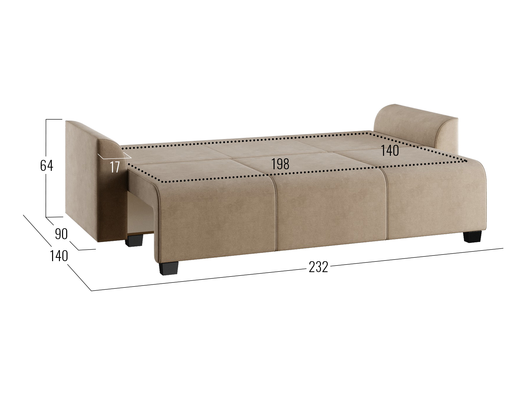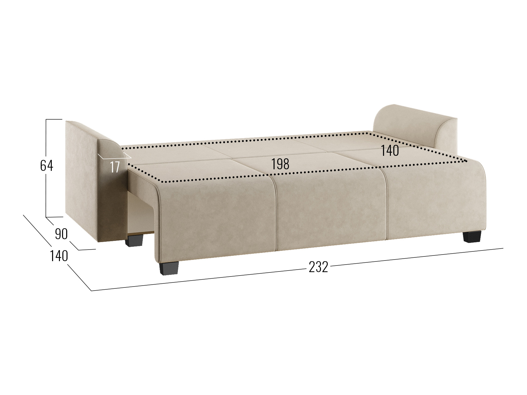 Простой и надежный механизм подходит для ежедневной эксплуатации. В разложенном виде образуется ровное и комфортное место для сна. В объемном бельевом коробе удобно хранить постельные принадлежности или сезонные вещи.