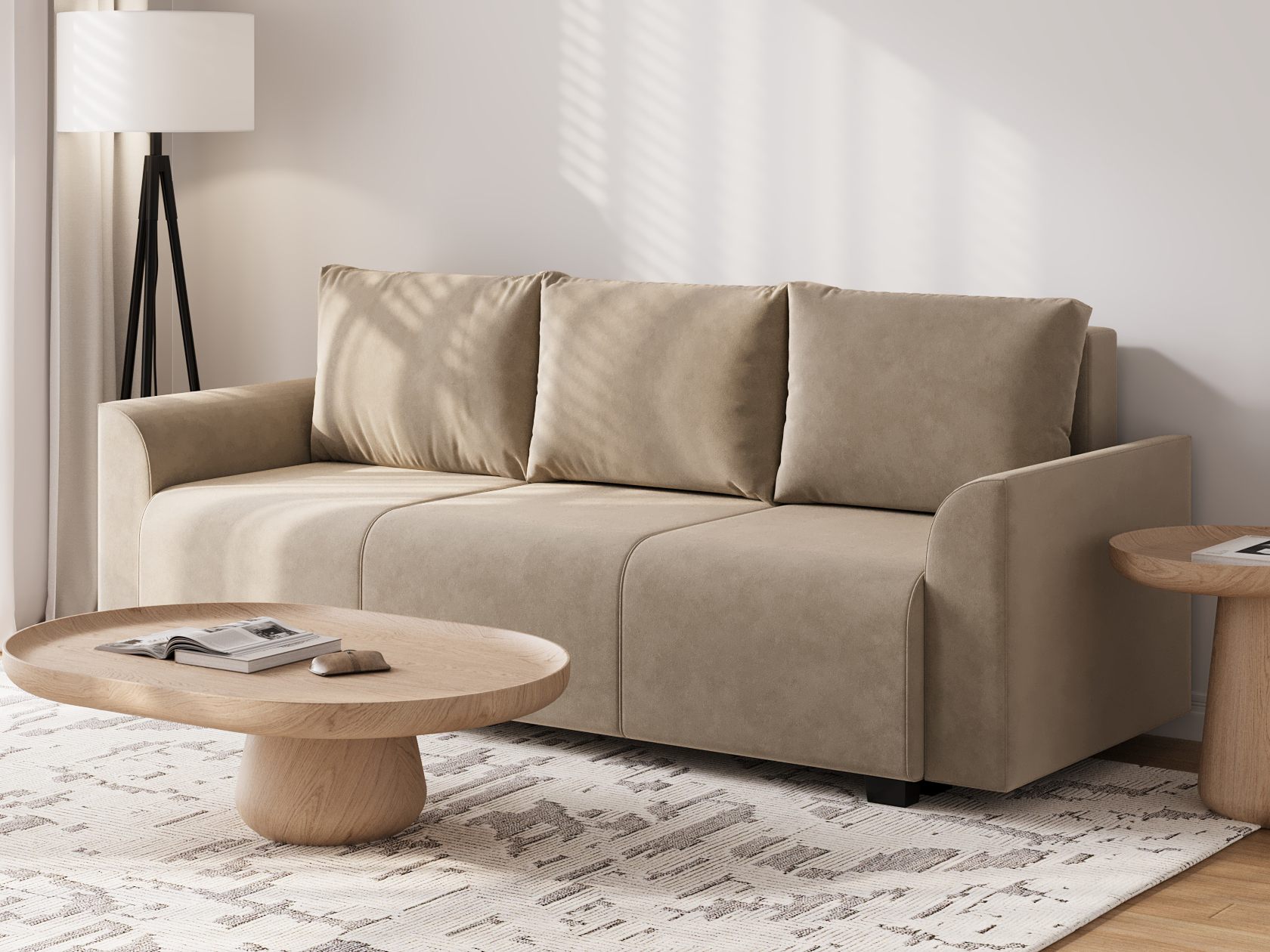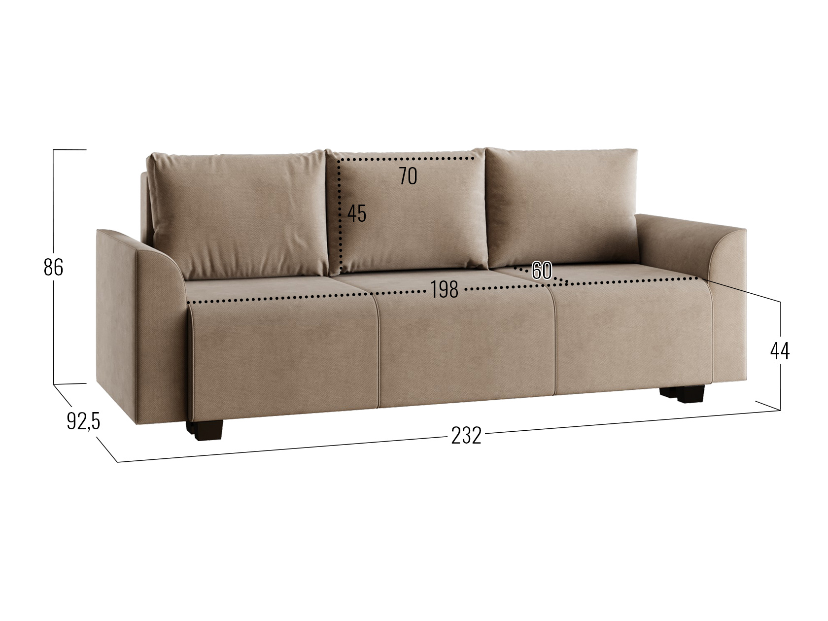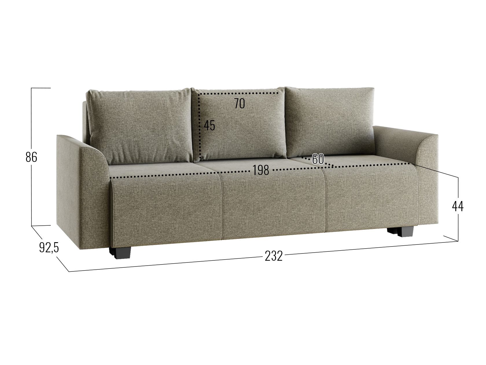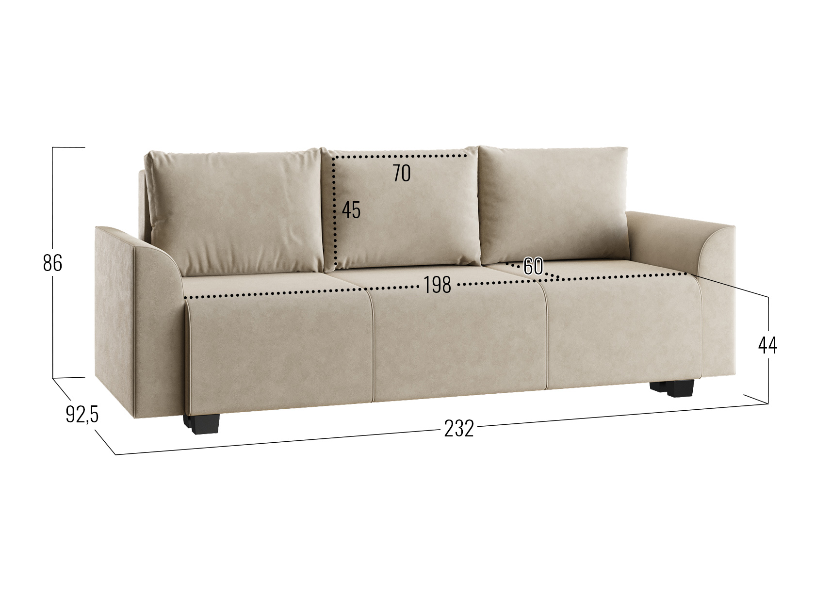 Простой и надежный механизм подходит для ежедневной эксплуатации. В разложенном виде образуется ровное и комфортное место для сна. В объемном бельевом коробе удобно хранить постельные принадлежности или сезонные вещи.