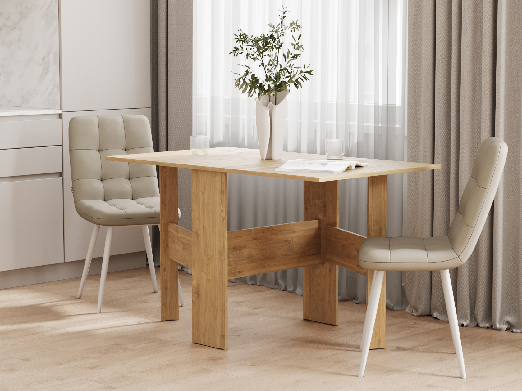 Стол-книжка Дебр станет отличным помощником для гостеприимных хозяев. Раскладная конструкция позволяет расположить несколько человек и быстро организовать домашнее застолье. В сложенном виде стол занимает мало места и может использоваться в качестве тумбы. Минималистичный дизайн хорошо адаптируется под разные стили интерьера.