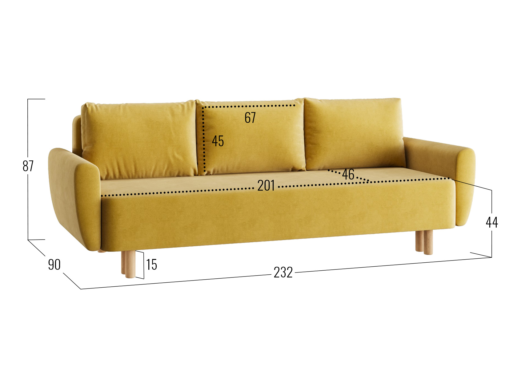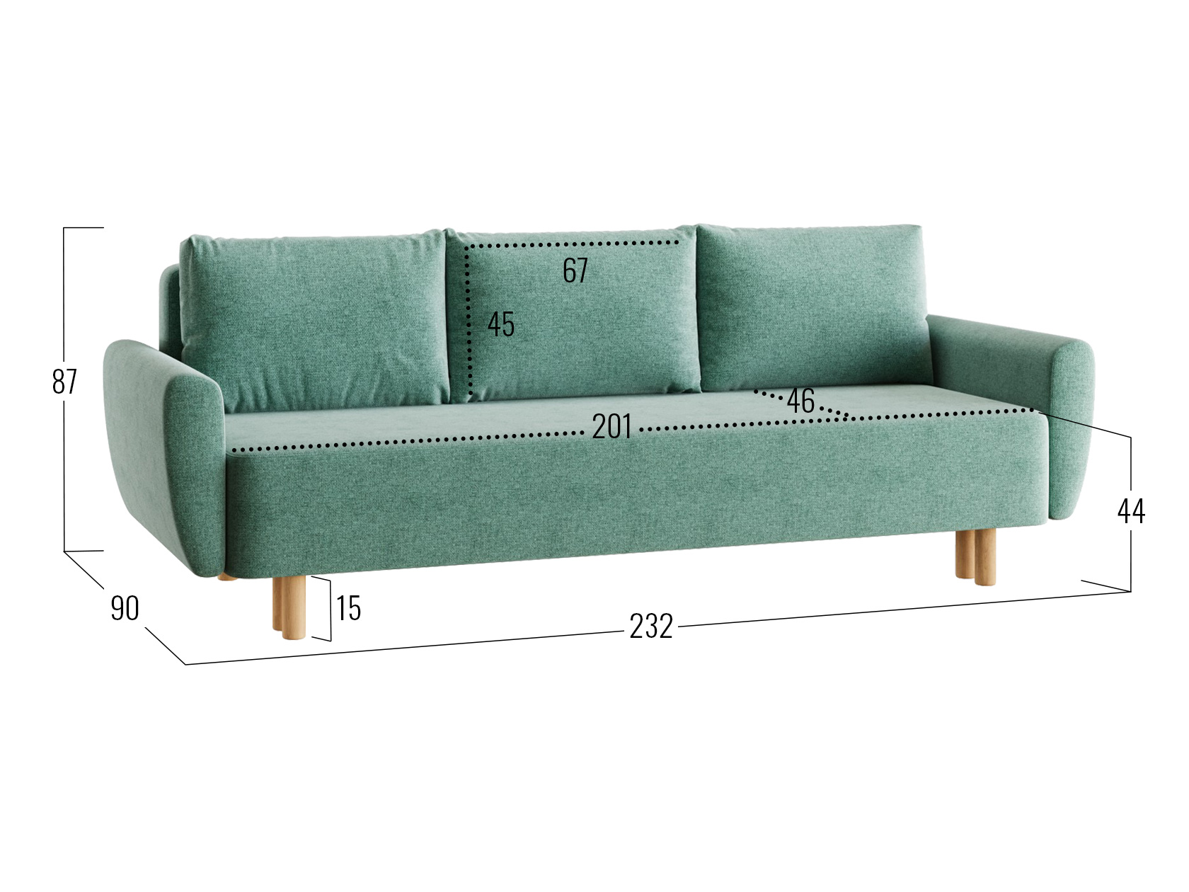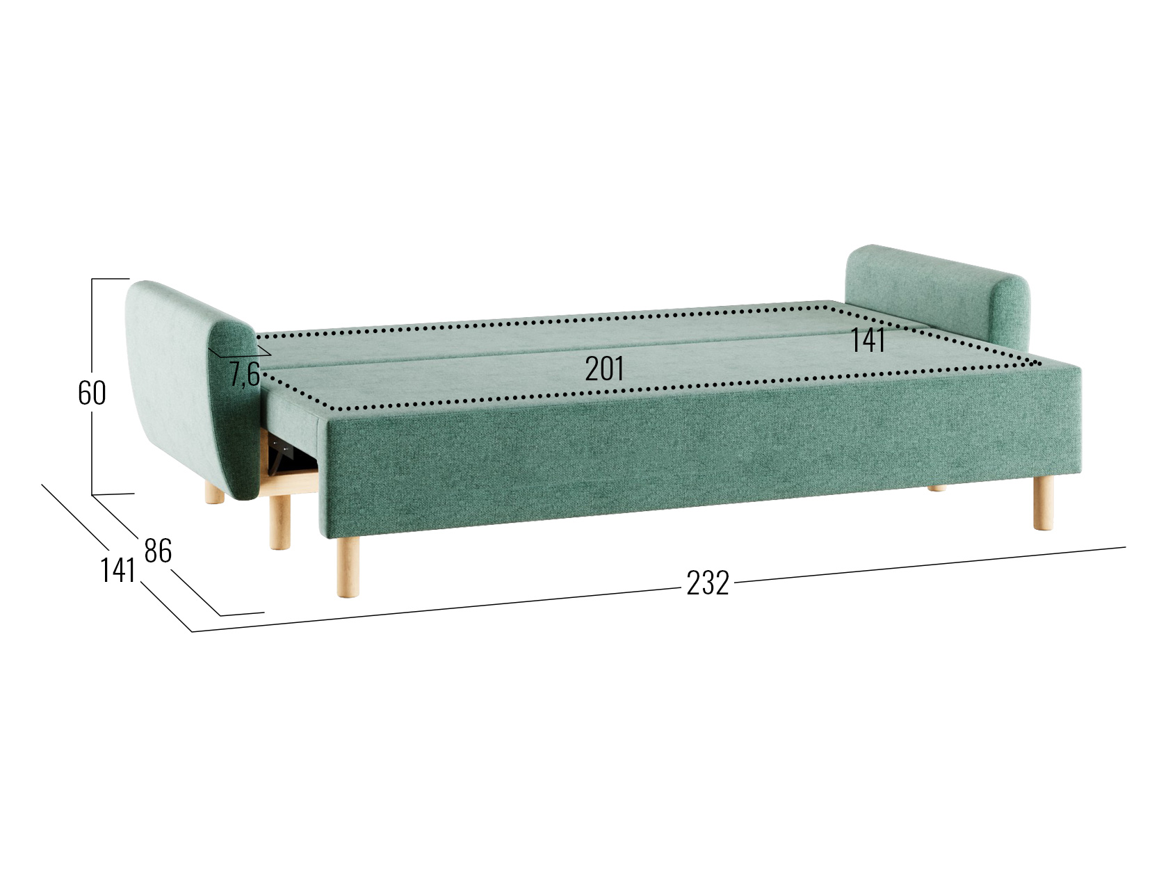 Шагающий механизм трансформации не портит напольное покрытие и не сдвигает ковер, когда диван раскладывается. Ровное спальное место без неудобных стыков и перепадов высоты — еще одно важное преимущество модели. В основании находится ящик для белья.