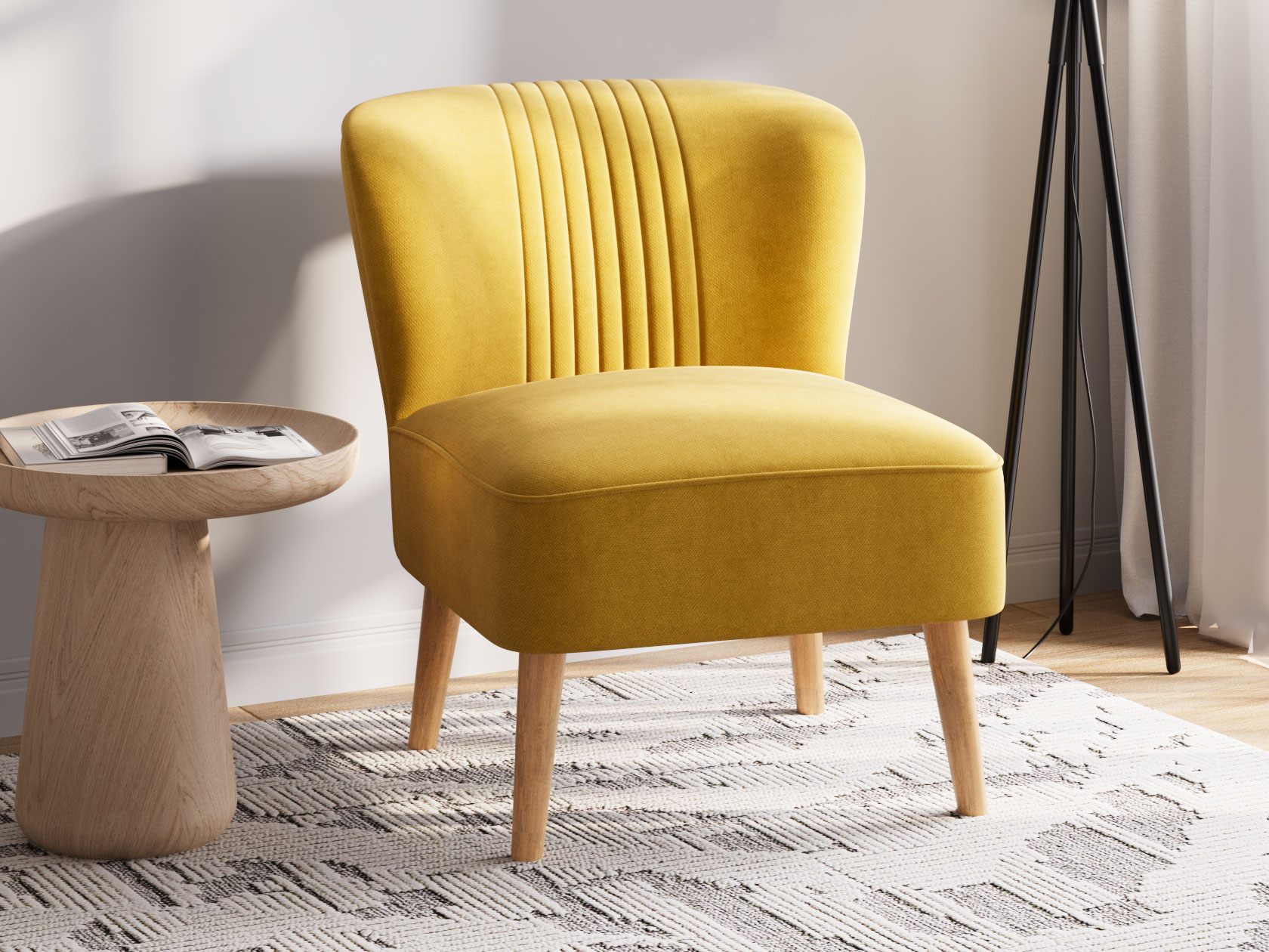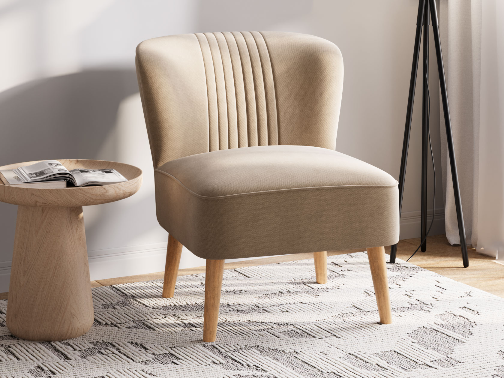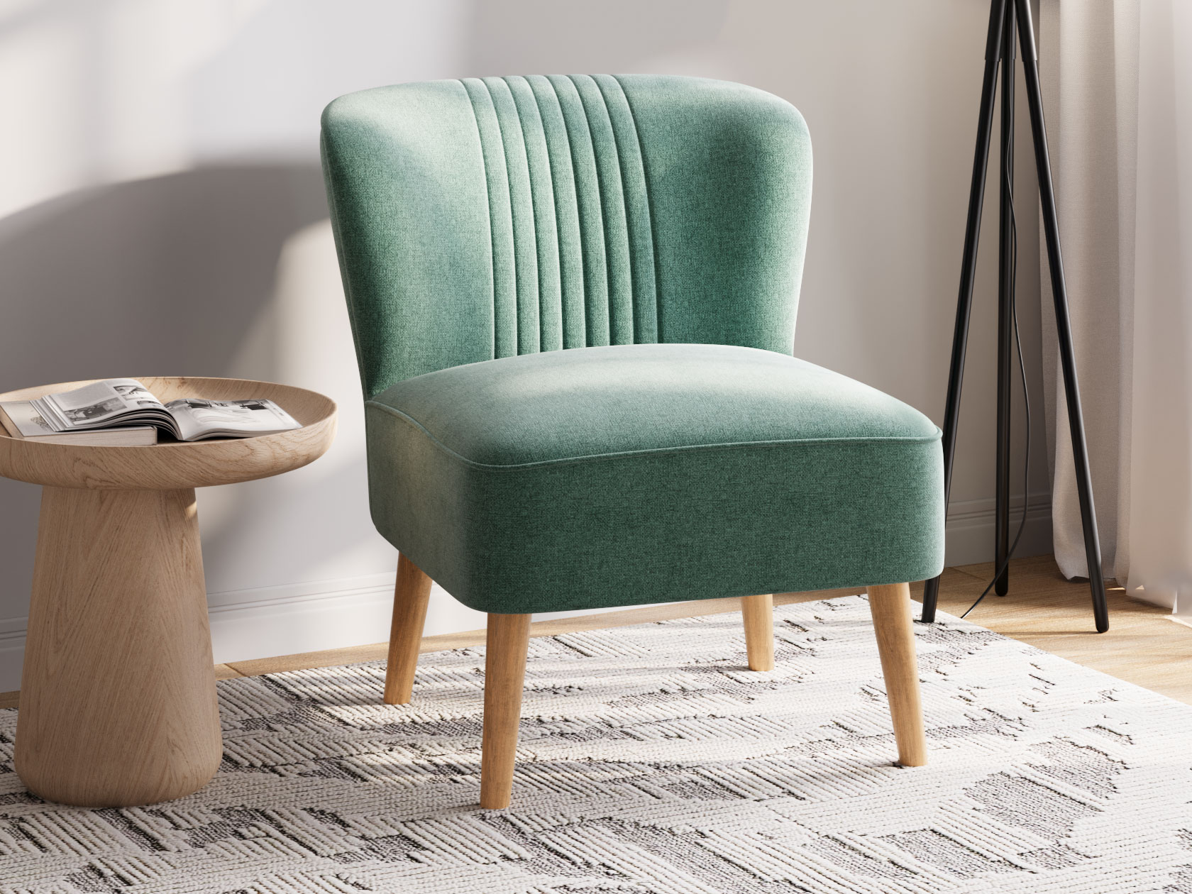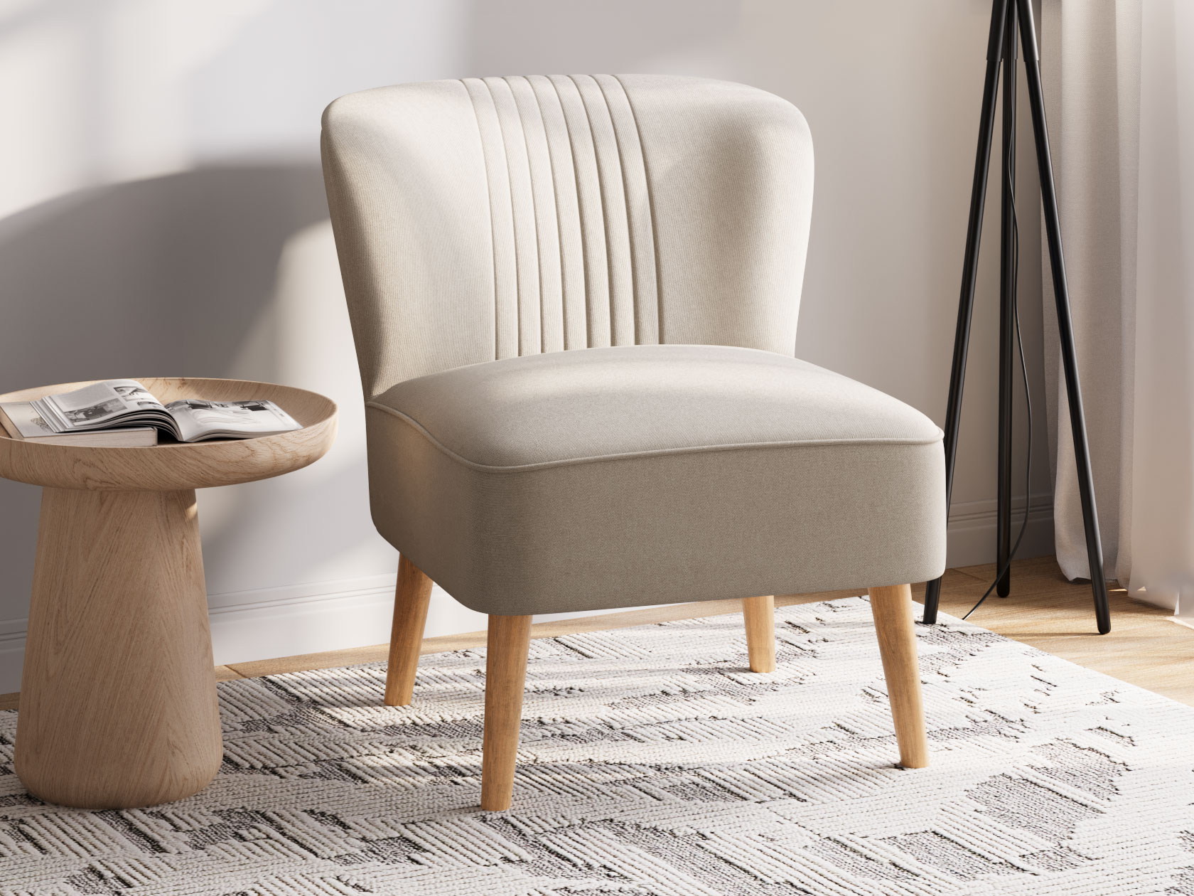 Кресло Флёр покоряет сдержанной элегантностью и стильными деталями. Контуры сиденья украшены декоративным кантом, а спинка — тонкими вертикальными строчками. Благодаря высоким деревянным ножкам кресло смотрится гармонично даже в небольшой комнате. Устойчивая к загрязнениям и простая в уходе обивка — практичное преимущество модели.