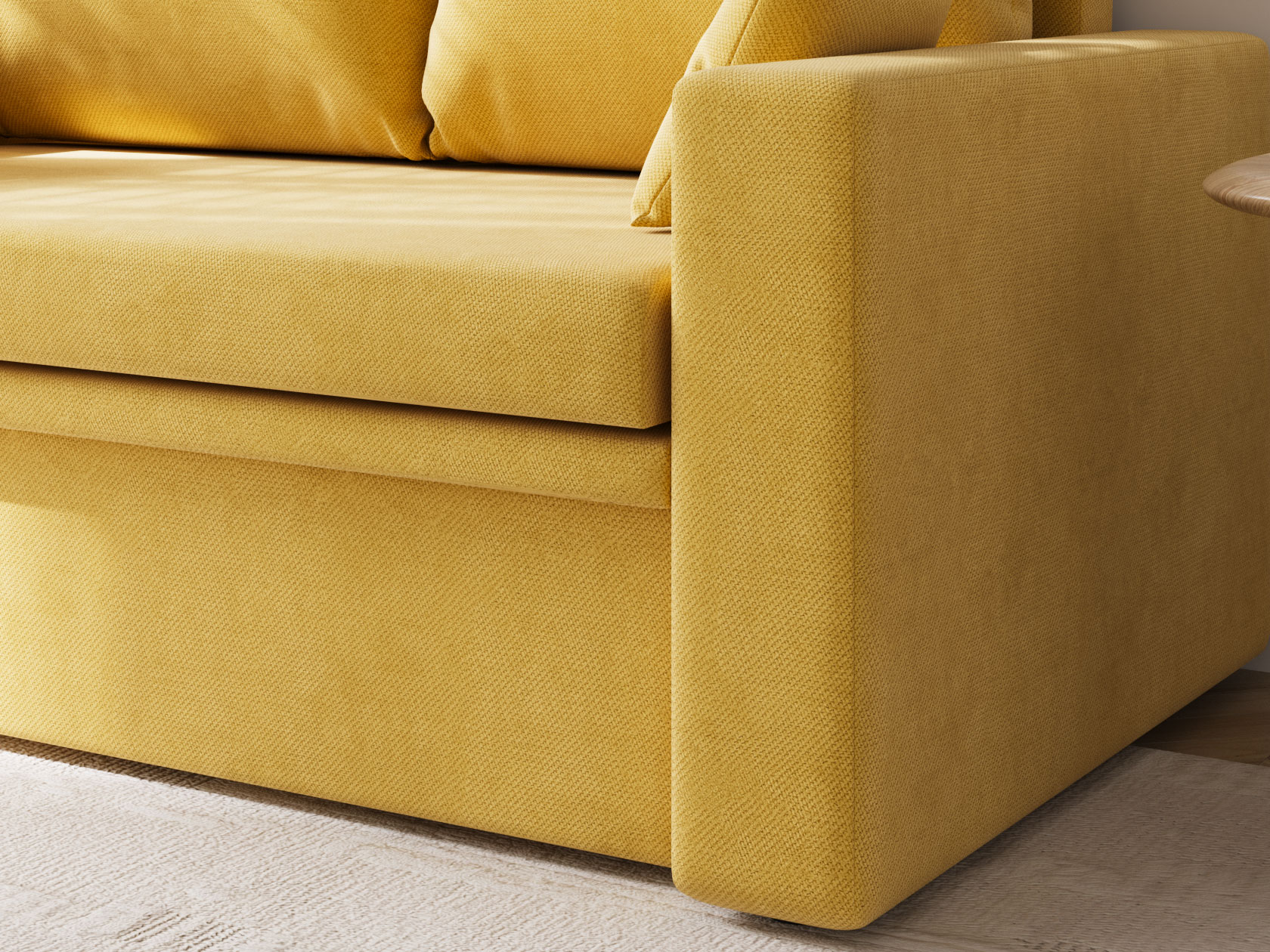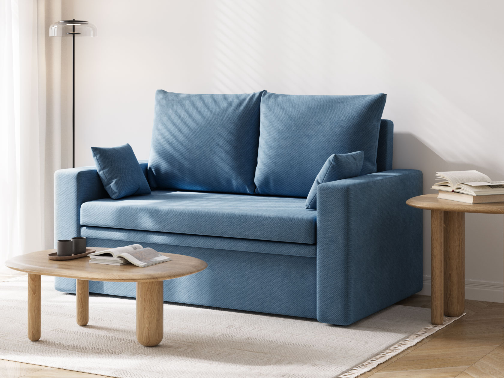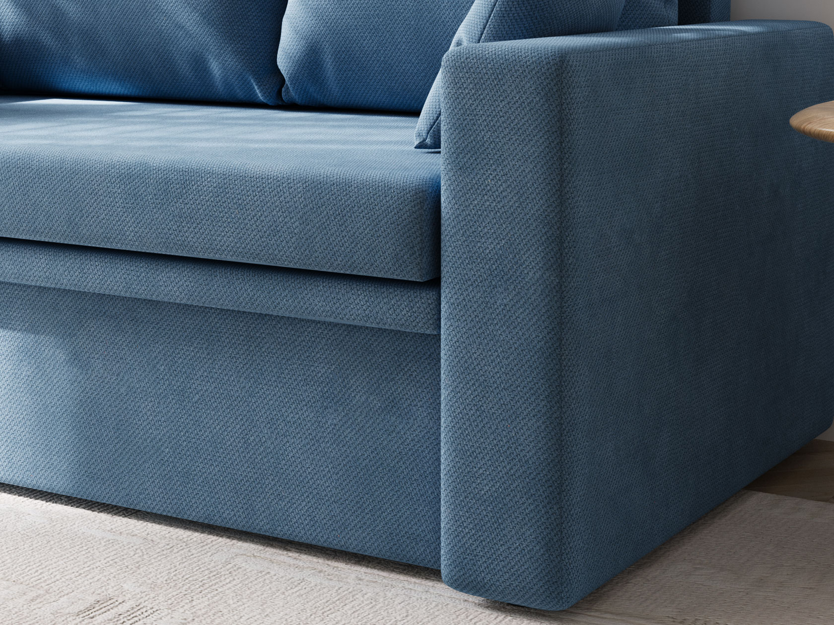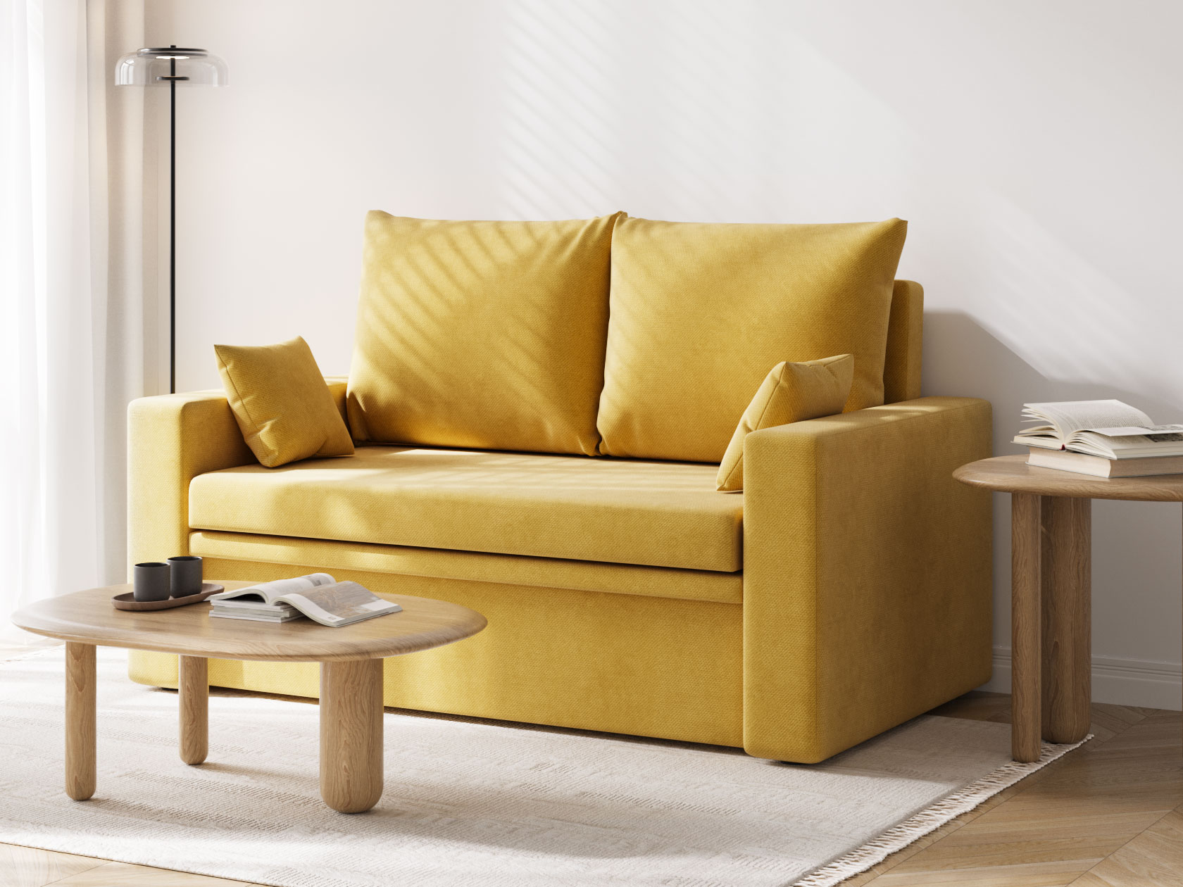 Прямой диван Стеф компактный и функциональный. Модель занимает мало места, а при необходимости выступит в роли односпальной кровати. Небольшая планка защищает от соприкосновения со стеной, когда диван разложен. В основании находится бельевой короб, который создает дополнительную нишу для хранения. В дизайне нет ничего лишнего, поэтому модель органично сочетается с разными интерьерами.