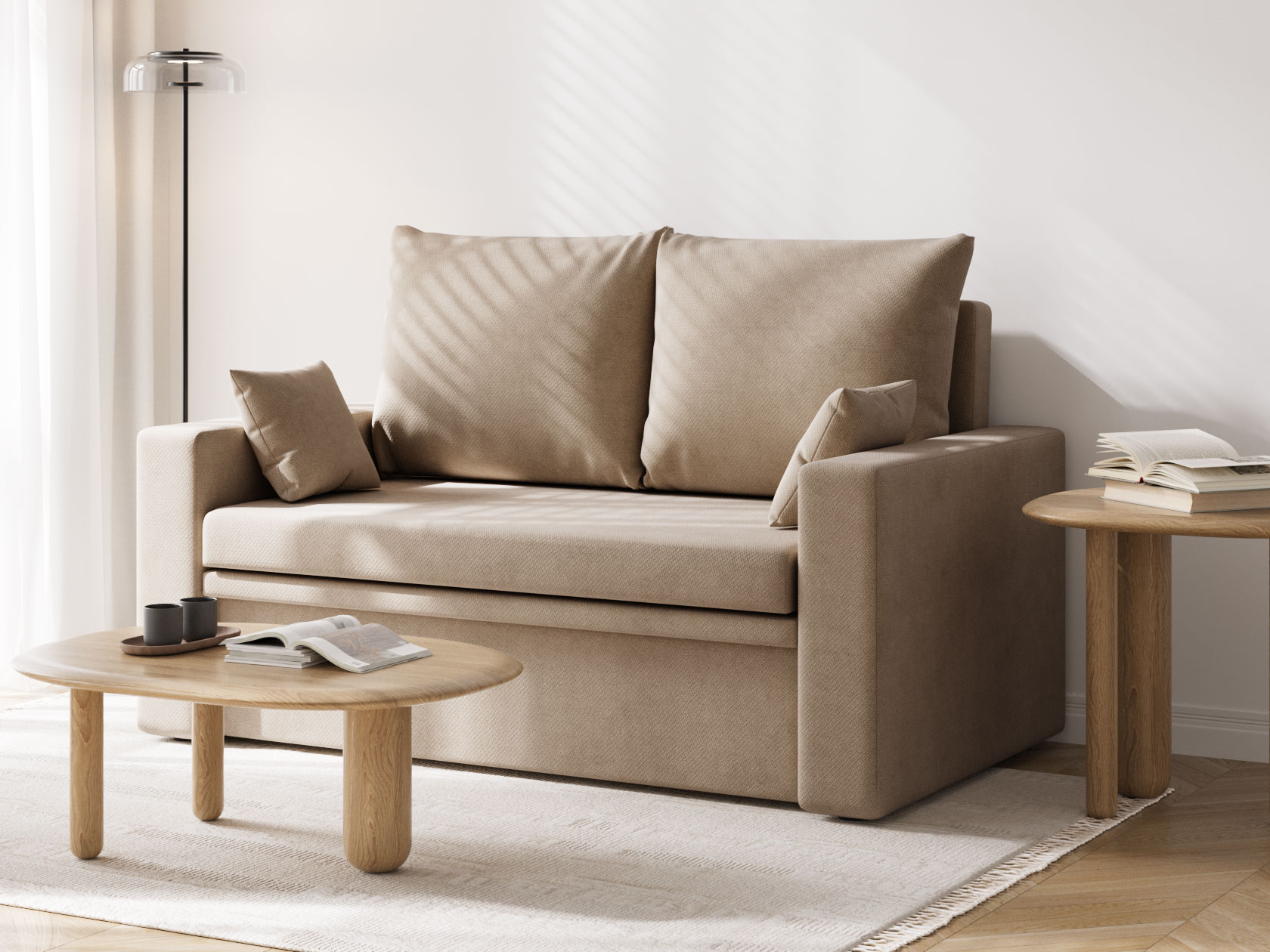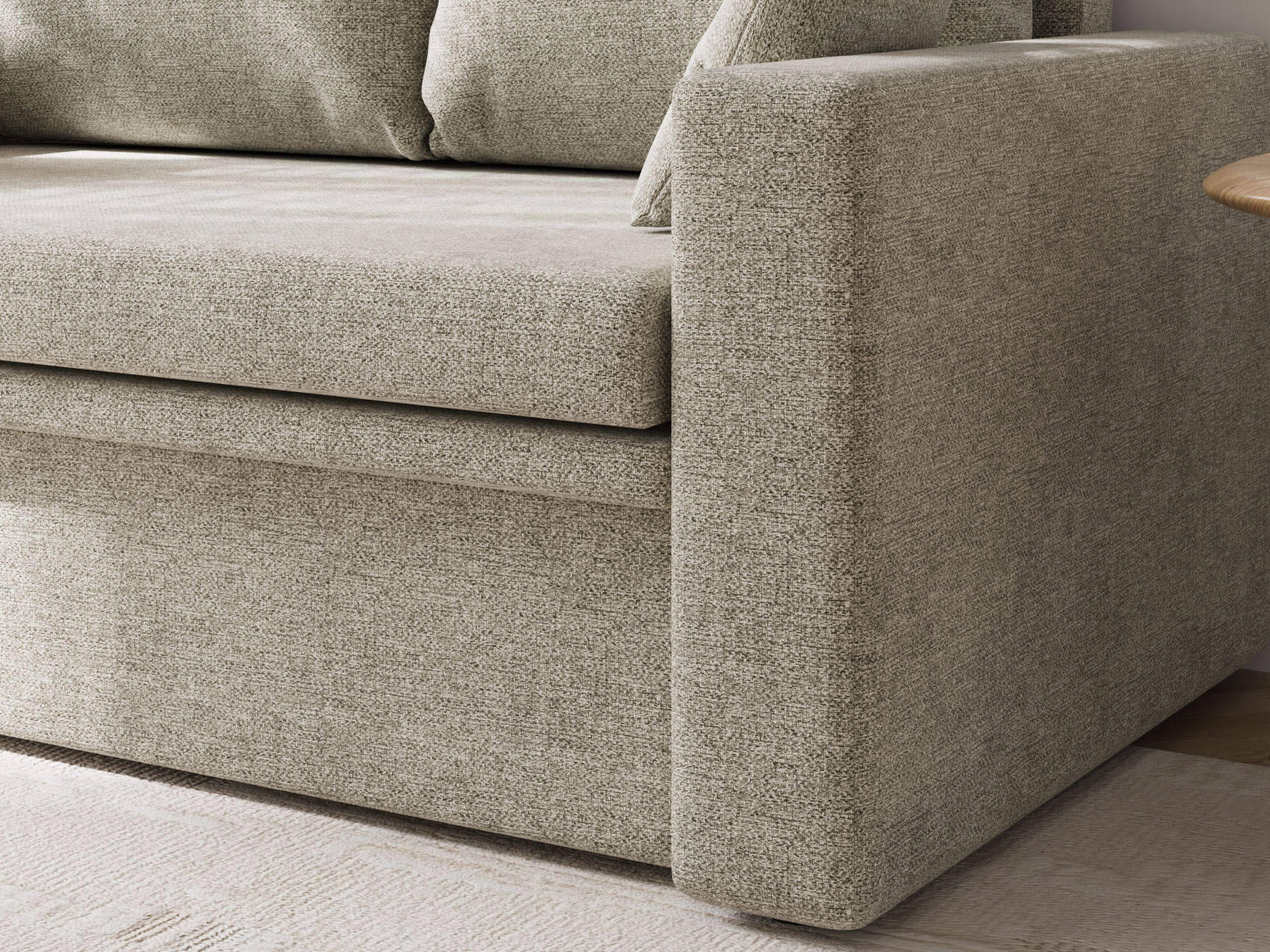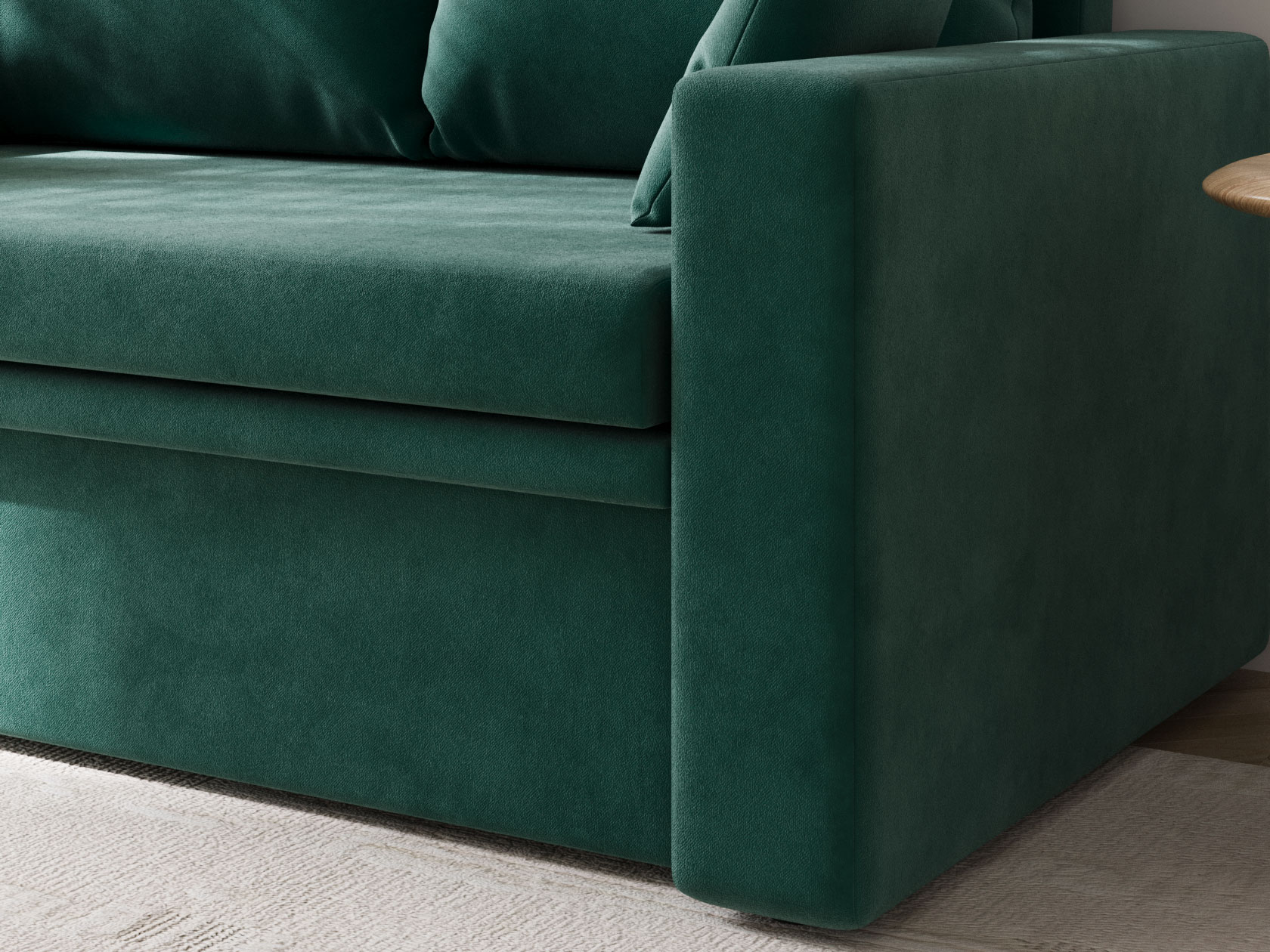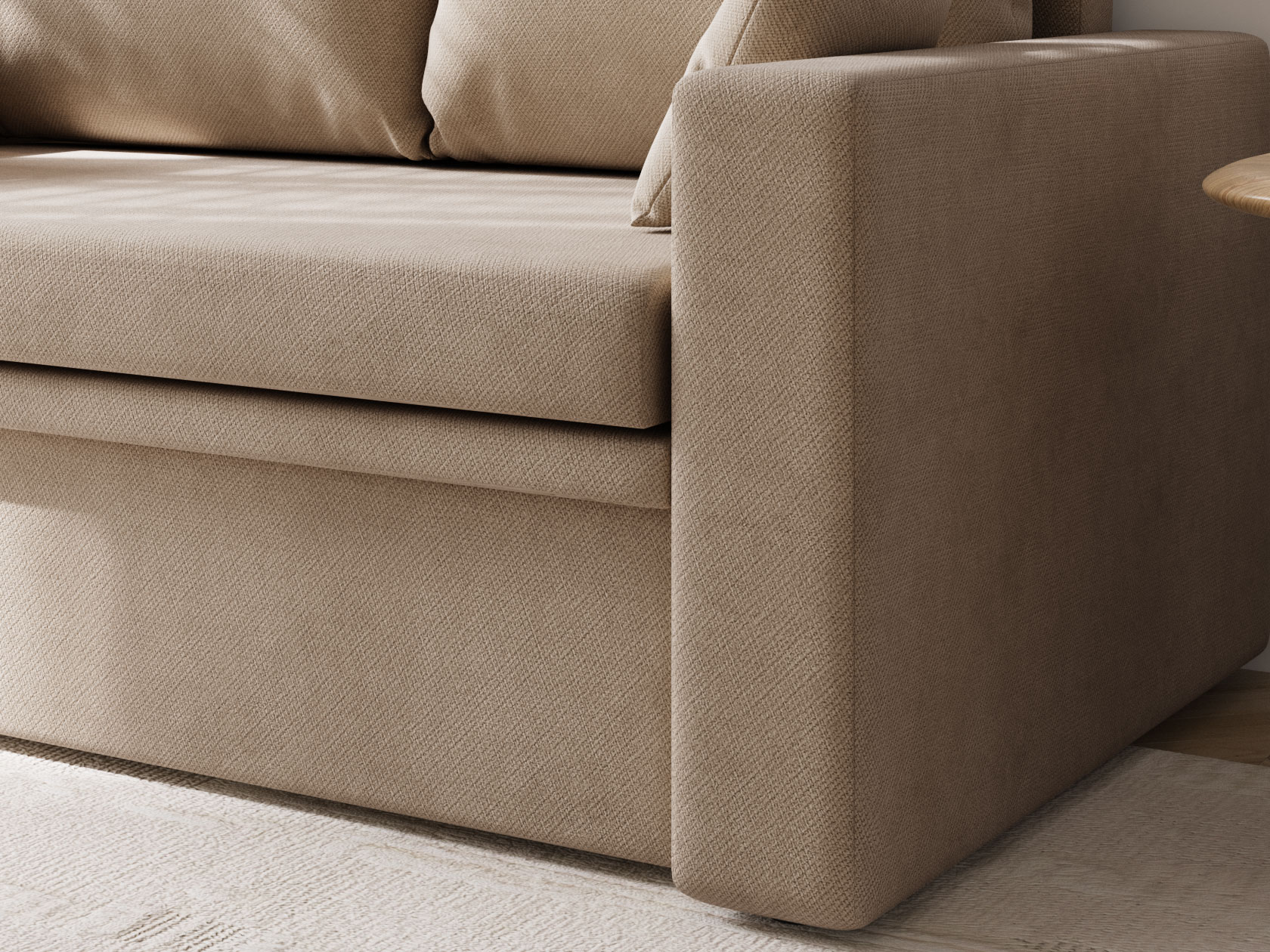 Прямой диван Стеф компактный и функциональный. Модель занимает мало места, а при необходимости выступит в роли односпальной кровати. Небольшая планка защищает от соприкосновения со стеной, когда диван разложен. В основании находится бельевой короб, который создает дополнительную нишу для хранения. В дизайне нет ничего лишнего, поэтому модель органично сочетается с разными интерьерами.