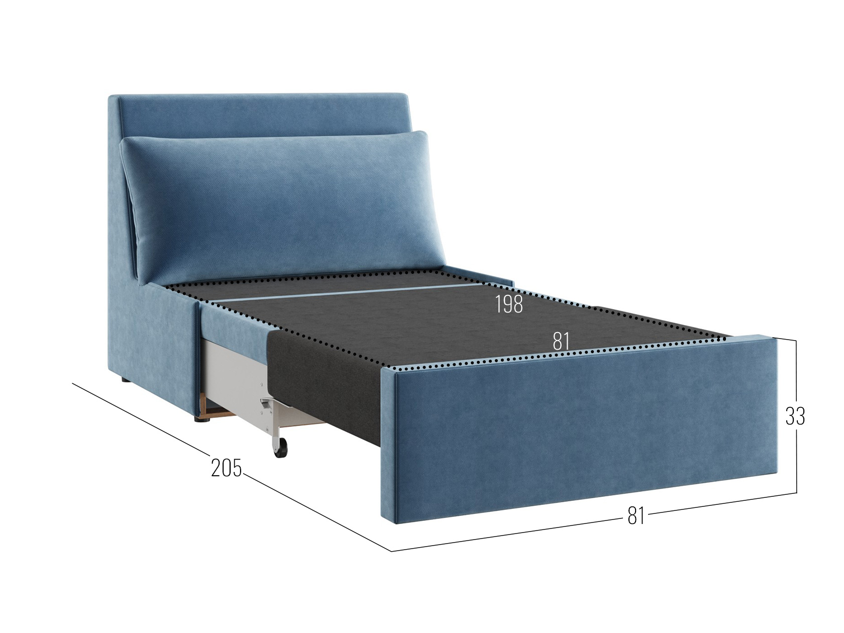 Кресло-кровать Бадди — идеальное решение для небольшой комнаты или квартиры-студии. Глубокое сиденье и объемная подушка делают модель удобным местом отдыха, а благодаря отсутствию подлокотников легко сэкономить пространство. Кресло раскладывается без особых усилий, превращаясь в односпальную кровать. Благодаря минималистичному дизайну мебель гармонично смотрится в разных современных интерьерах.