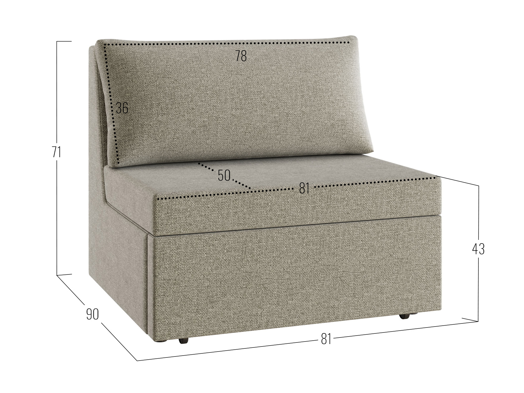 Посадочное место без подушки (ШхГ): 81 х 60 см.