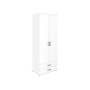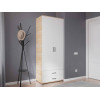 Распашной шкаф Ривер представляет собой полноценную систему хранения. Штанга и полки позволят удобно разместить одежду на вешалках и в сложенном виде. В нижней части расположены выдвижные ящики для постельного белья и аксессуаров. Гладкие матовые фасады с контрастными ручками актуально смотрятся в любом интерьере.