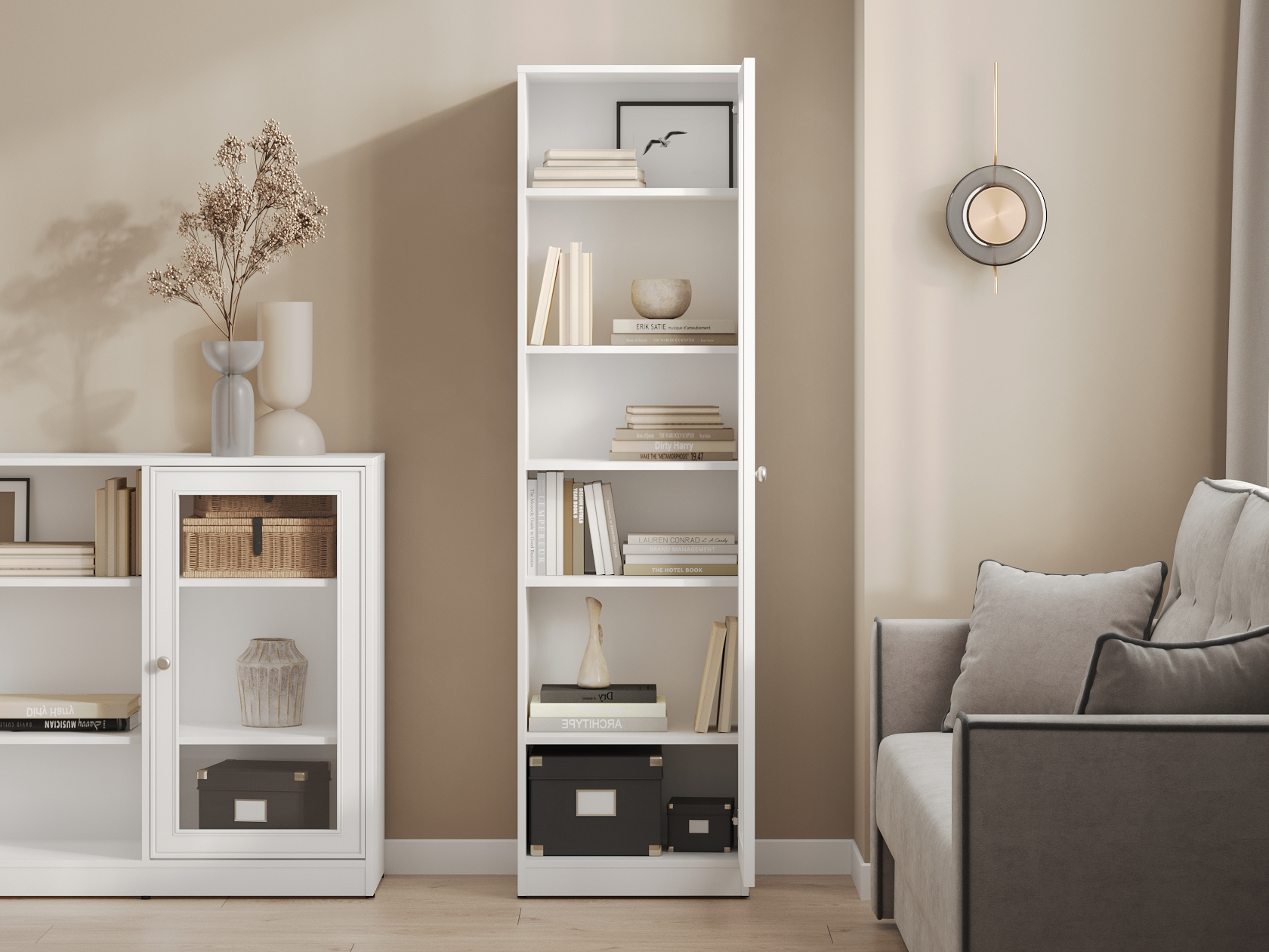 Шкаф-витрина Люси 1 дверь — практичное и стильное решение для организации домашней библиотеки. Классическое оформление с рамочными фасадами и ручками-кнопками будет уместно смотреться в рабочем кабинете, гостиной и других комнатах.