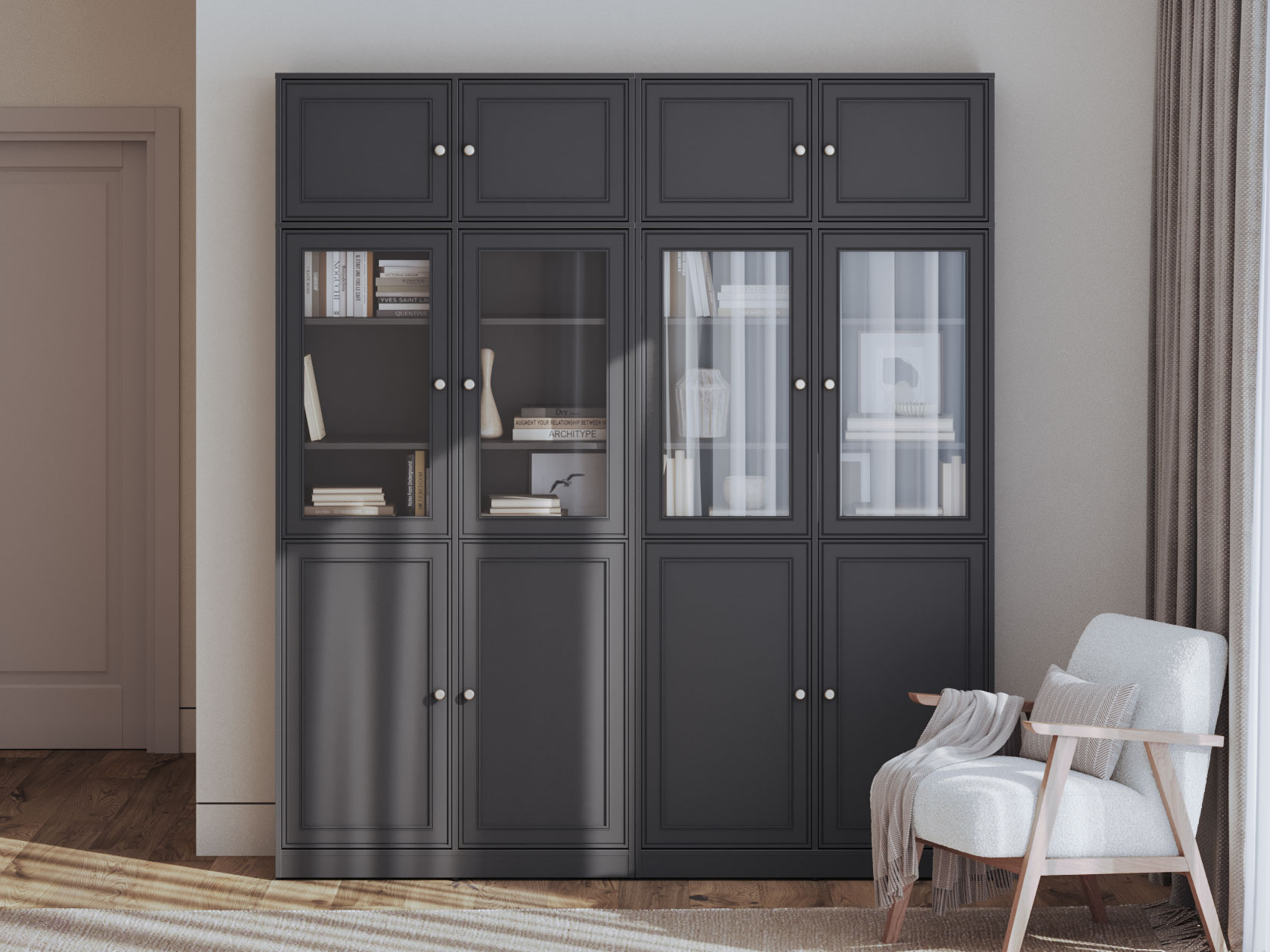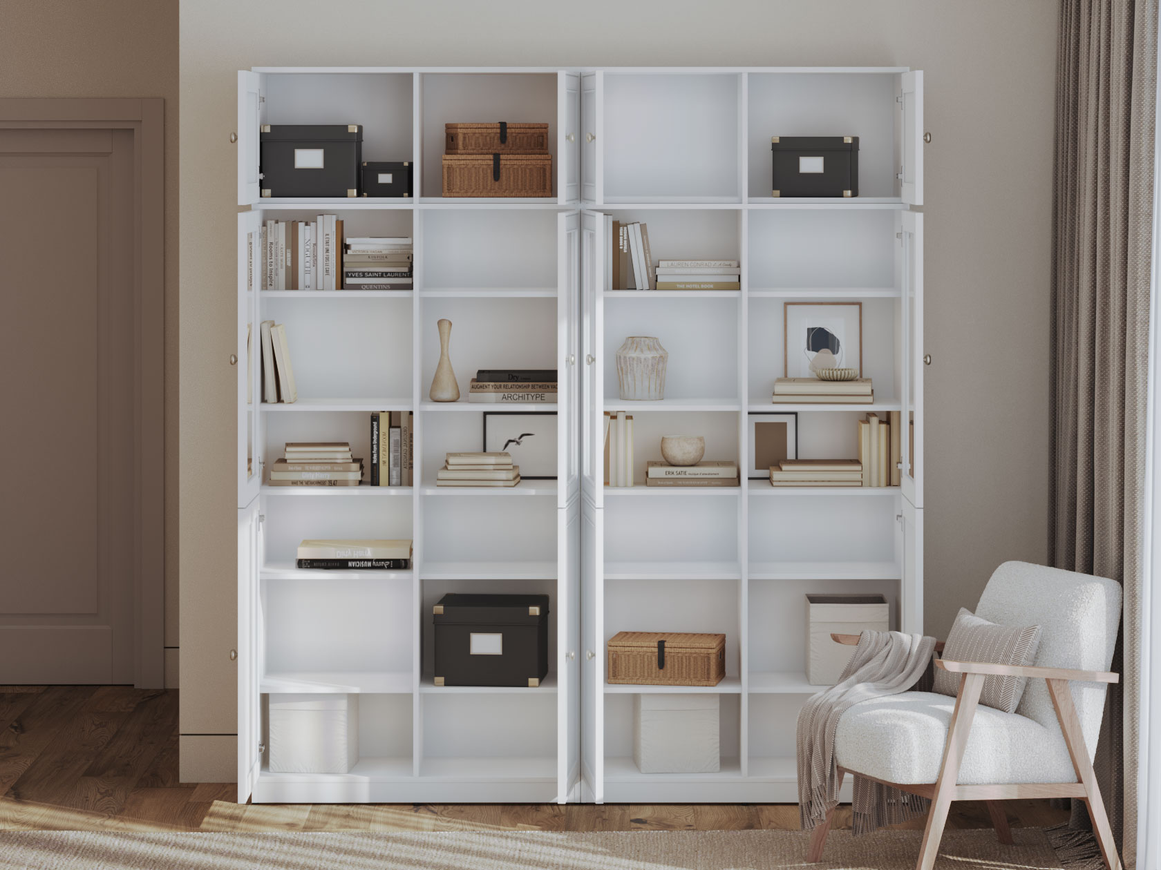 Шкаф-витрина Люси 2 двери поможет разместить коллекцию книг, печатную продукцию и другие ценные предметы. Классические рамочные фасады и минималистичные ручки гармонично сочетаются с разными стилями интерьера.