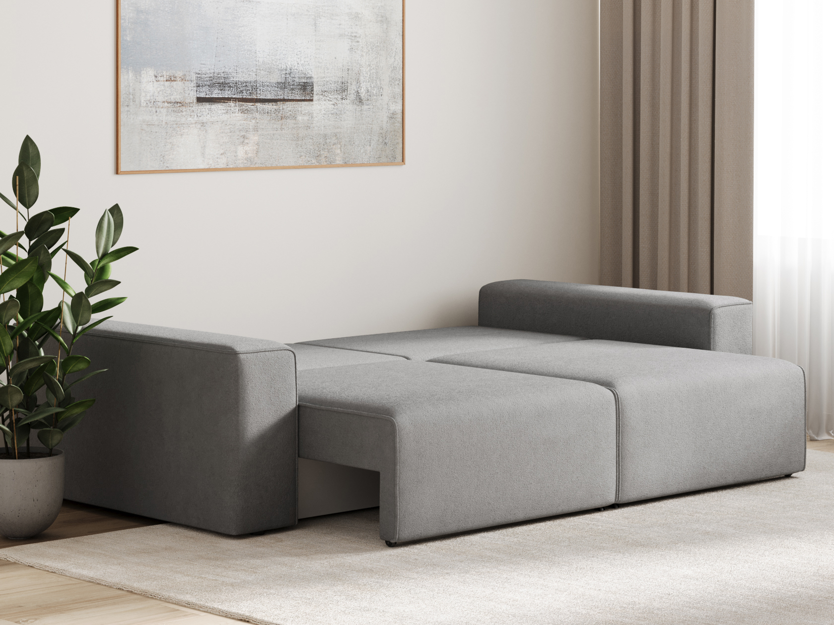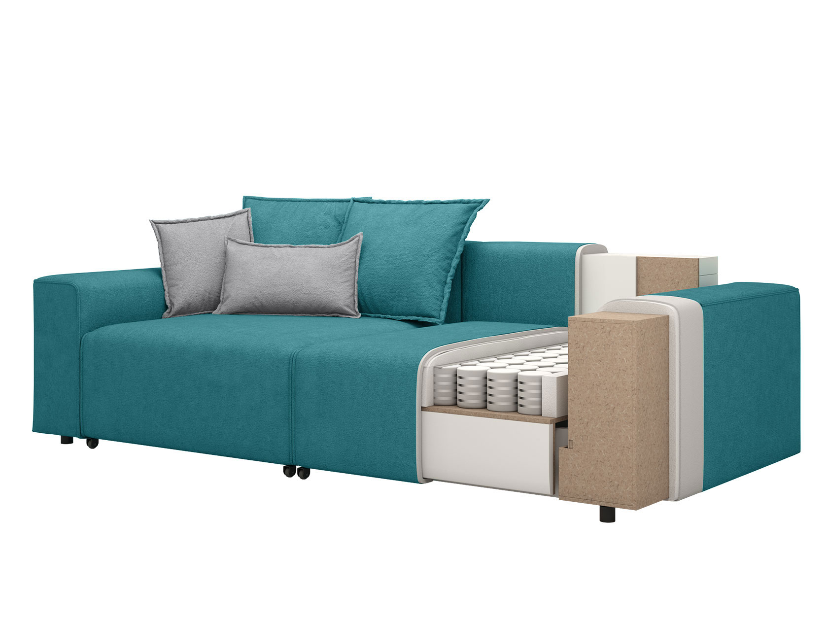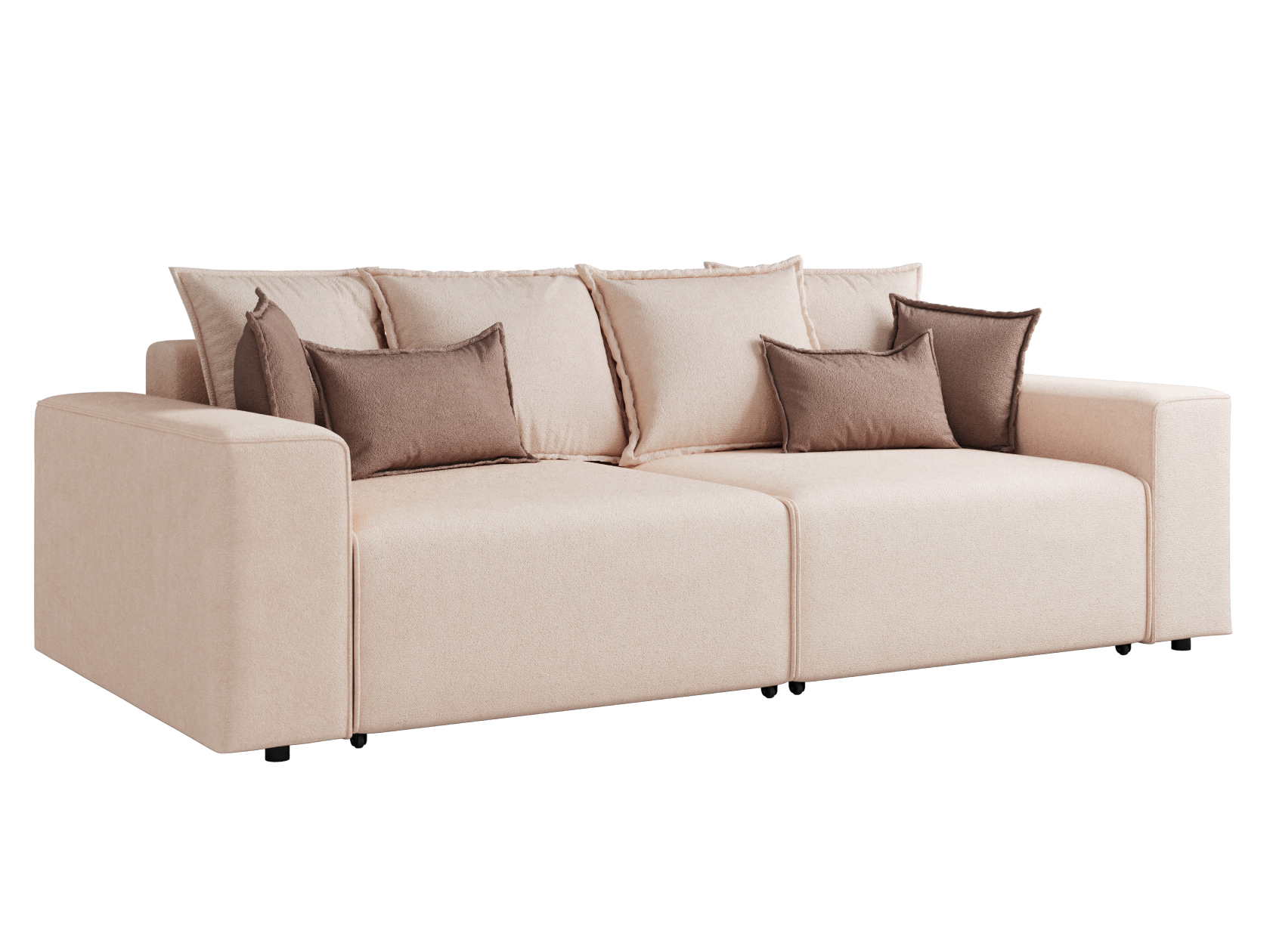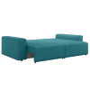 Комплект подушек и широкие подлокотники позволяют удобно расположиться во время отдыха. Благодаря большой глубине образуется комфортное спальное место для одного человека, даже когда диван не разложен. При необходимости модель легко превращается в двуспальную кровать, при этом две секции раскладываются независимо друг от друга и оснащены вместительными бельевыми ящиками.