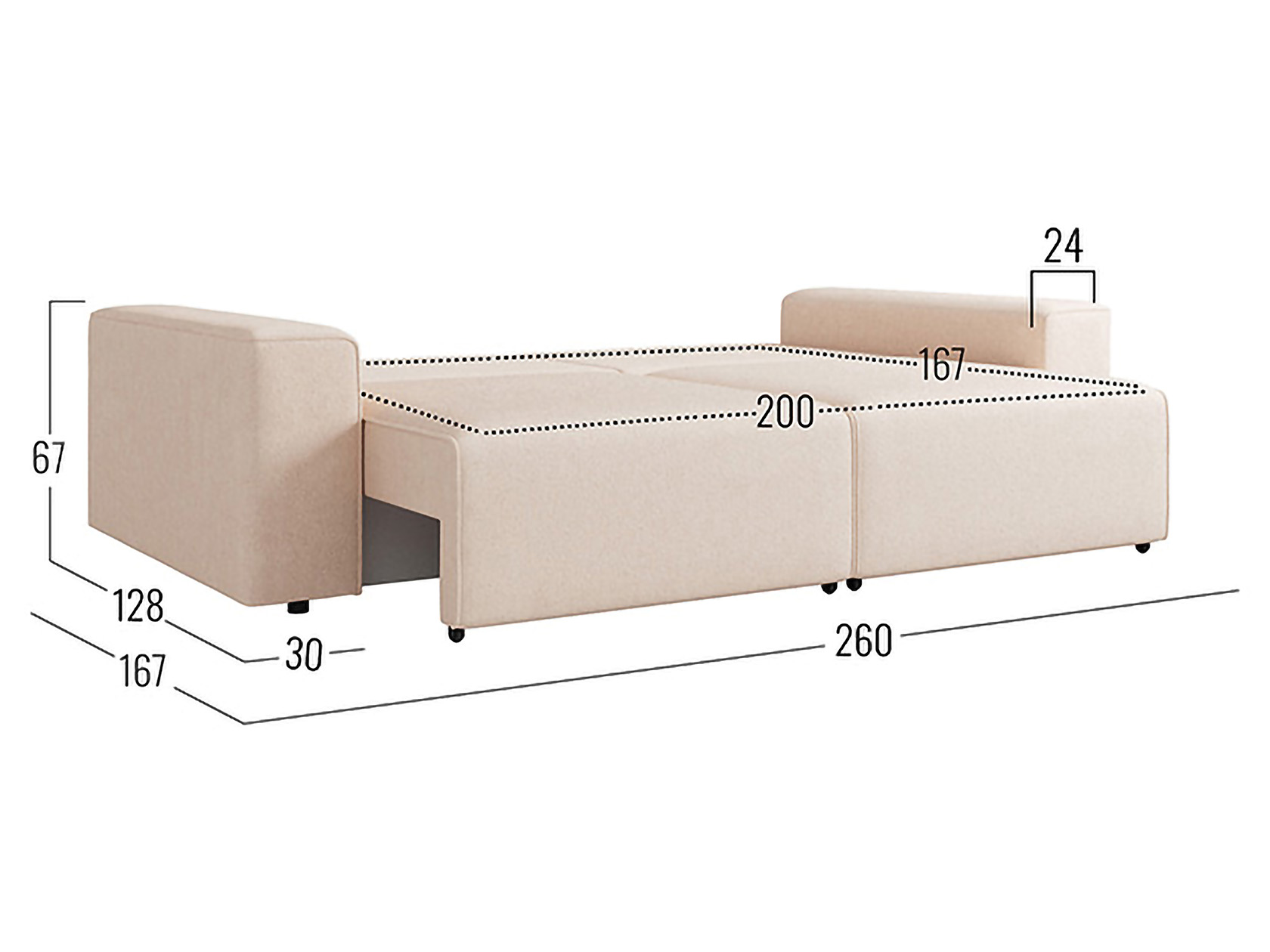 Посадочное место (ВхГ): 40 х 200 х 75 см.
