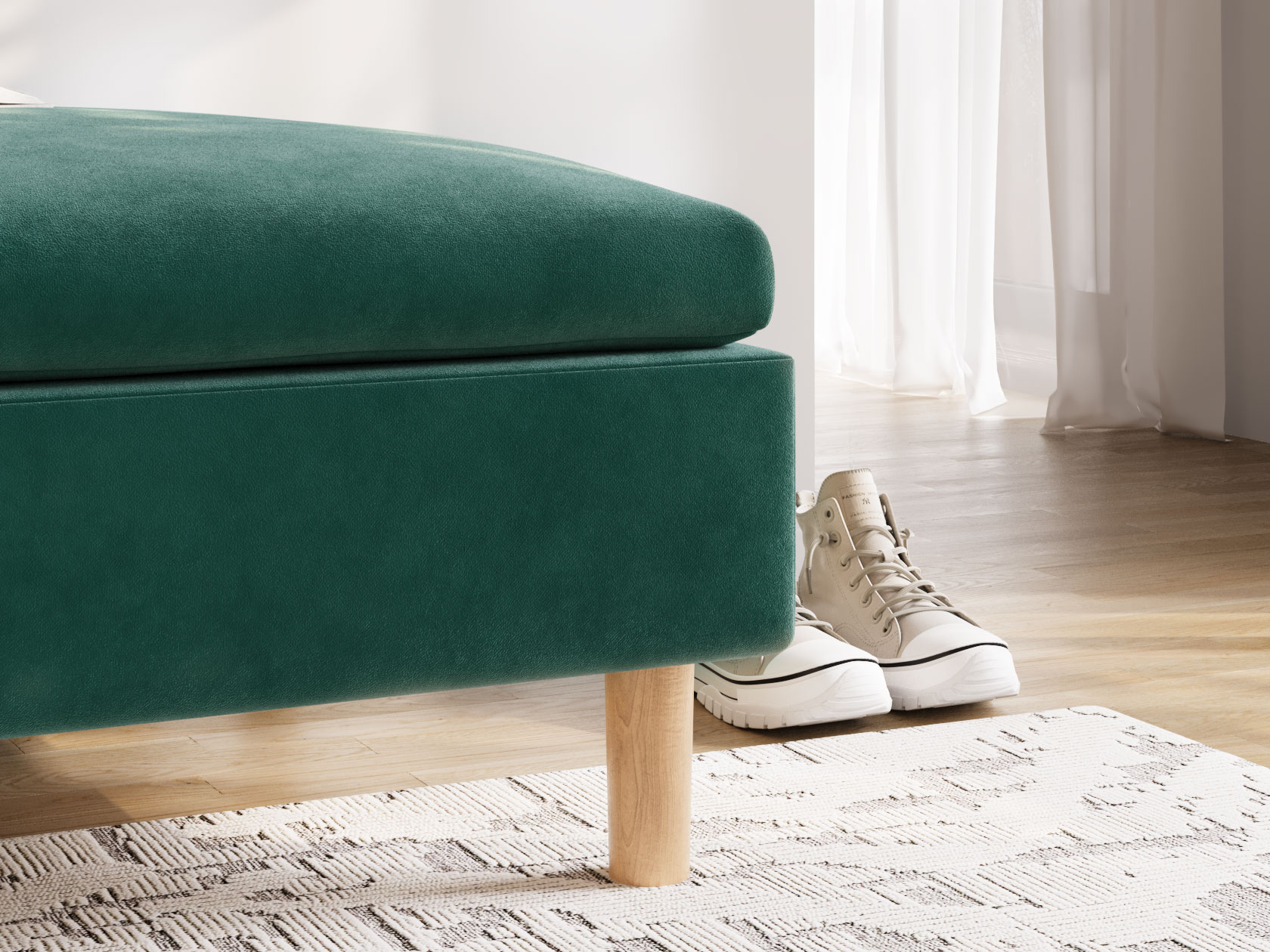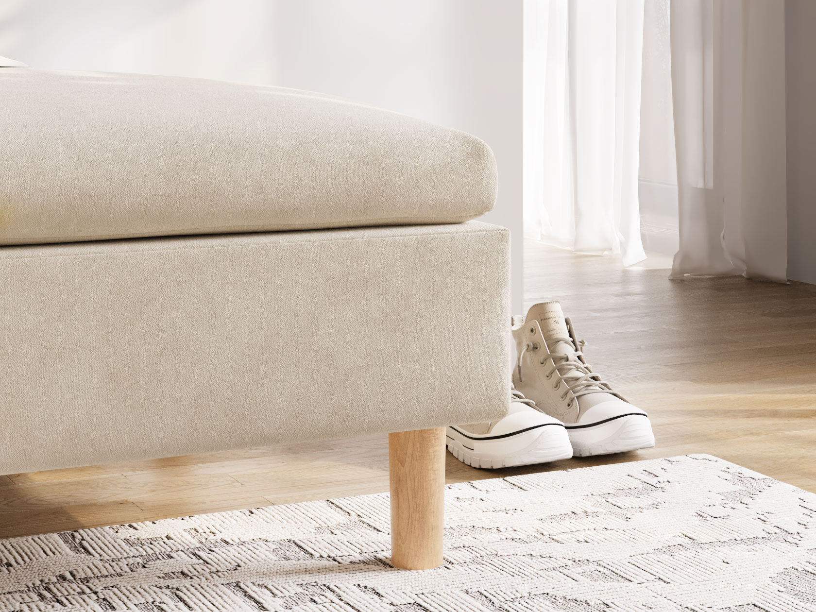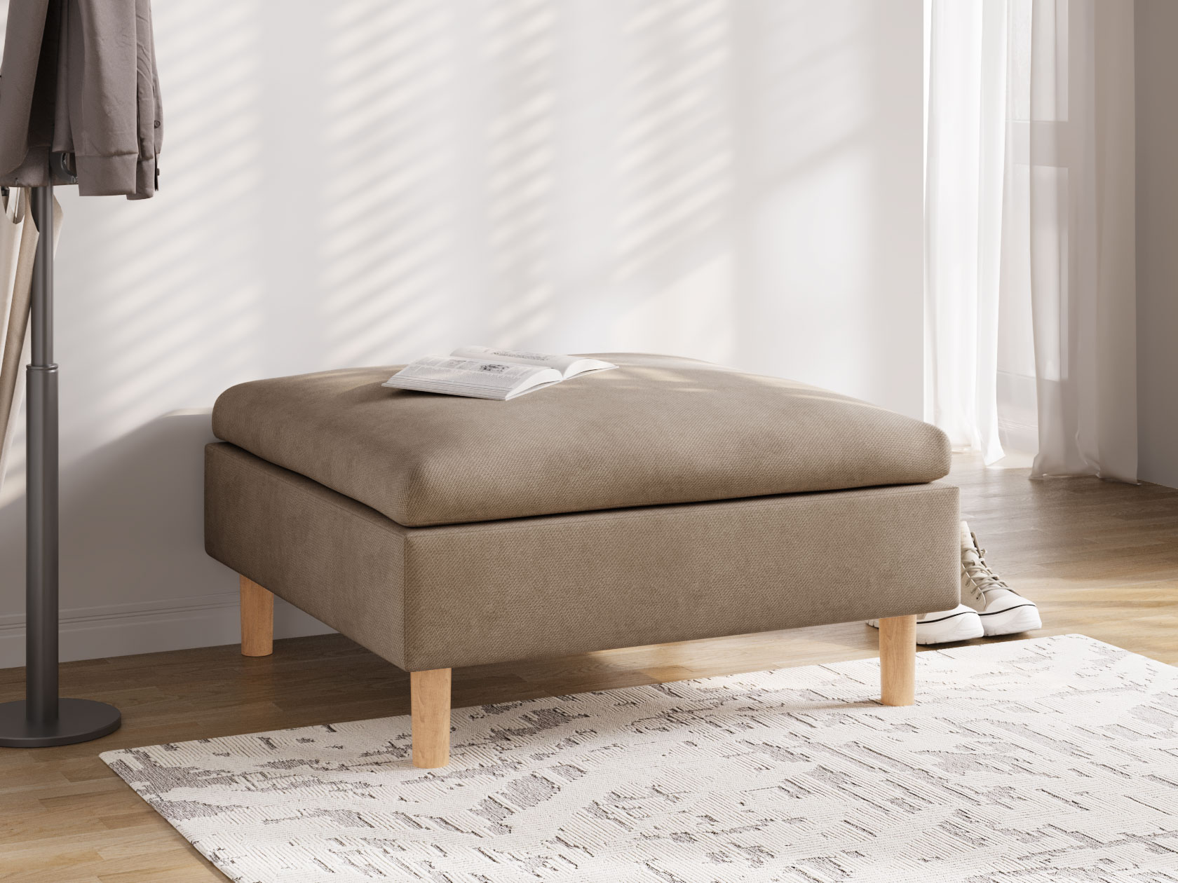 Пуфик Калисто — визуально легкая модель в минималистичном дизайне. Идеальные пропорции и лаконичный силуэт делают пуф органичным дополнением к любому интерьеру. Высокие деревянные ножки добавляют уютный акцент и облегчают уборку. Пуф удобно использовать в качестве подставки для ног, дополнительного посадочного места или в роли банкетки. Модель можно комбинировать с другими элементами коллекции.