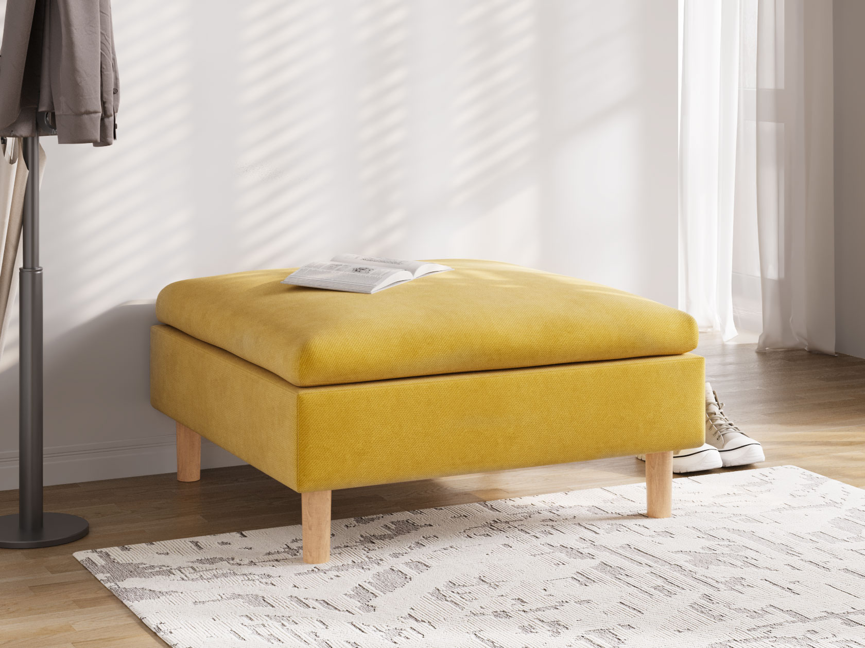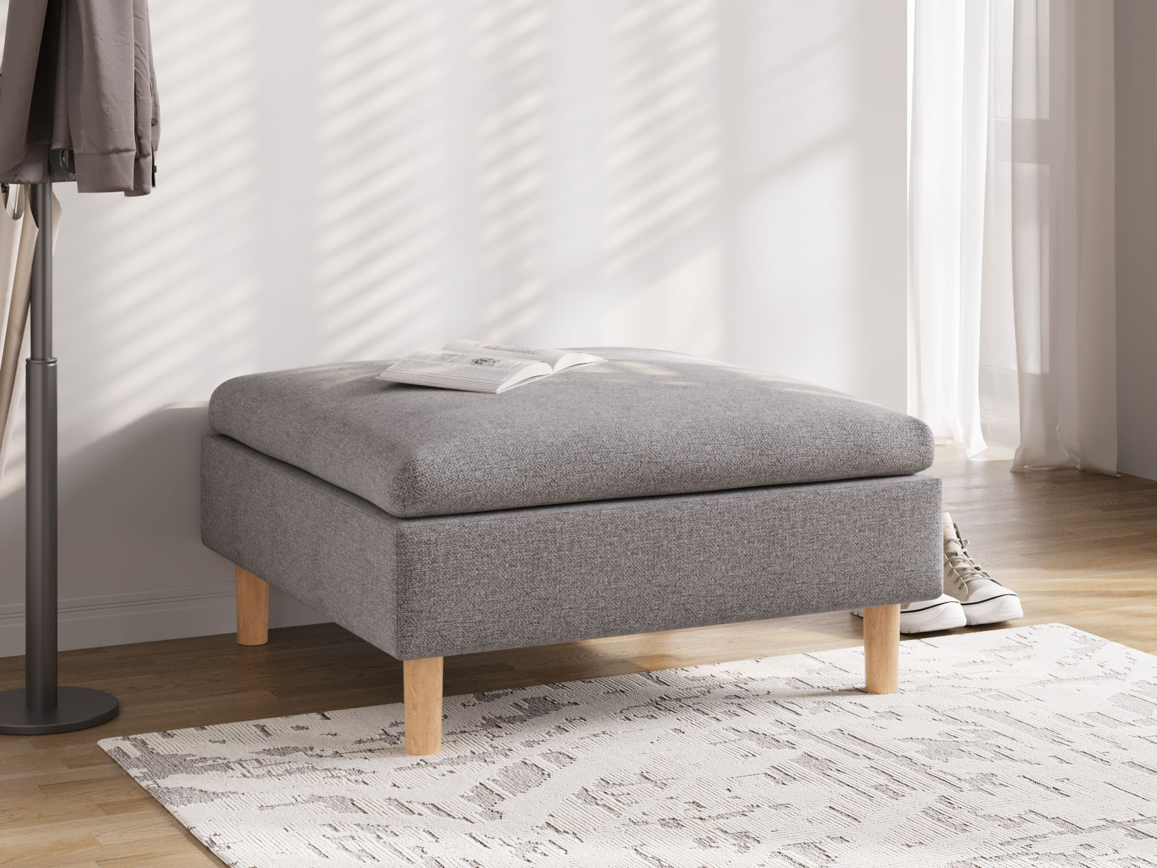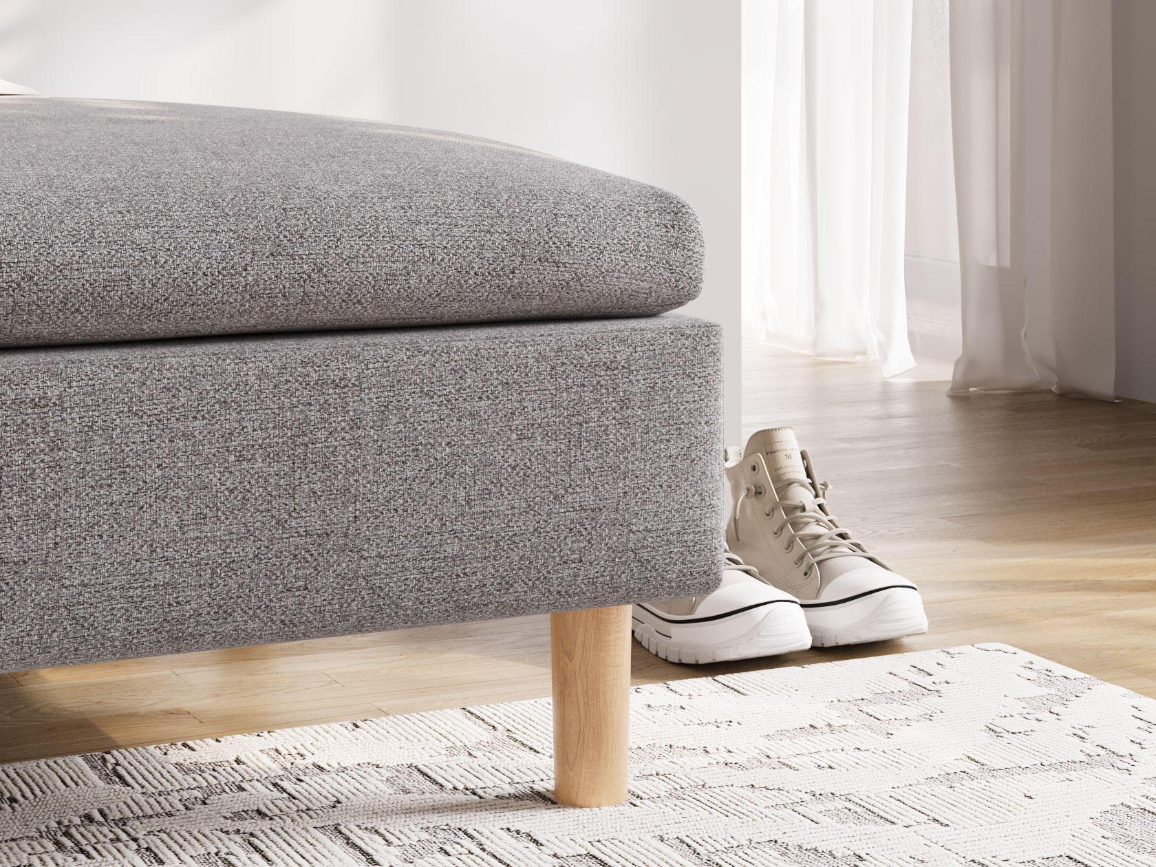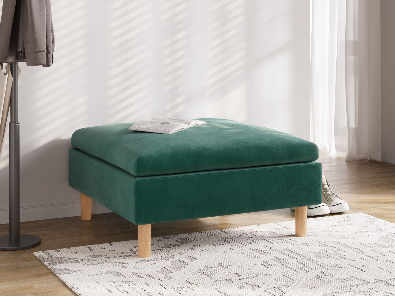 Пуфик Калисто — визуально легкая модель в минималистичном дизайне. Идеальные пропорции и лаконичный силуэт делают пуф органичным дополнением к любому интерьеру. Высокие деревянные ножки добавляют уютный акцент и облегчают уборку. Пуф удобно использовать в качестве подставки для ног, дополнительного посадочного места или в роли банкетки. Модель можно комбинировать с другими элементами коллекции.