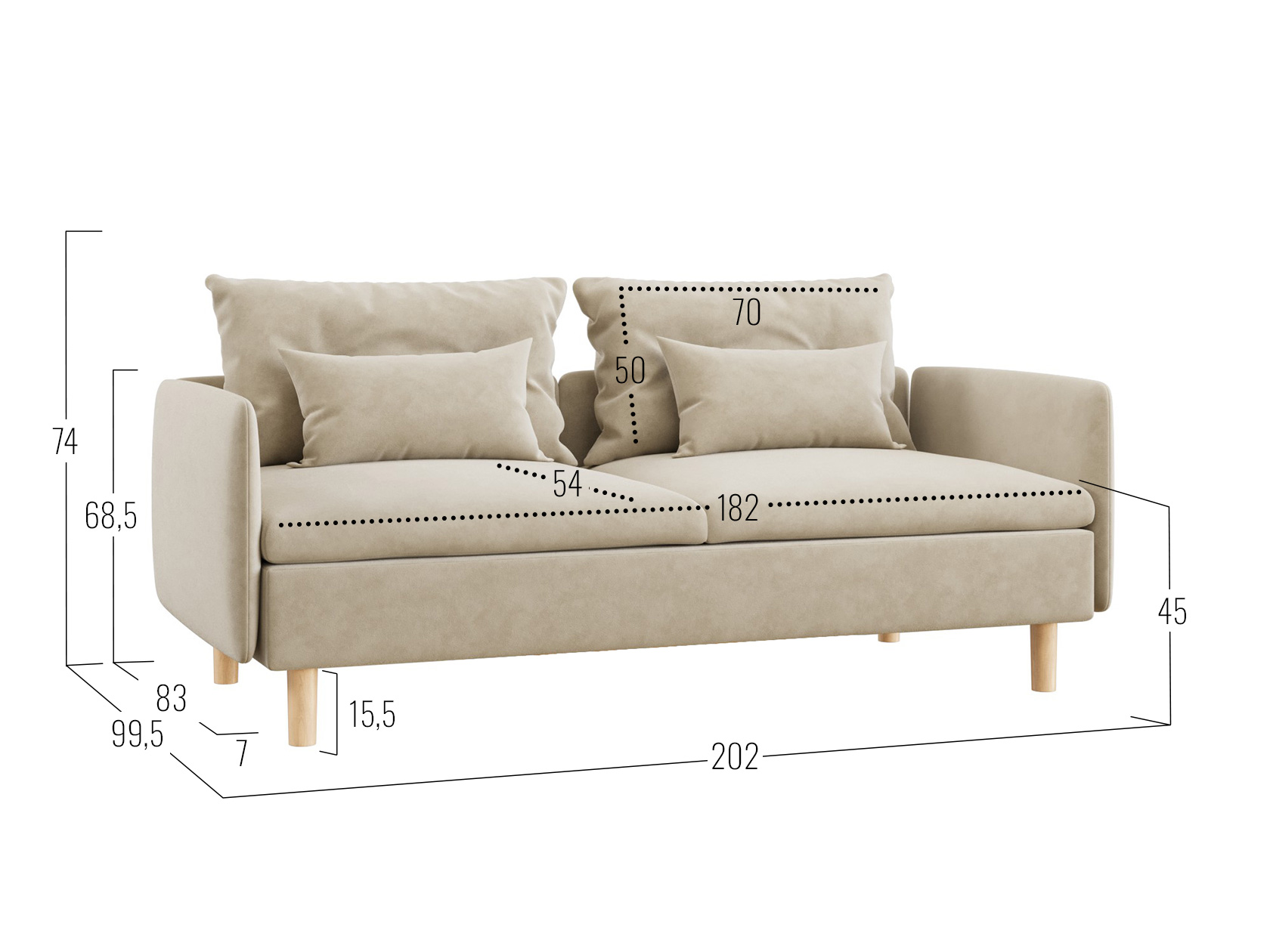 Диван: 74 х 188 х 99,5 см.