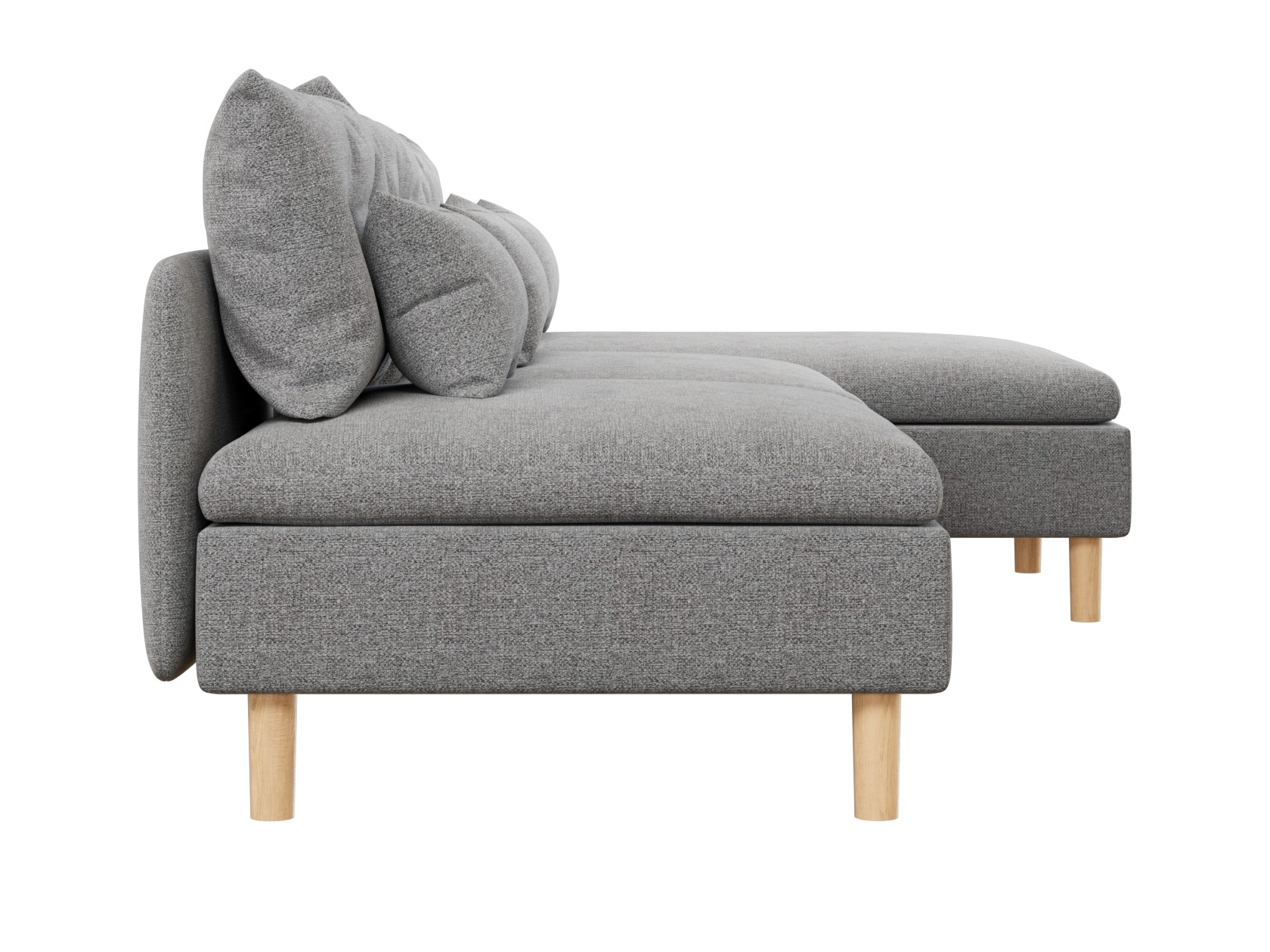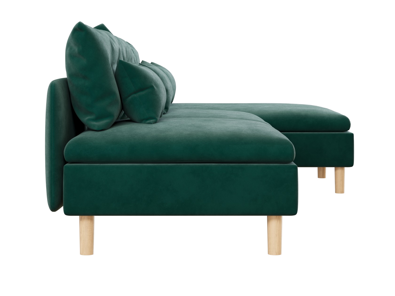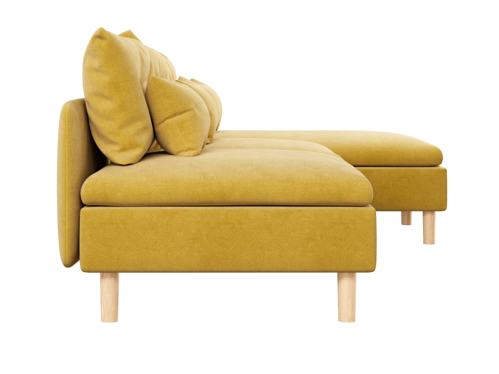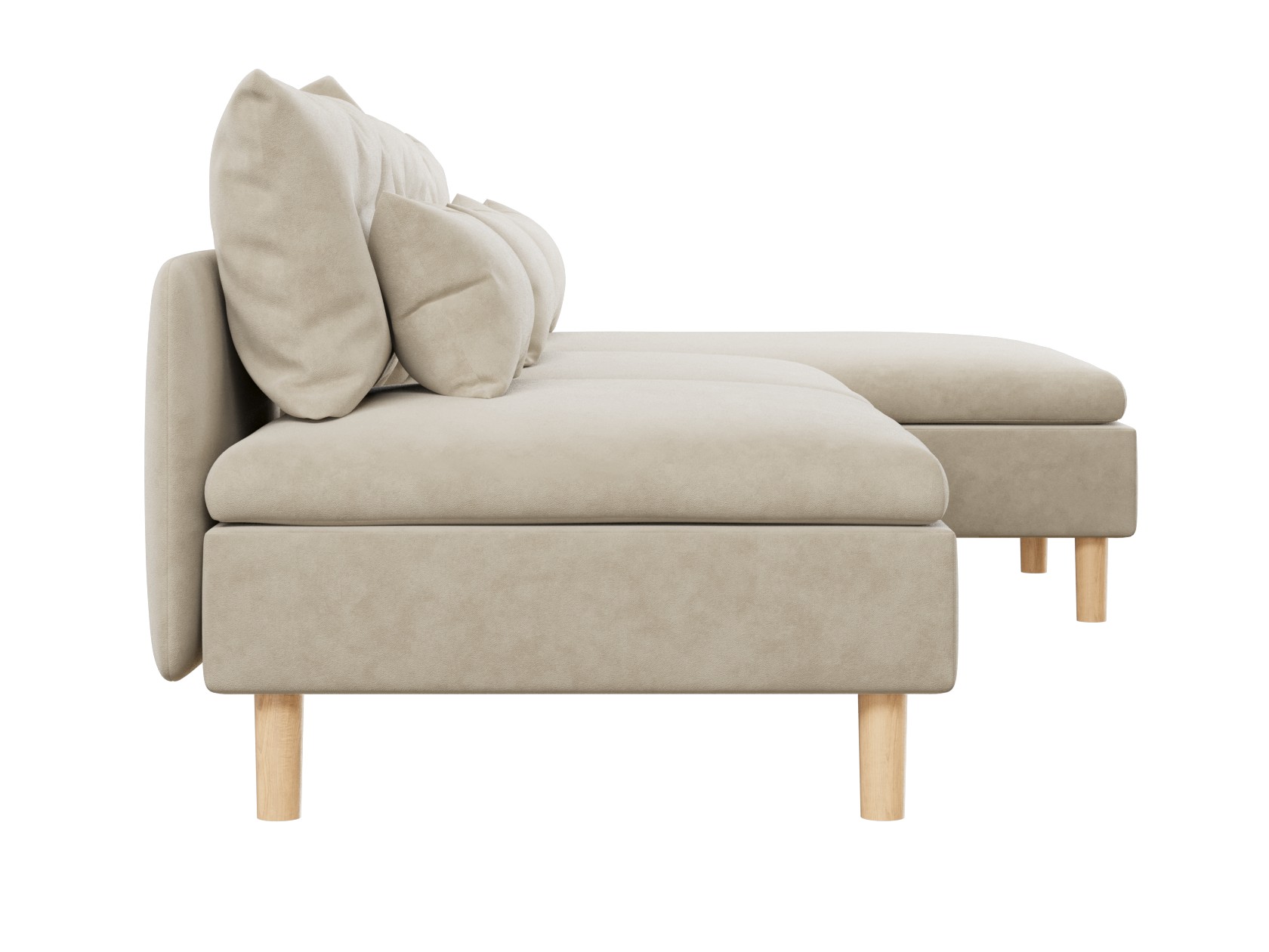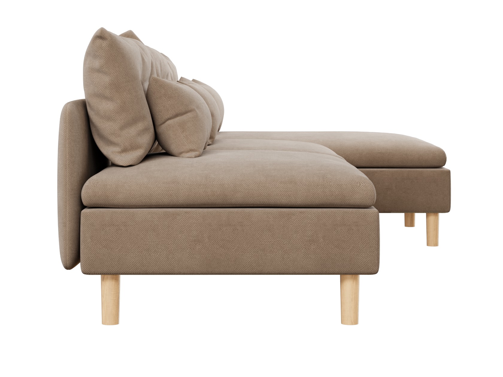 Угловой диван Калисто с оттоманкой — удачное решение для современного интерьера. На нём удобно отдыхать сидя, лежа или полулежа, откинувшись на мягкие подушки. Круглые деревянные ножки смотрятся очень уютно и облегчают уборку, в том числе с помощью робота-пылесоса. Спинка обита лицевой тканью, поэтому модель отлично подходит для зонирования просторной гостиной. Диван можно комбинировать с другими элементами коллекции.