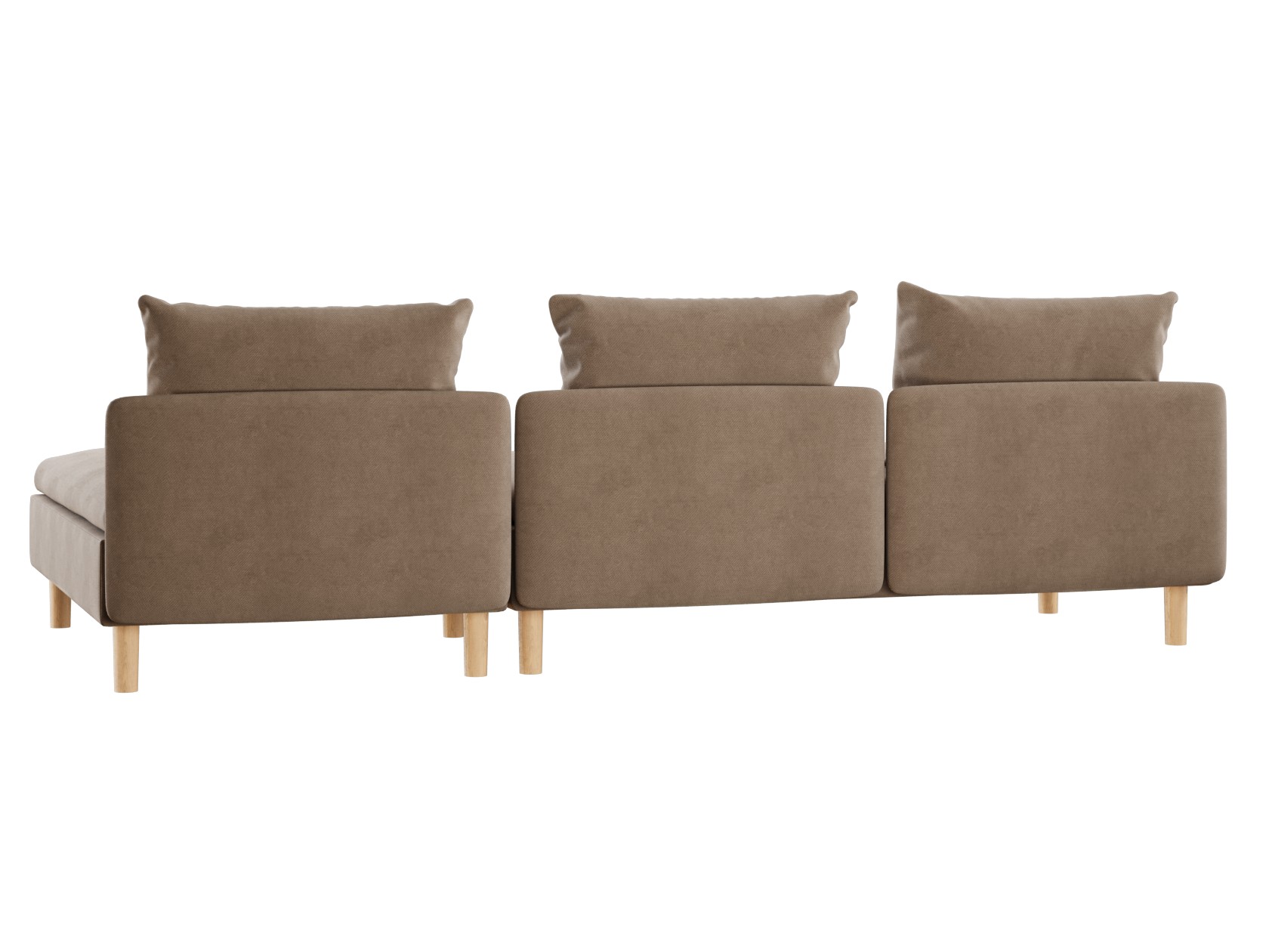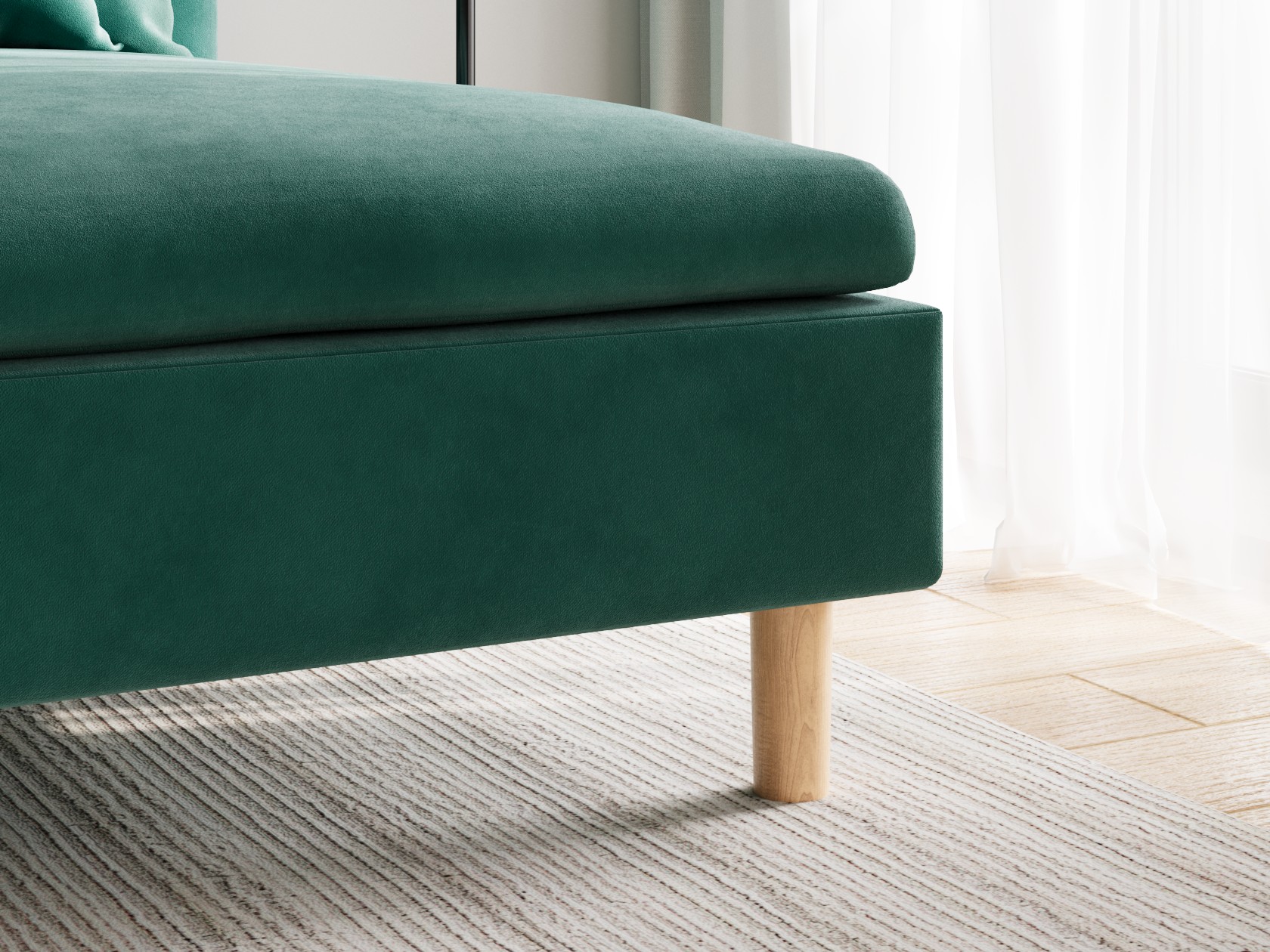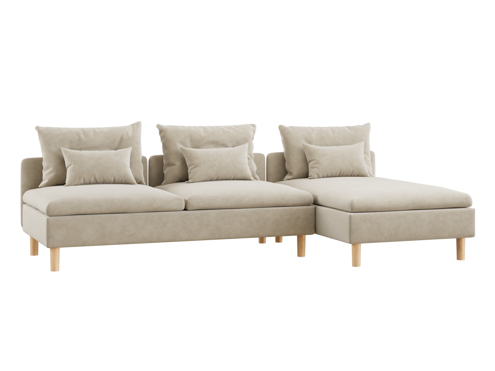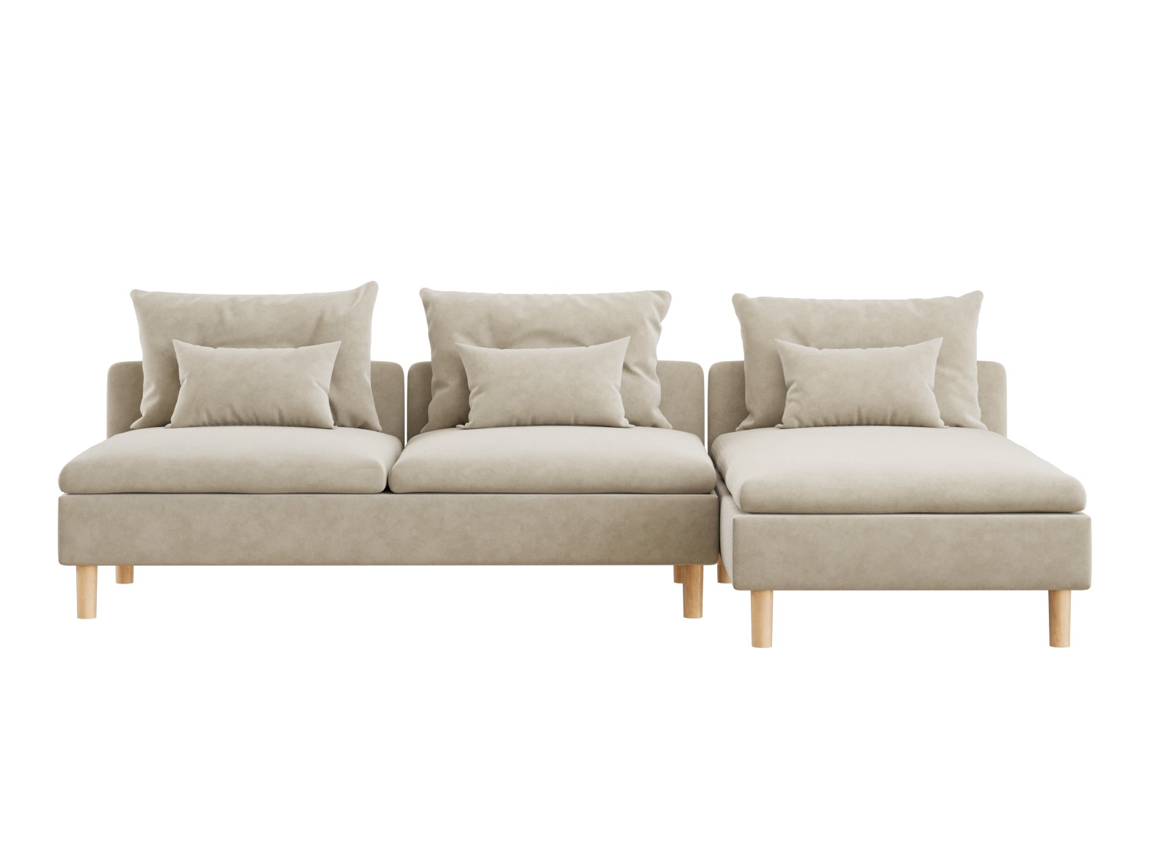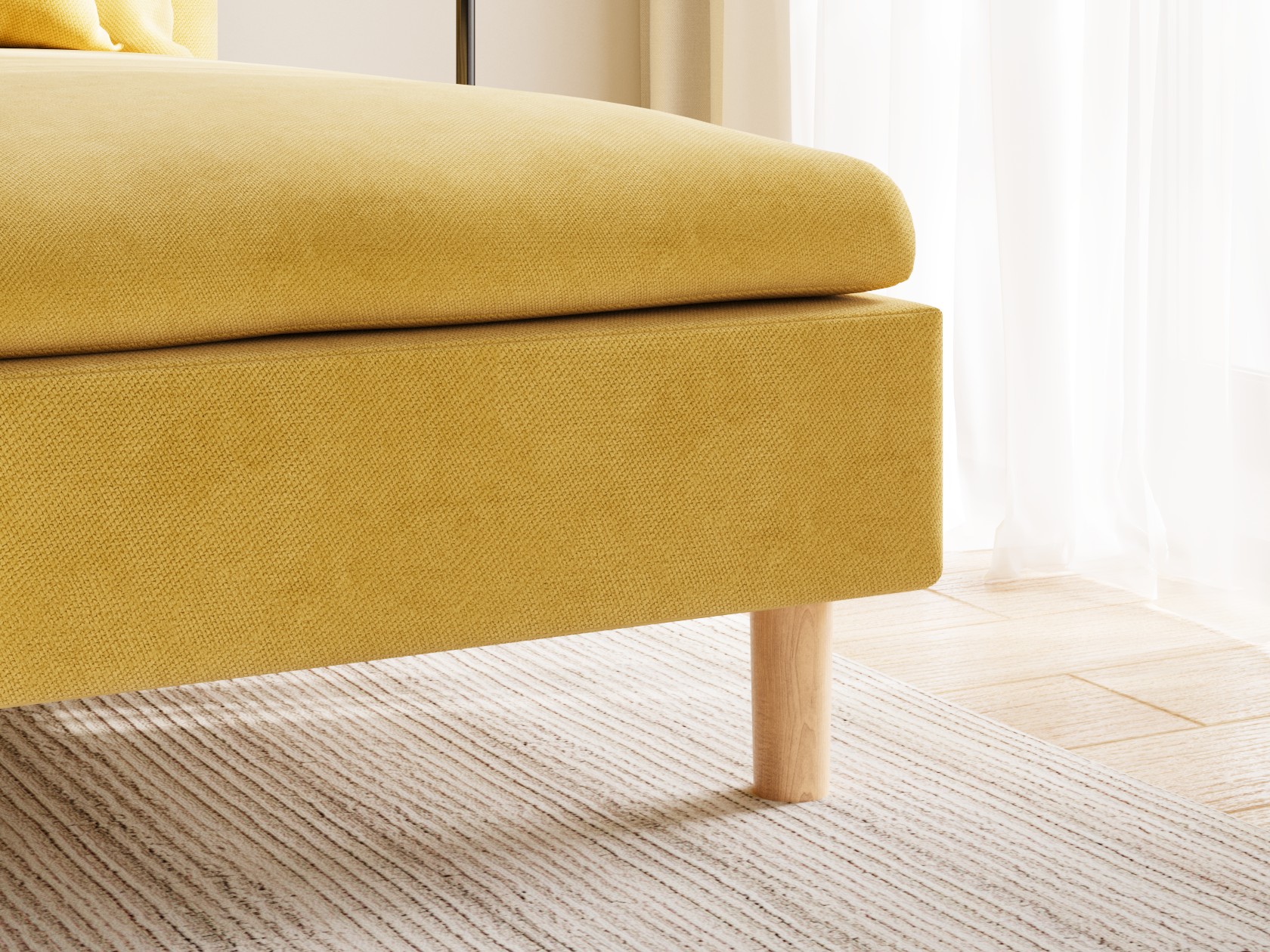 Угловой диван Калисто с оттоманкой — удачное решение для современного интерьера. На нём удобно отдыхать сидя, лежа или полулежа, откинувшись на мягкие подушки. Круглые деревянные ножки смотрятся очень уютно и облегчают уборку, в том числе с помощью робота-пылесоса. Спинка обита лицевой тканью, поэтому модель отлично подходит для зонирования просторной гостиной. Диван можно комбинировать с другими элементами коллекции.
